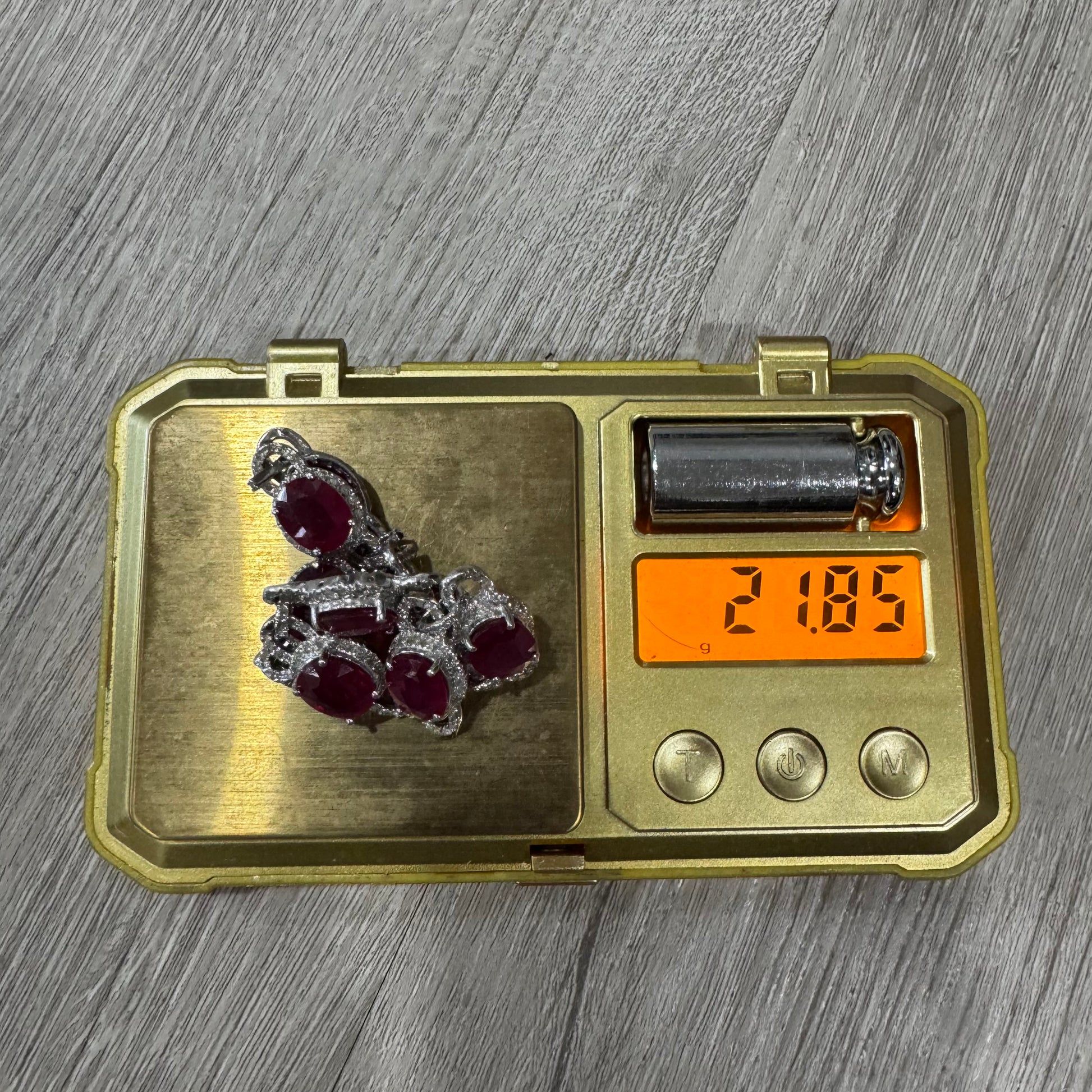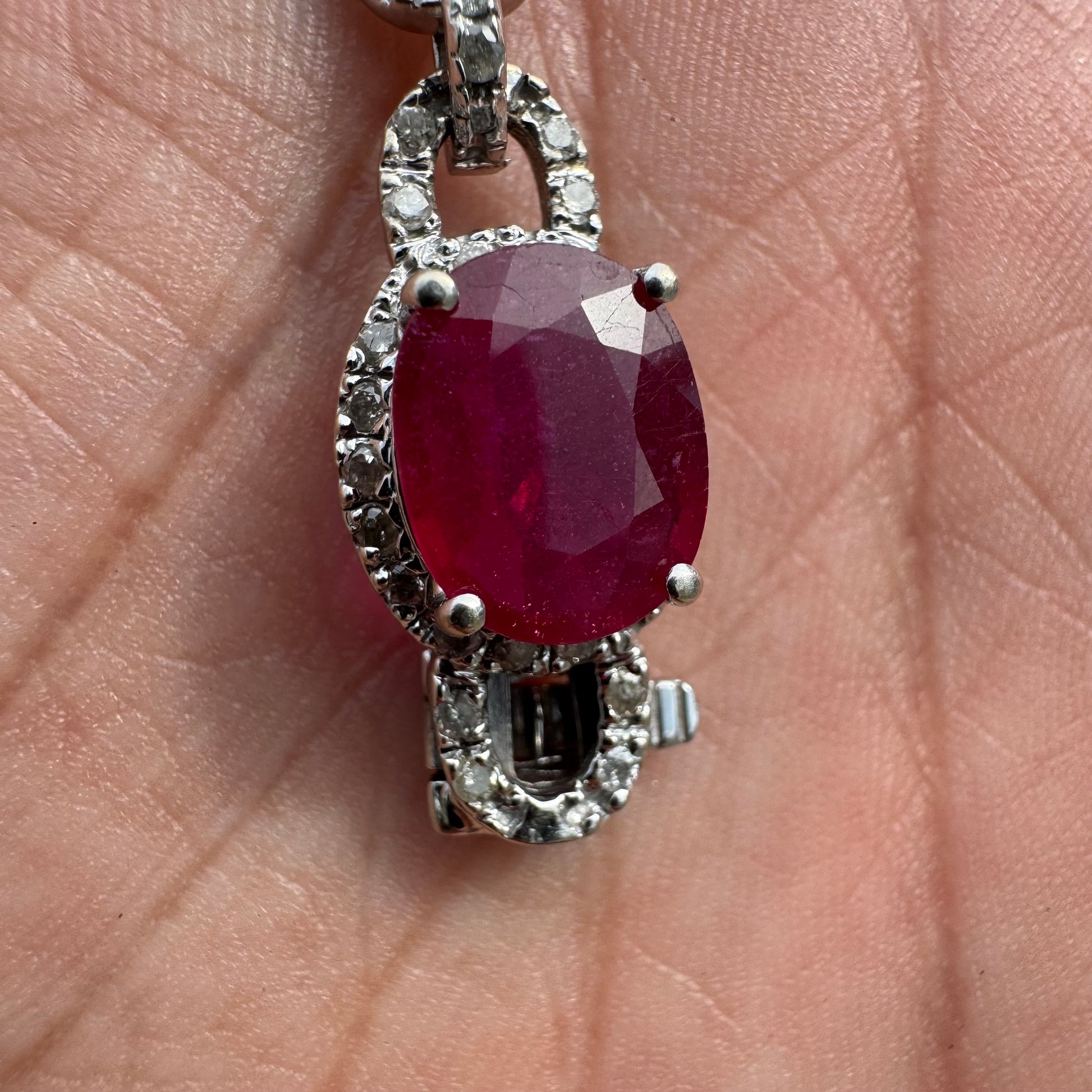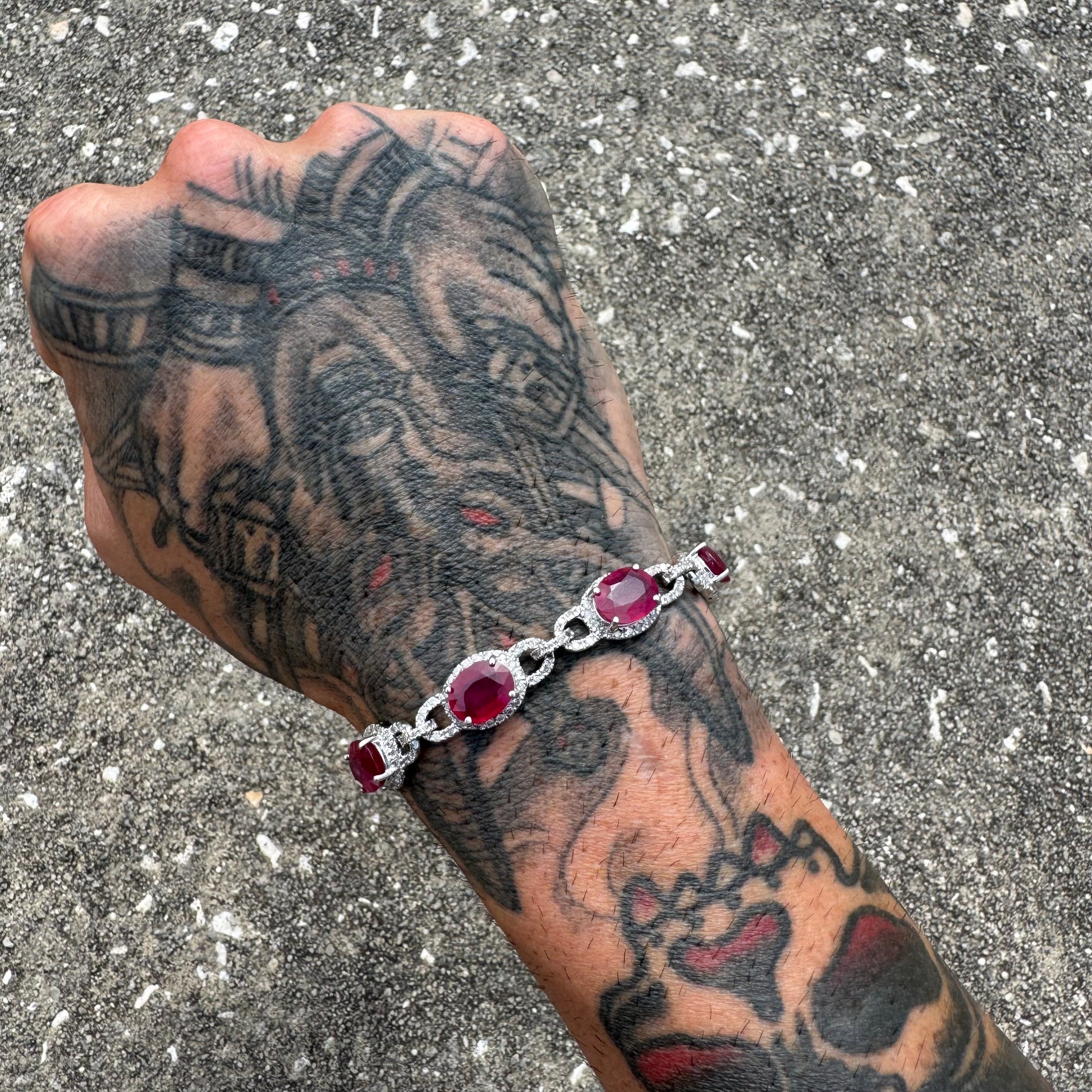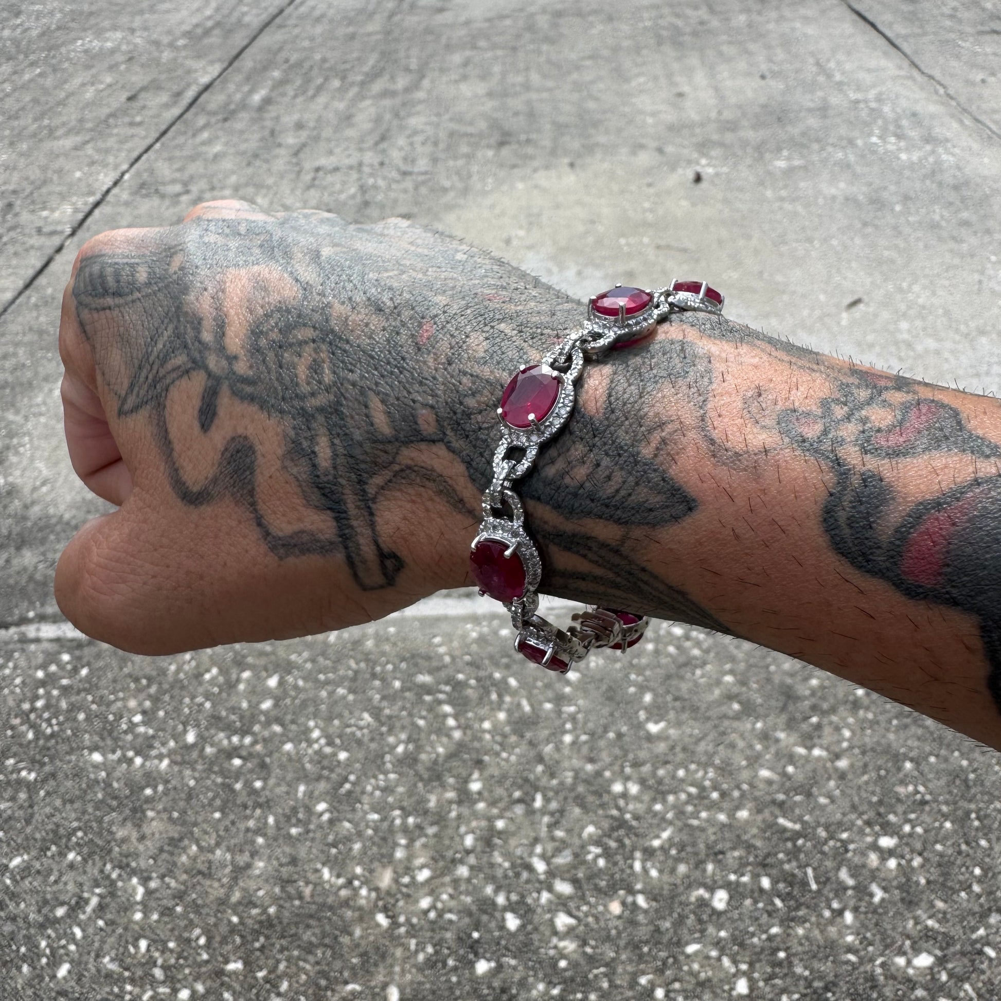 14k White Gold 20ctw Natural Ruby 2.5ctw Natural Diamond Bracelet (7.5”)