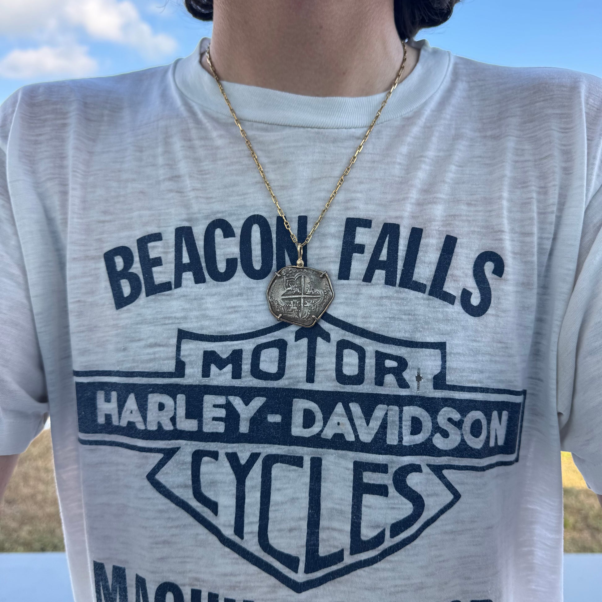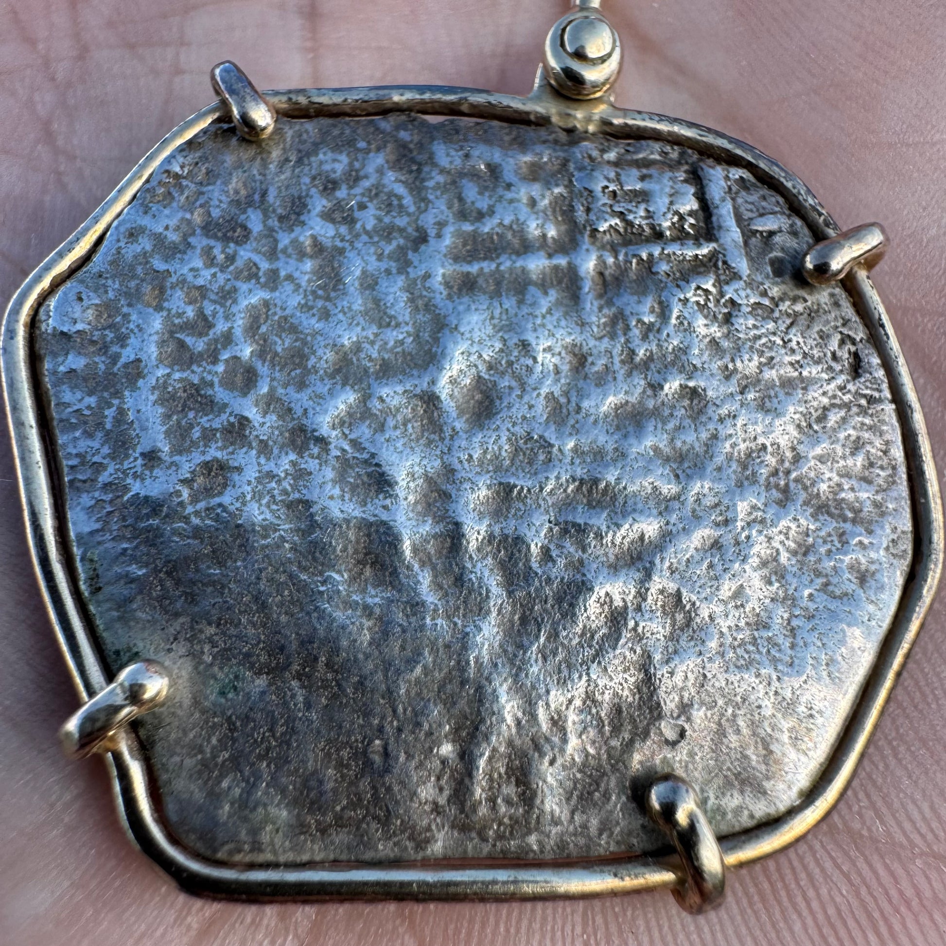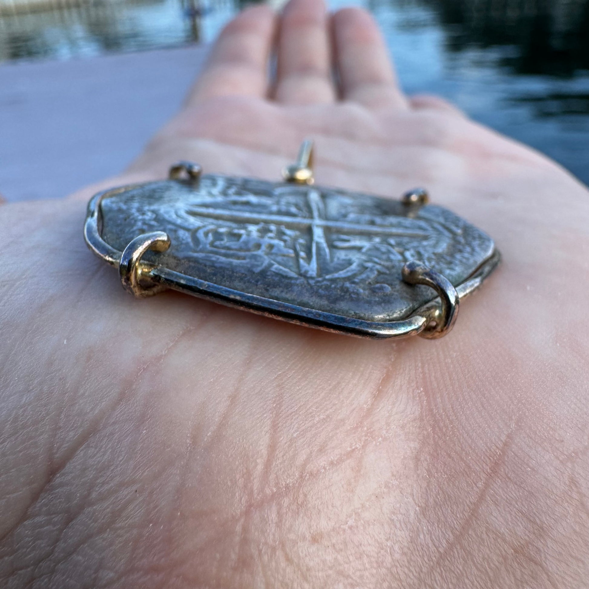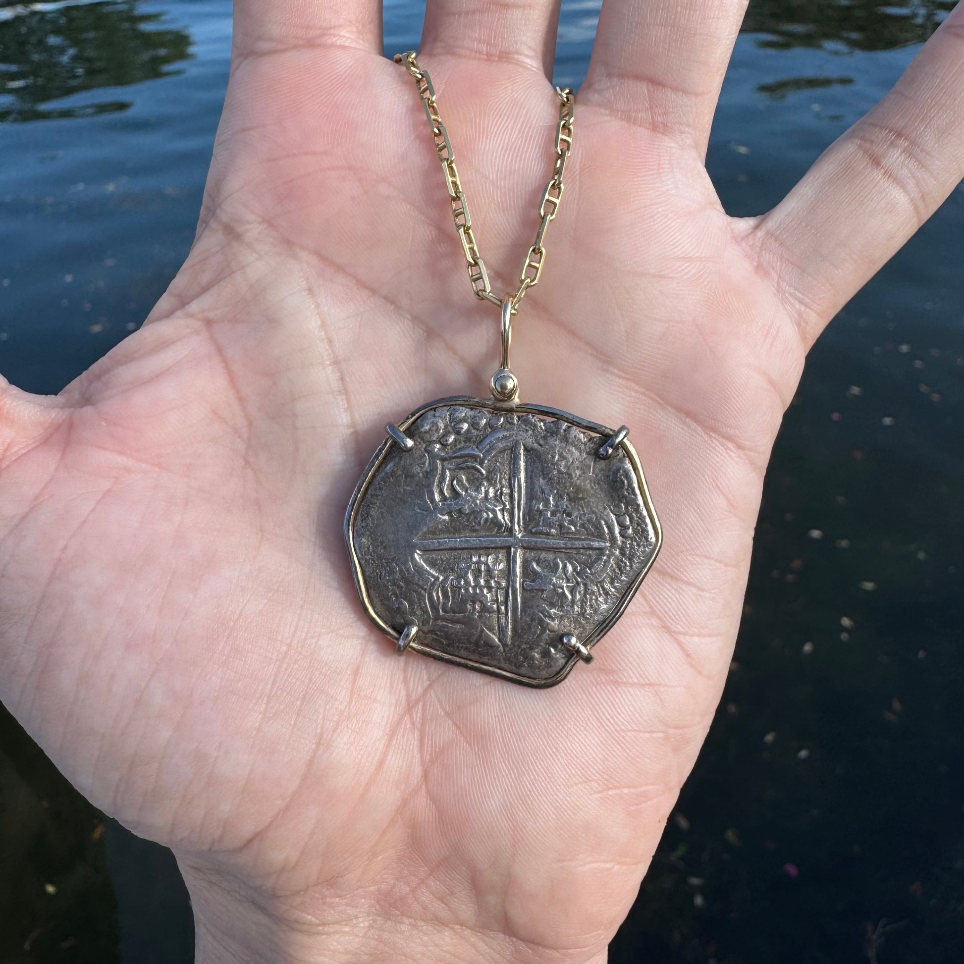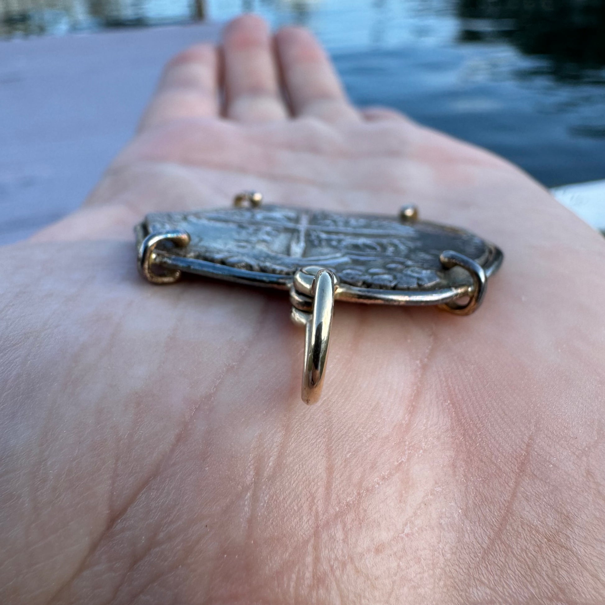 1600’s Philip III Silver 8 Reales Shipwreck Coin 14k Yellow Gold Pendant