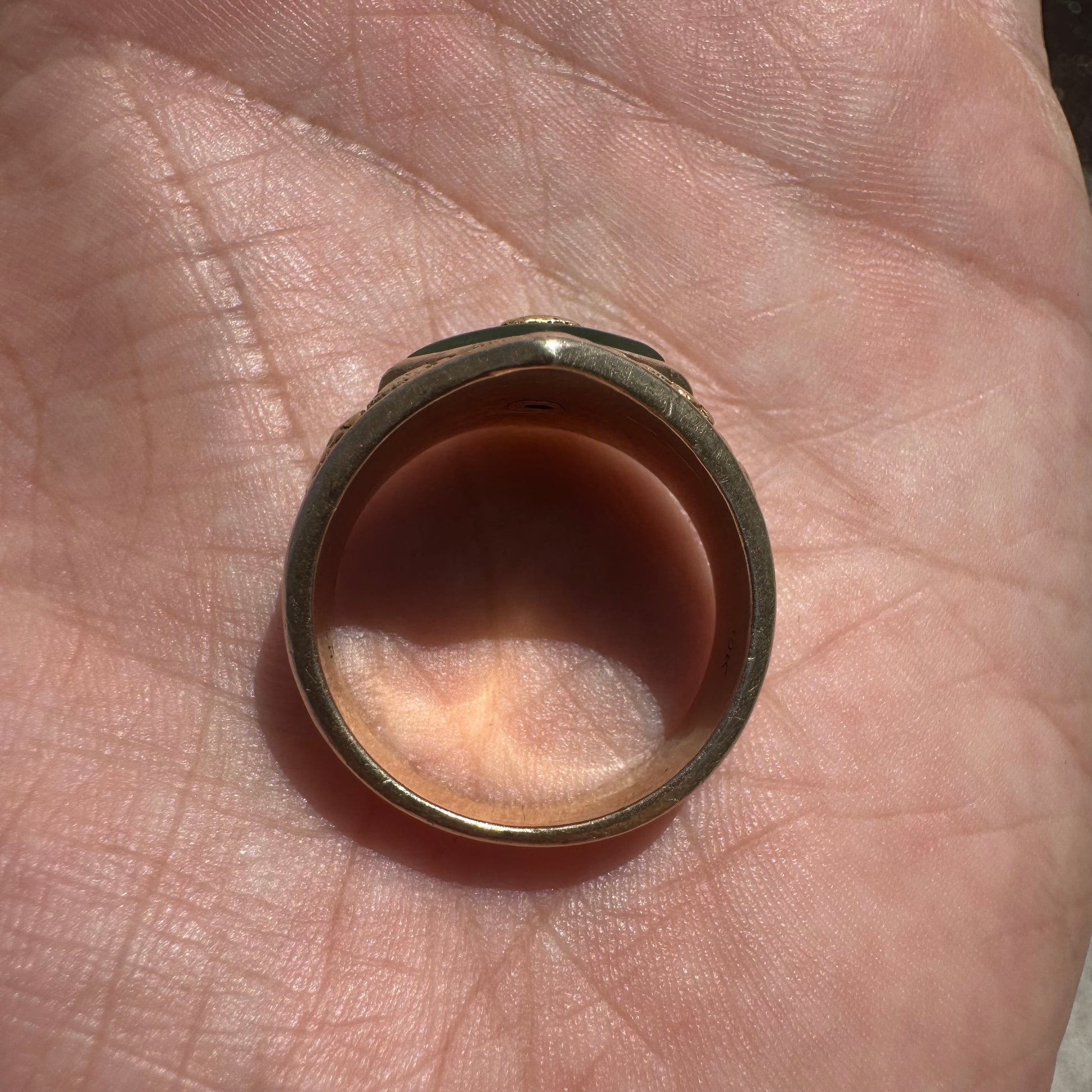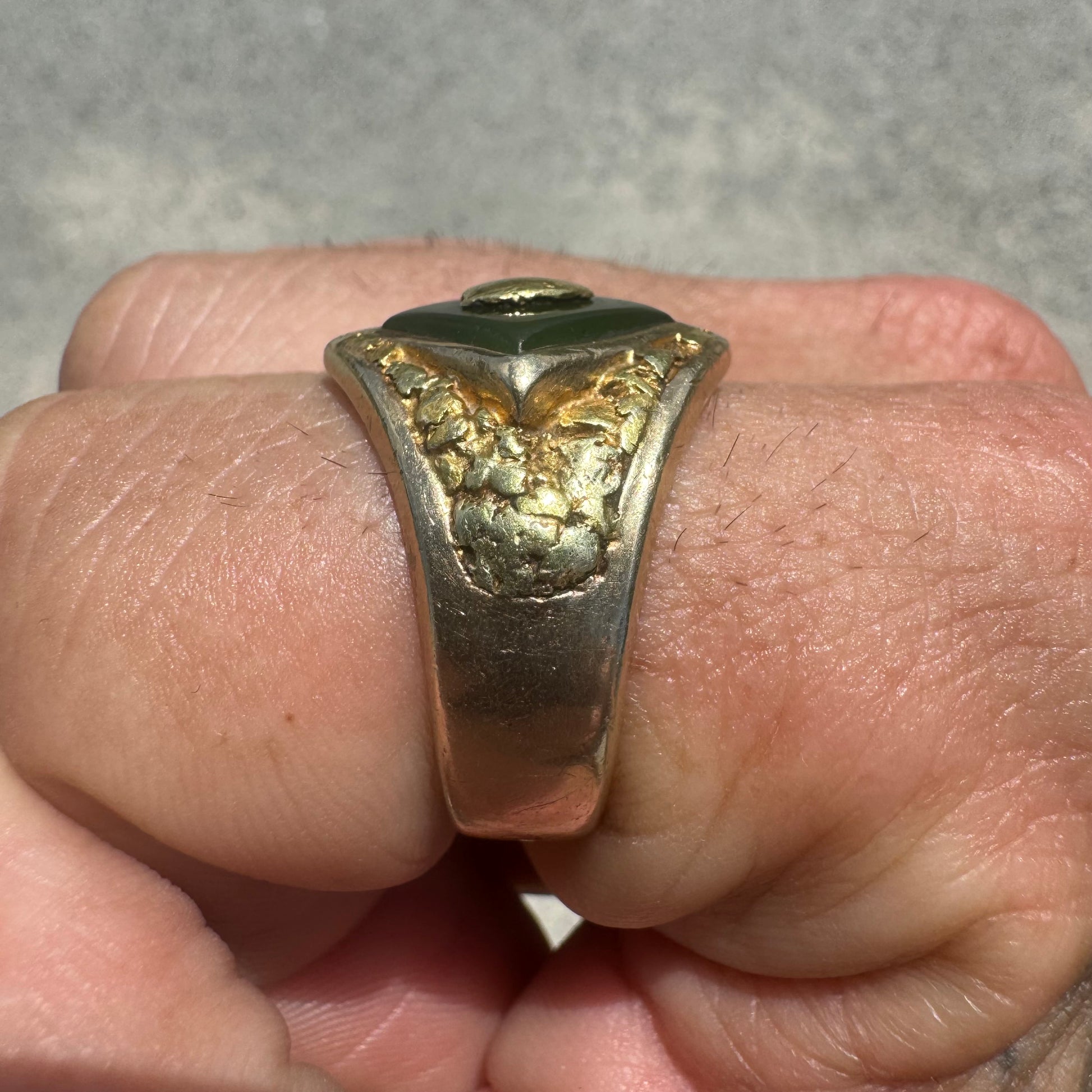 1930’s Art Deco Solid 10k Yellow Gold Nephrite Jade Natural Raw Gold Nugget Inlaid Signet Ring (11)