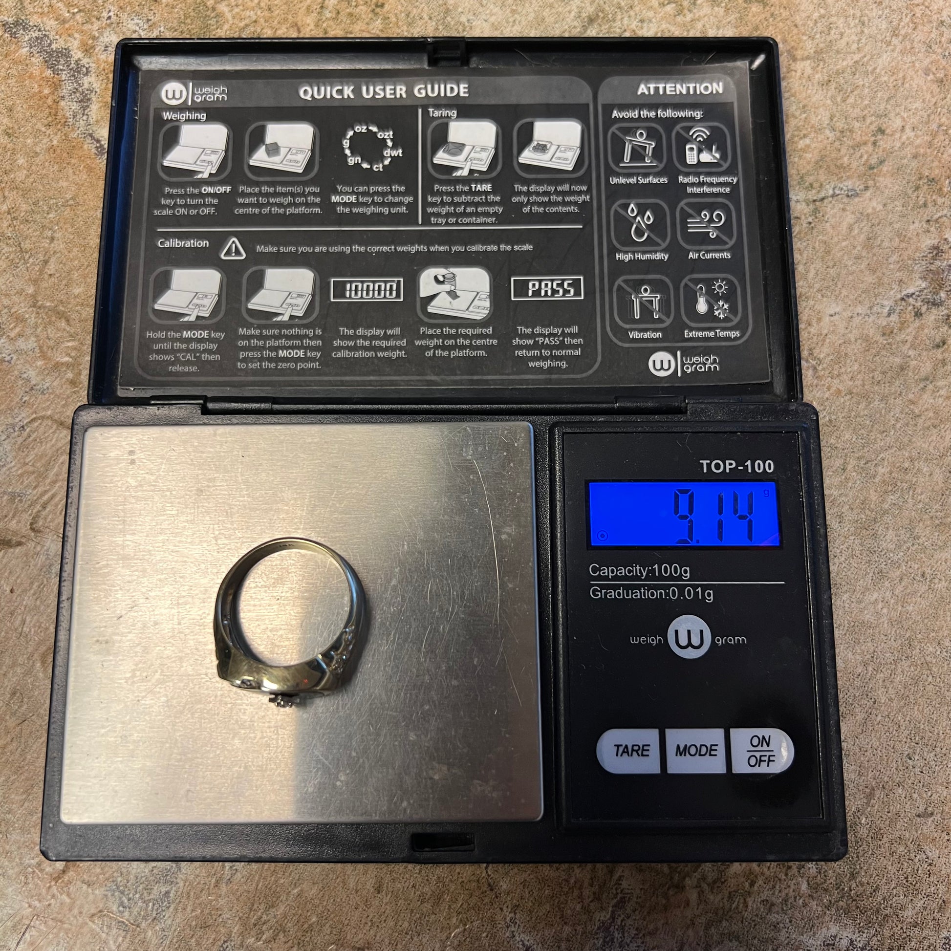 The word flawless is a must use on this piece. Just about 75 years old and still looks like it did the day it was made sometime around the 1950’s. Crafted out of a buttery 14k yellow gold is a solid backed and comfort fit style Nugget ring embedded with natural diamonds and a beautiful black onyx stone. The pictures are great but when you get it in person you will really see a piece of beauty. Size:10 and a hunky 9.2g.