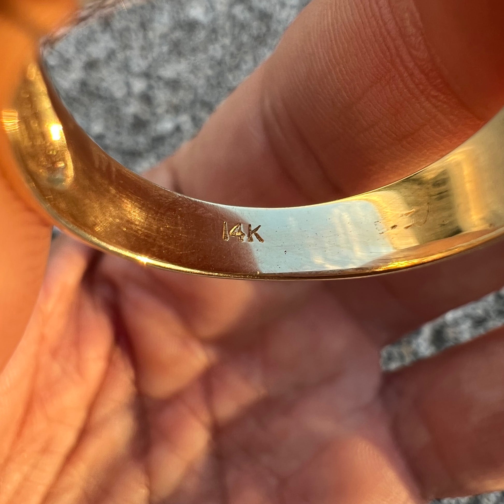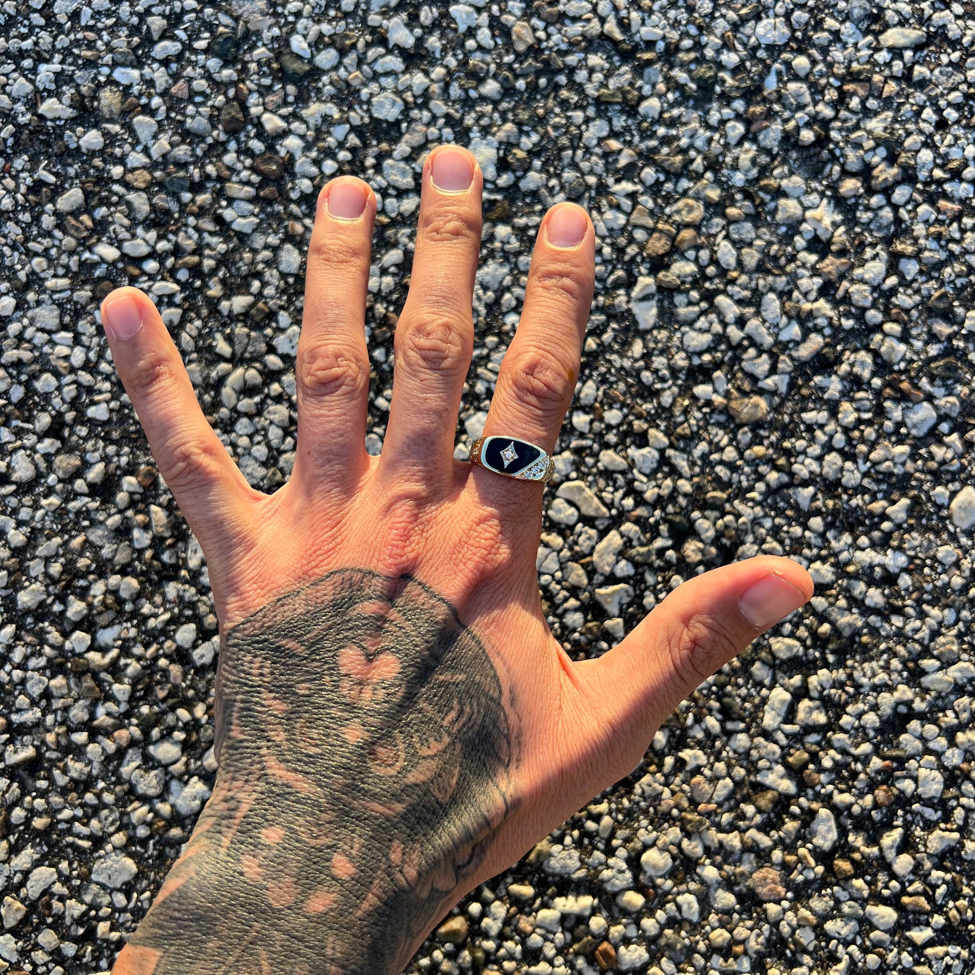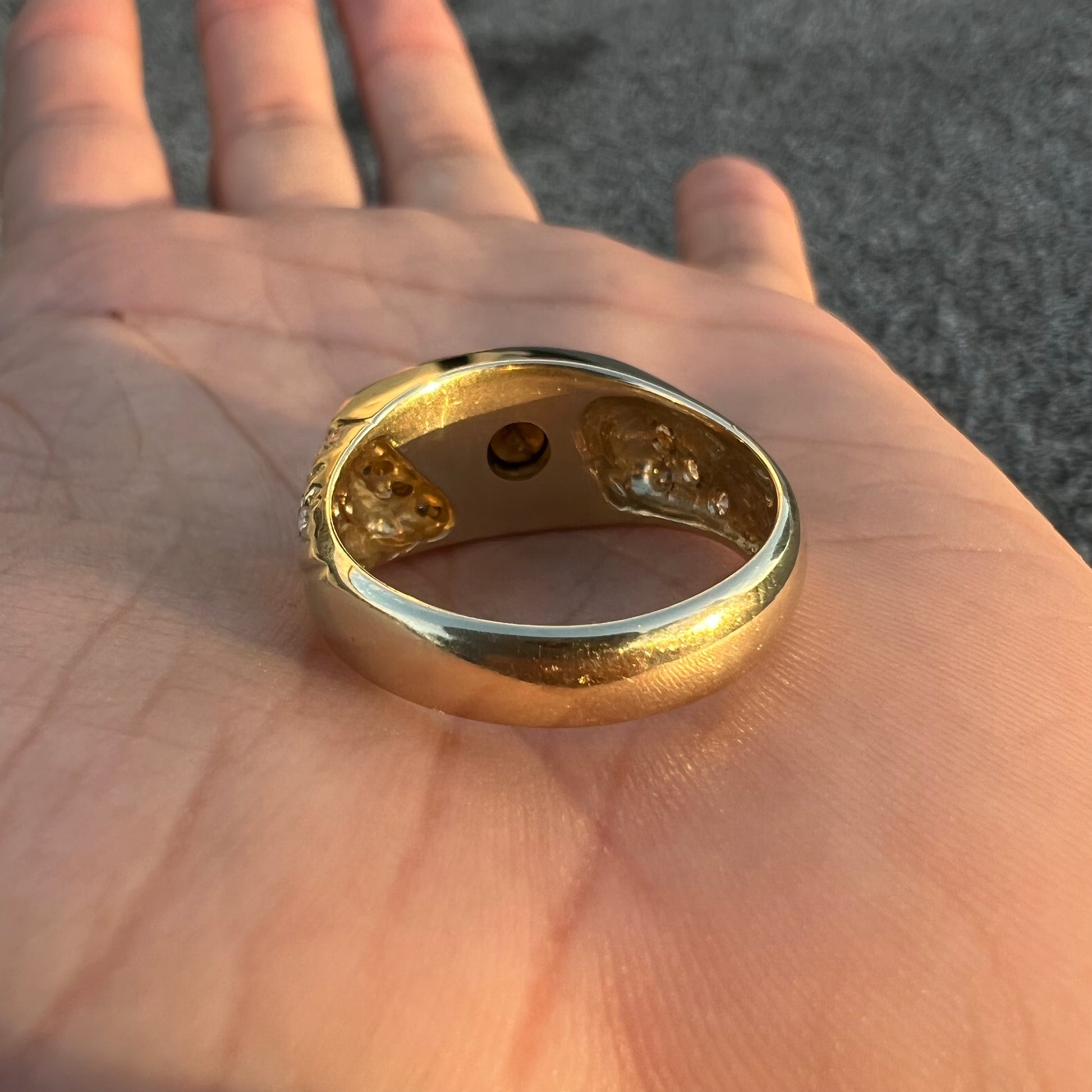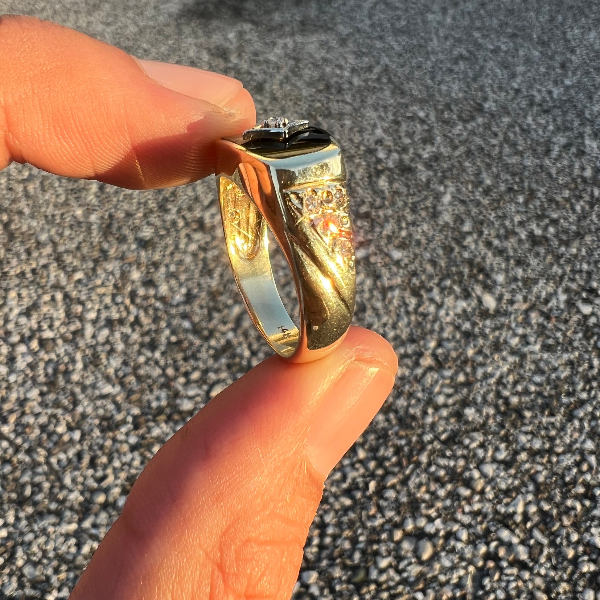 1950’s 14k Yellow Gold Solid Backed Comfort Fit Black Onyx Natural Diamond Nugget Ring (10)
