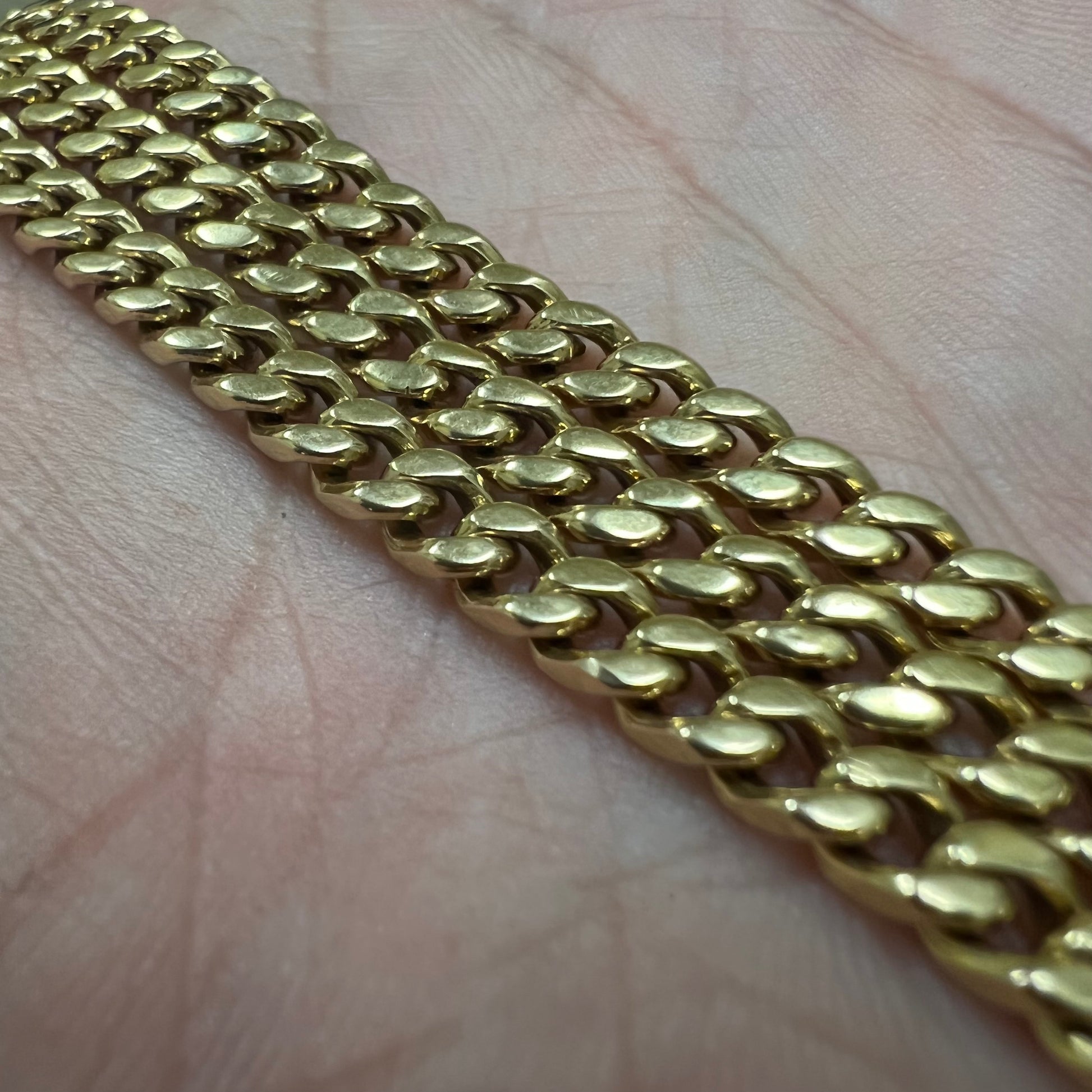 Built with pride and craftsmanship of a bench jeweler all by hand back sometime around the 1950’s is this immaculate and flawless solid 14k Cuban link necklace. Measuring 20.5” in length and at a chunky 4mm thick with 2MM thick sidewalls weighing in at just under 34g this chain has the perfect size ratios. With Avery right and strong circular lobster clasp this chain will take a lot of force to get pulled off your neck. You’re buying a chain that will last you and whoever you pass it down to a lifetime and then some.