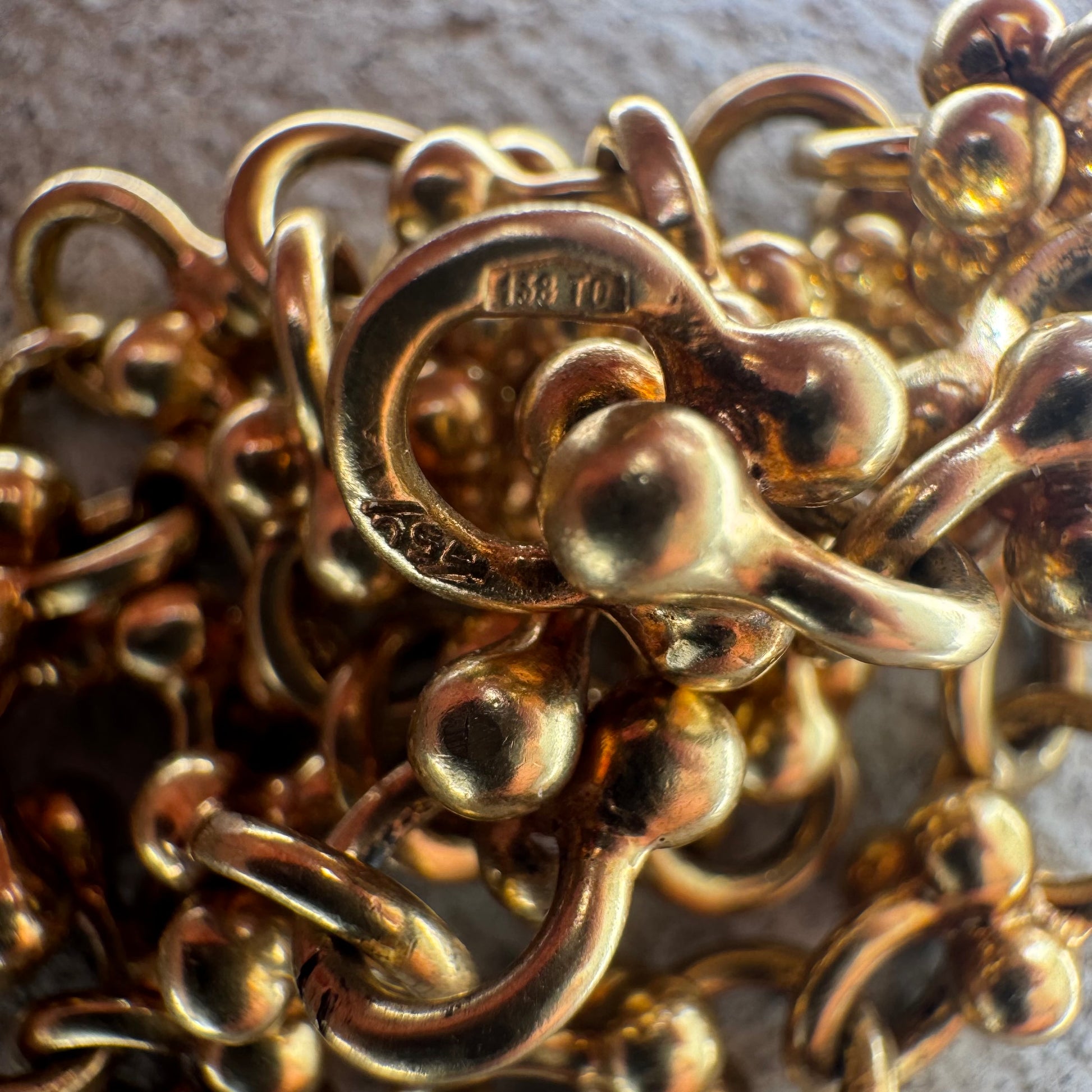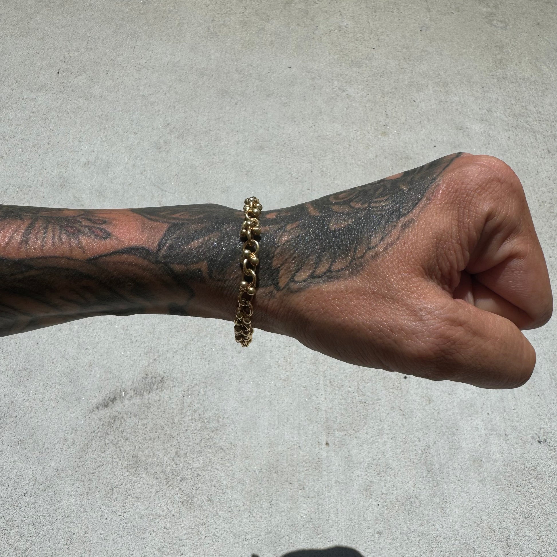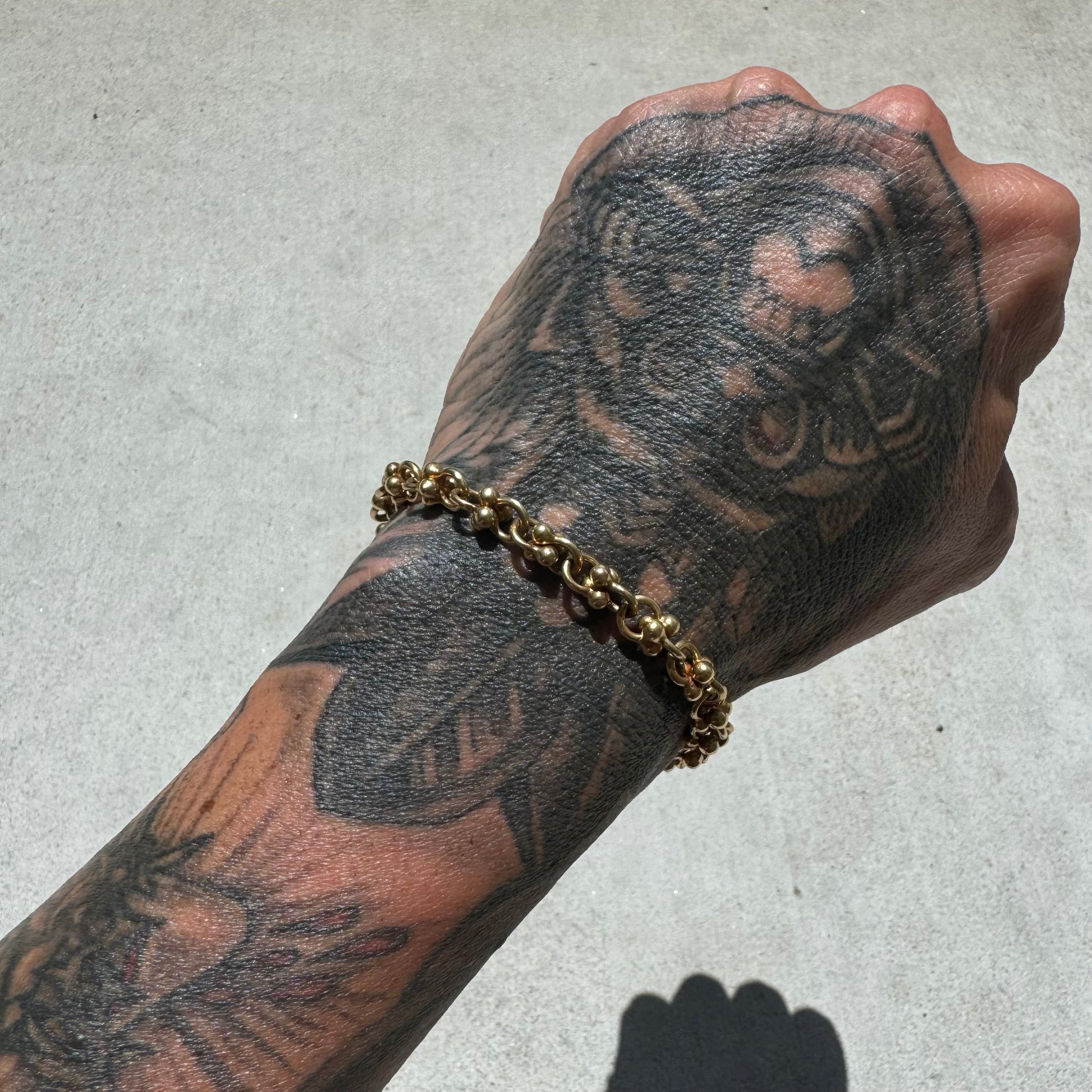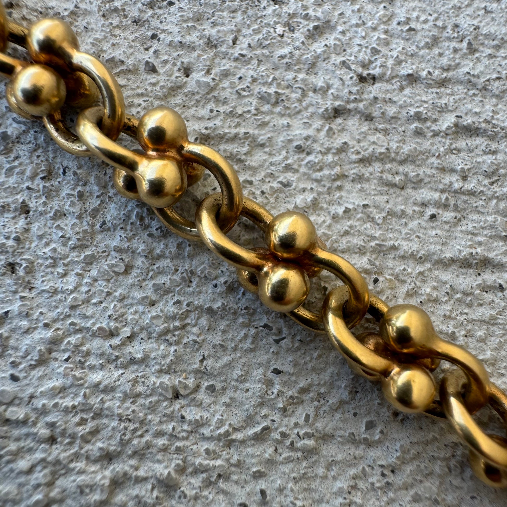 One of the most sought after link styles due to its rarity and exclusivity made famous from designer brands such as Tiffany and Hermes is this solid 18k yellow gold hardwear horseshoe link bracelet. This was a staple in Tiffany and Co. arsenal years ago and has just been reintroduced to the public which much fanfare this past year. As seen in picture #10 this bracelet is Italian hallmarked 138 TO which dates this bracelet between 1951-1952 by Italian goldsmith MARCHISIO NAPOLEONE out of Torino,Italy. Crafted out of an all solid 18k yellow gold and 7mm thick it’s a bold statement piece that give off a rugged yet elegant vibe to any style you’re trying to pair it with. At 8” in wearable length it’s very easily resizable if you need to make it any smaller it’s actually something you could probably do at home as it’s just a snip of a link or two and reattaching the spring ring style clasp so if it’s too long for you don’t let that stop you on this one because pieces like this don’t pop up often if not ever. At a heavyweight solid 21.4g this bracelet can take some abuse without worrying about its durability as well. Probably one of the best bracelets I have available on the site right now.