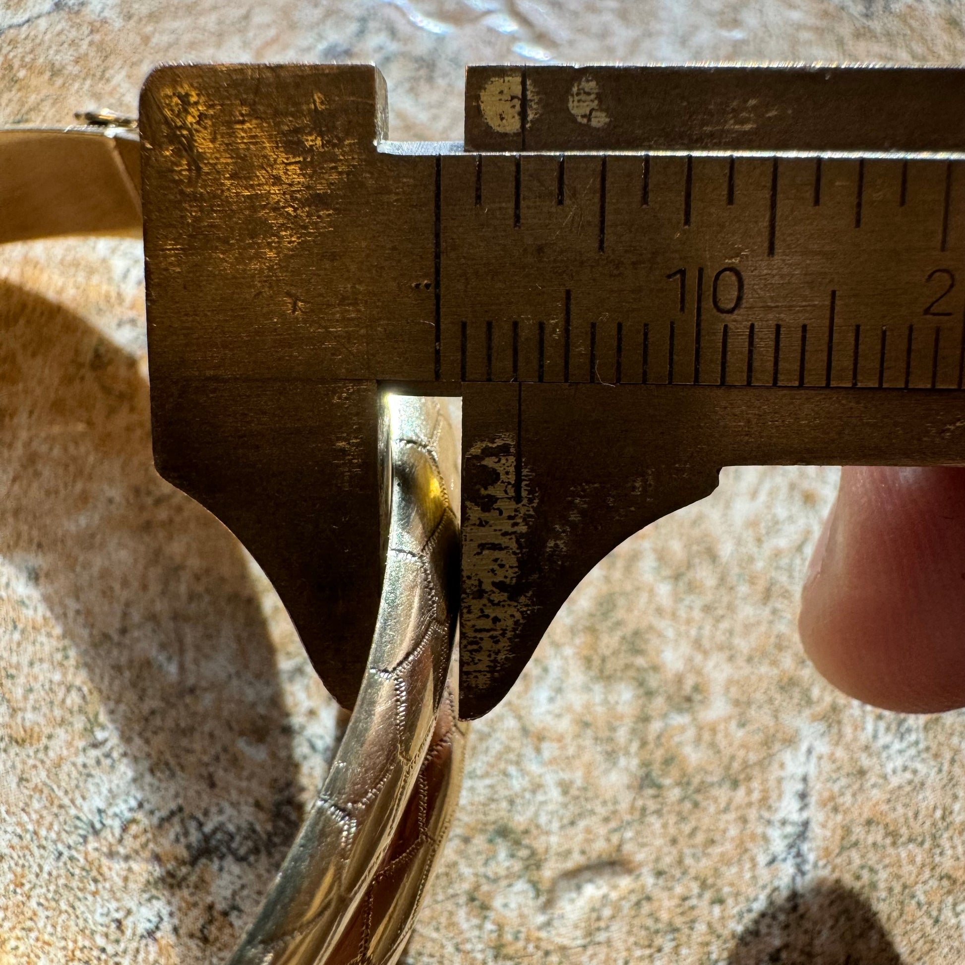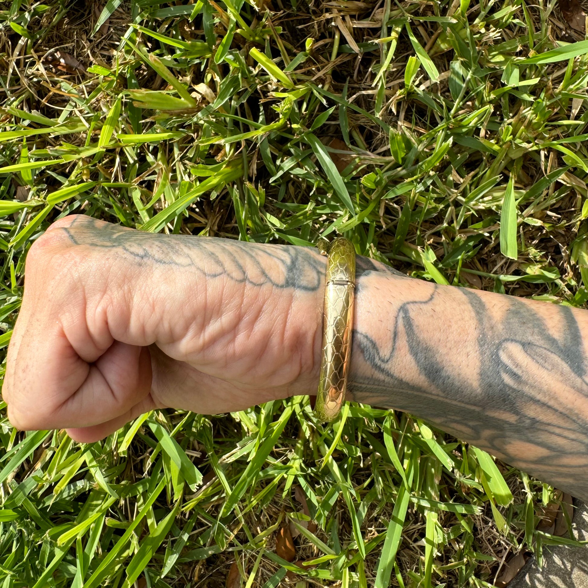 1960’s 14k Yellow Gold Hand Chased Wraparound Snake Hinged Bangle Bracelet (5.75”-6.75”)