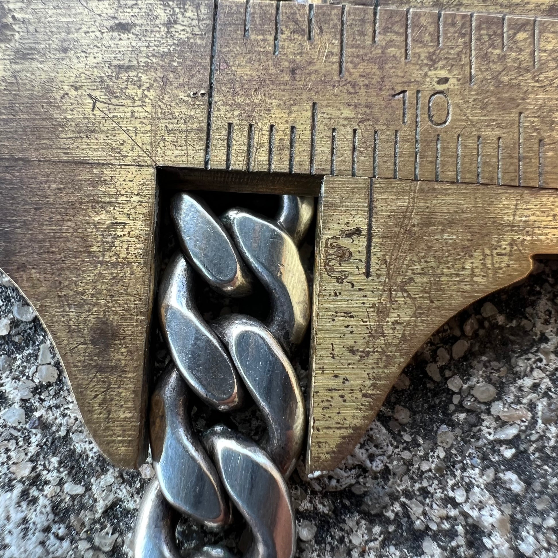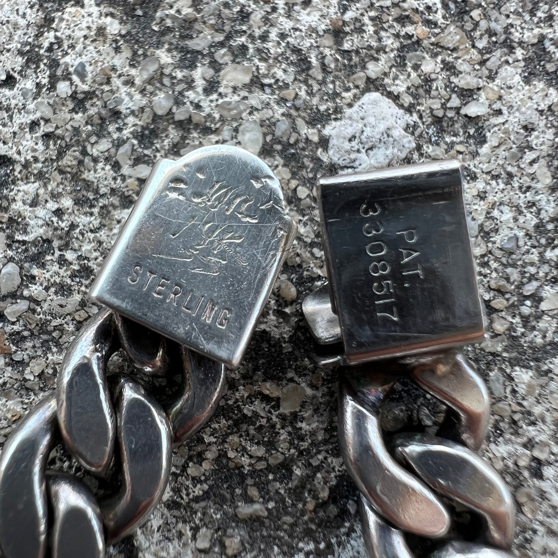 One of the finest crafted Cabochon stone Cuban links I’ve ever had. The stones are encrusted in 14k yellow gold and meticulously set by the jeweler who made this piece and signed it on the clasp. The patent date brings this piece to right around the late 1960’s. It measures 18” in length by 8mm wide