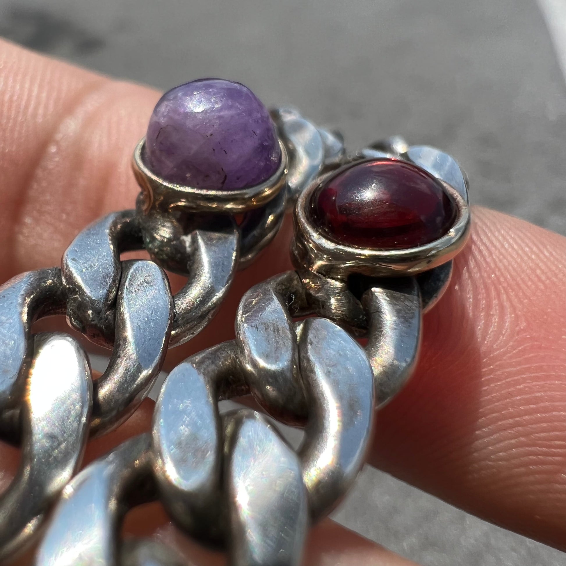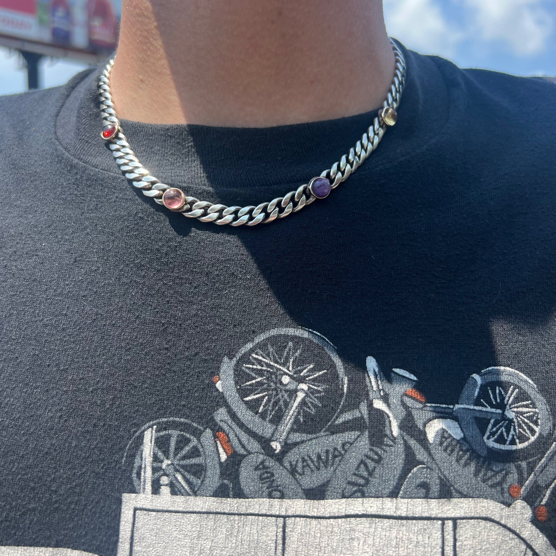 1960’s Handmade Sterling Silver/14k Yellow Gold Cabochon Stone Cuban Link Necklace