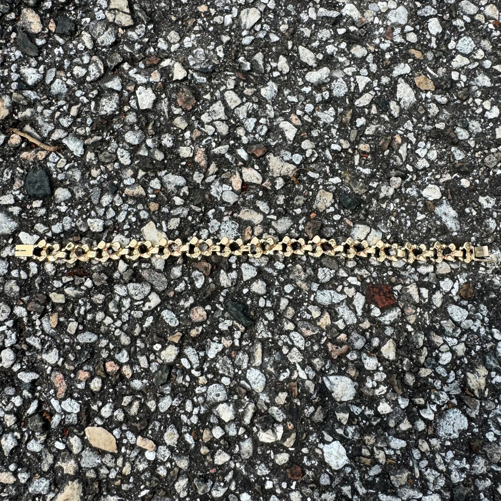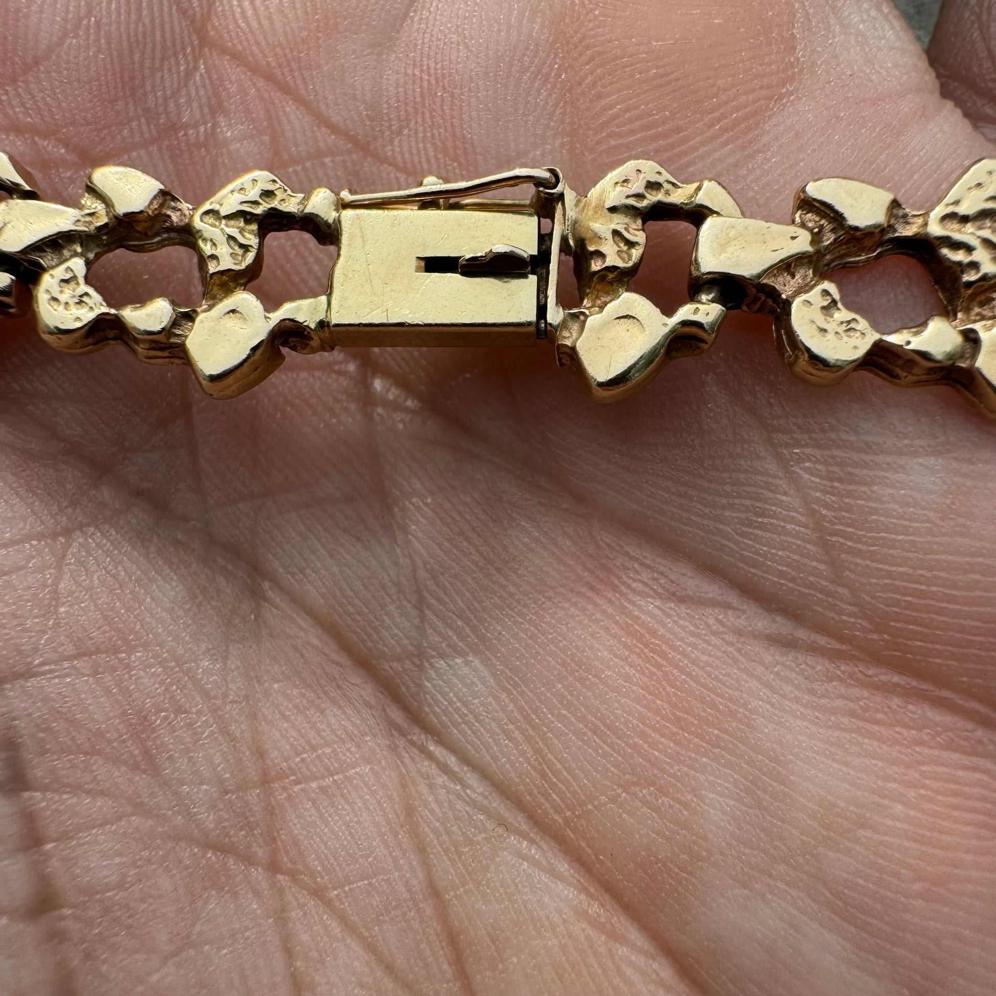 1960’s Solid 14k Yellow Gold Freeform Nugget Link Bracelet (7.75”)