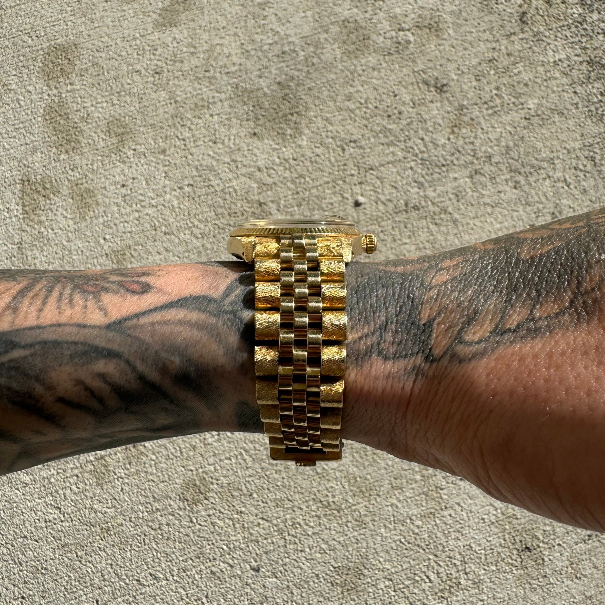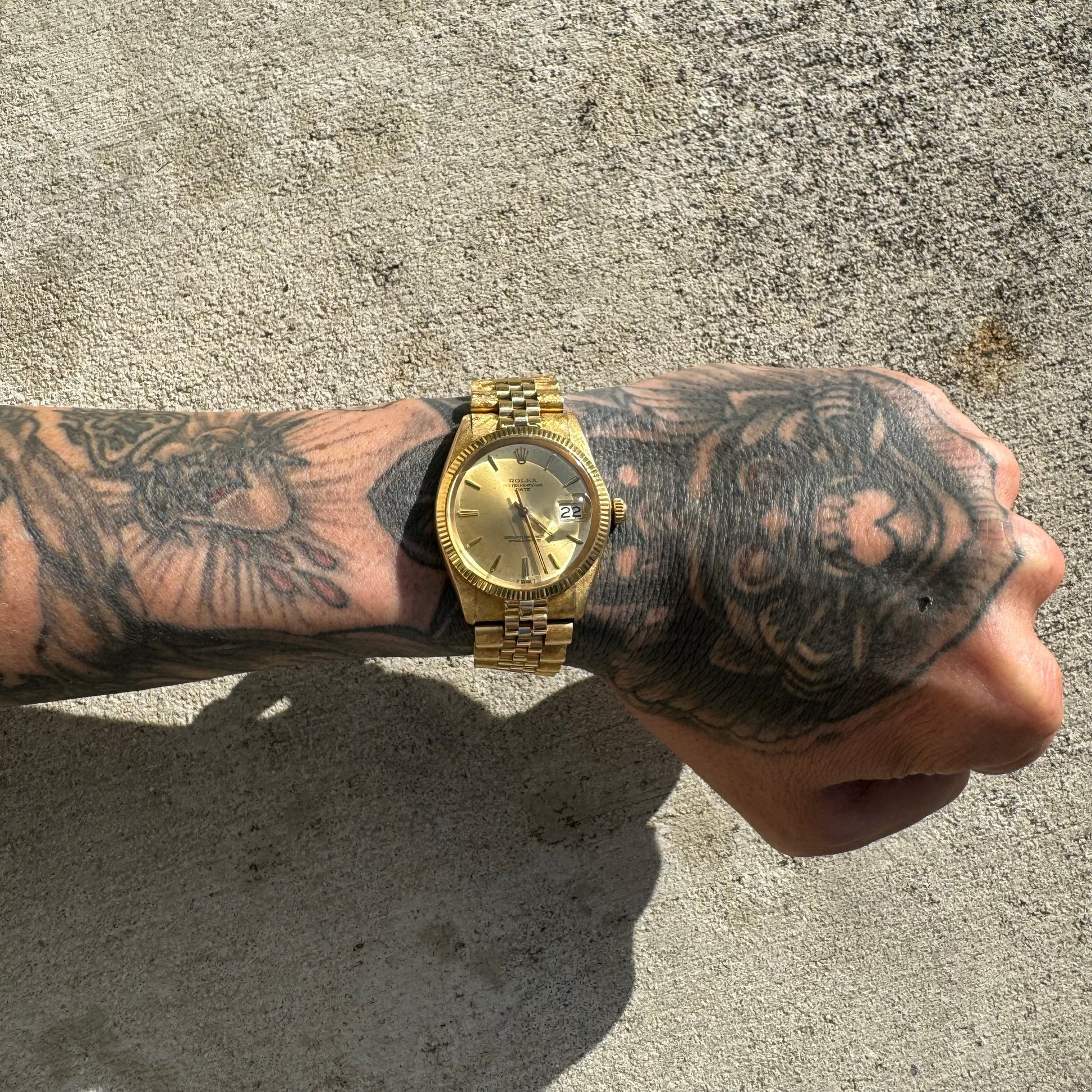 1966 Rolex Oyster Perpetual Date Ref. 1503 Florentine Finish 14k Gold (7.5”/34mm)