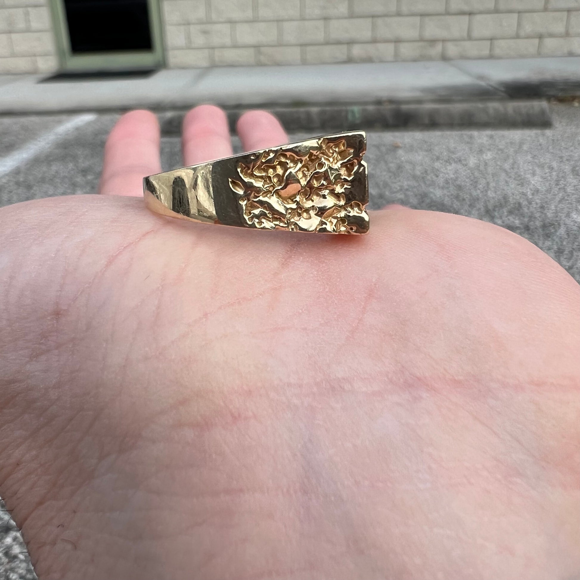 1967 Solid 14k Yellow Gold Old School Black Onyx Inlaid Nugget Style Gents Signet Ring (11)