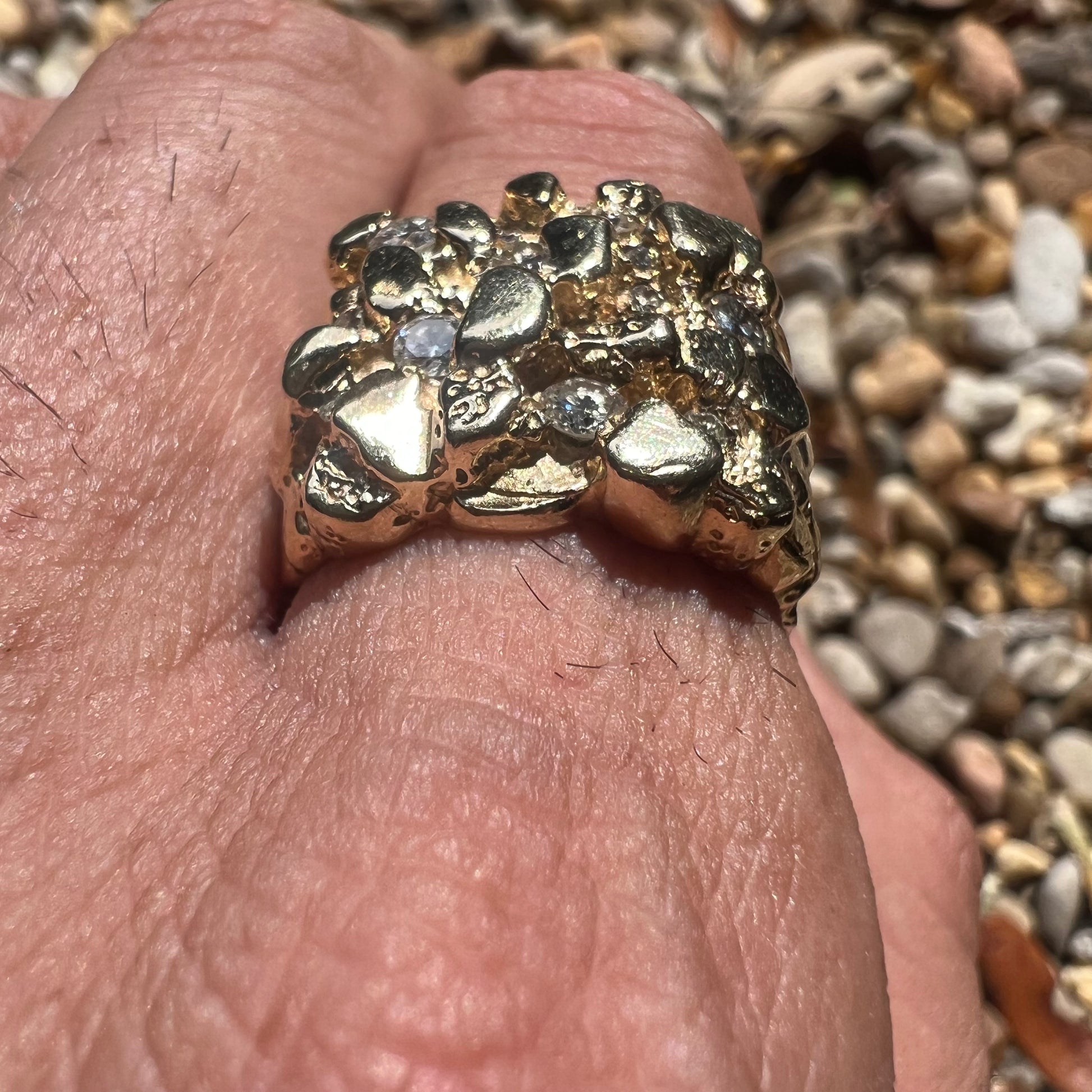 1970’s Custom .75CTW Natural Diamond Flooded 14k Yellow Gold Nugget Ring (10)