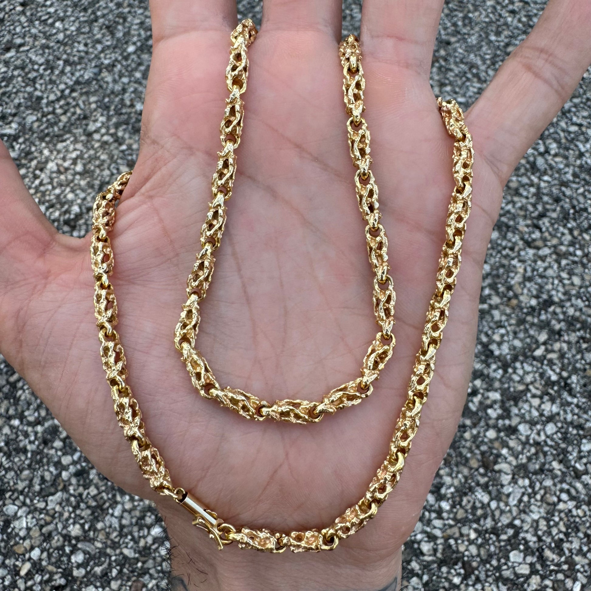 1970’s Solid 14k Yellow Gold Heavyweight Nugget Link Necklace (20.25”)