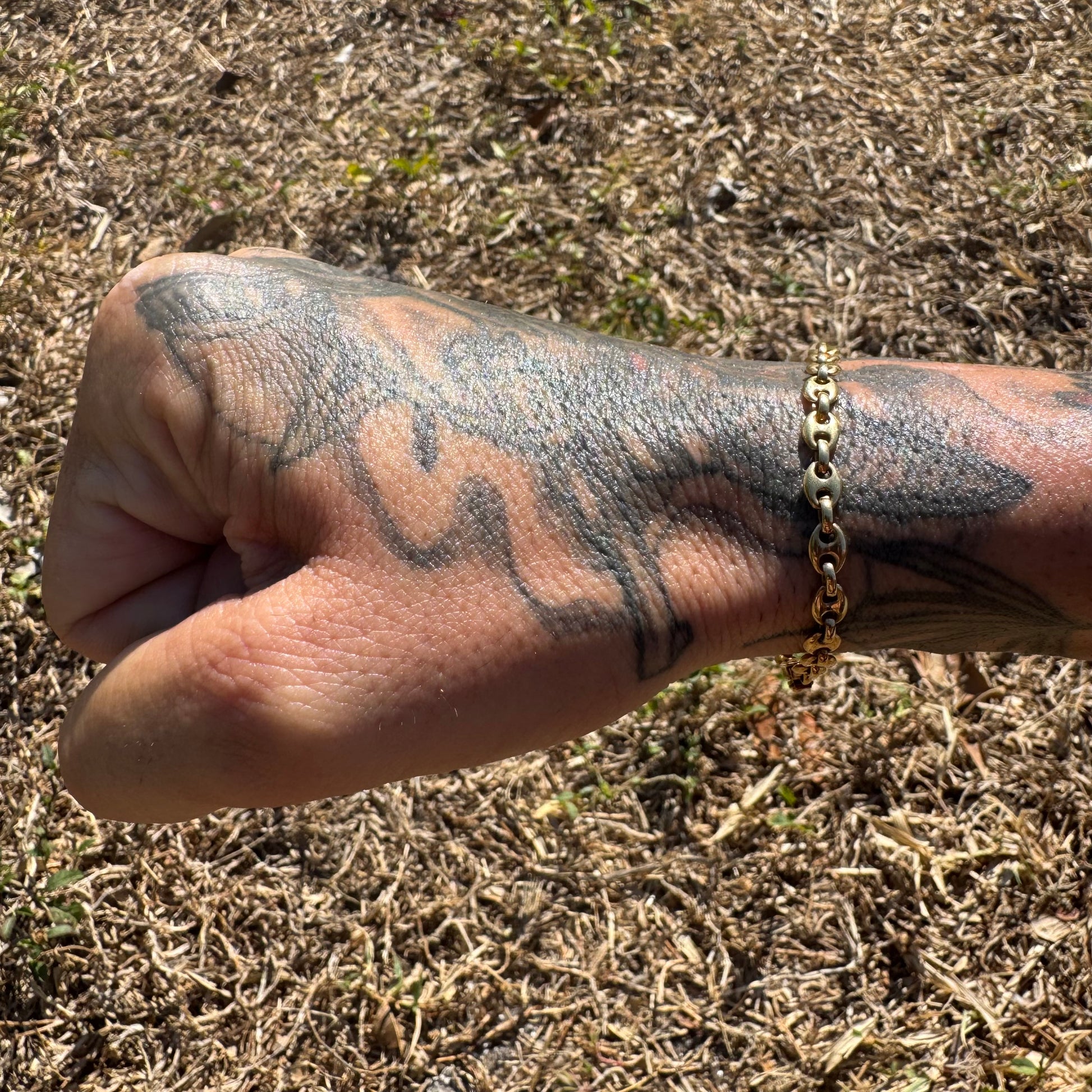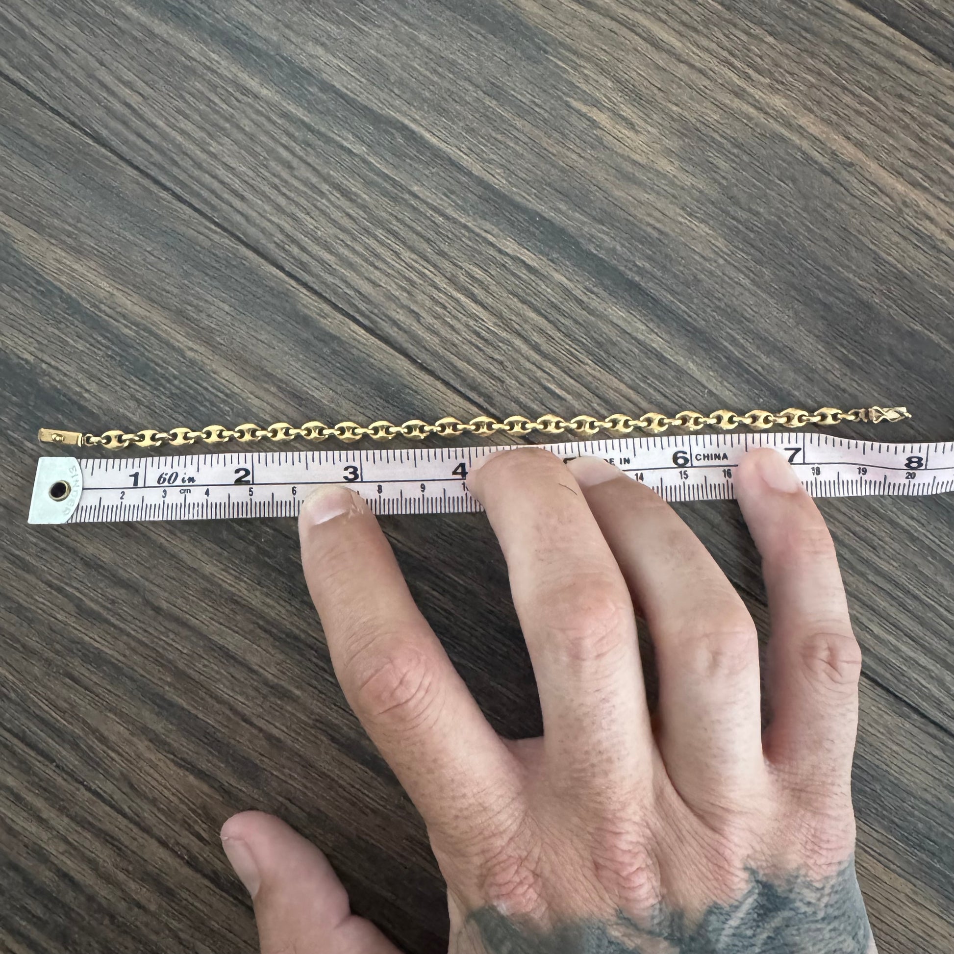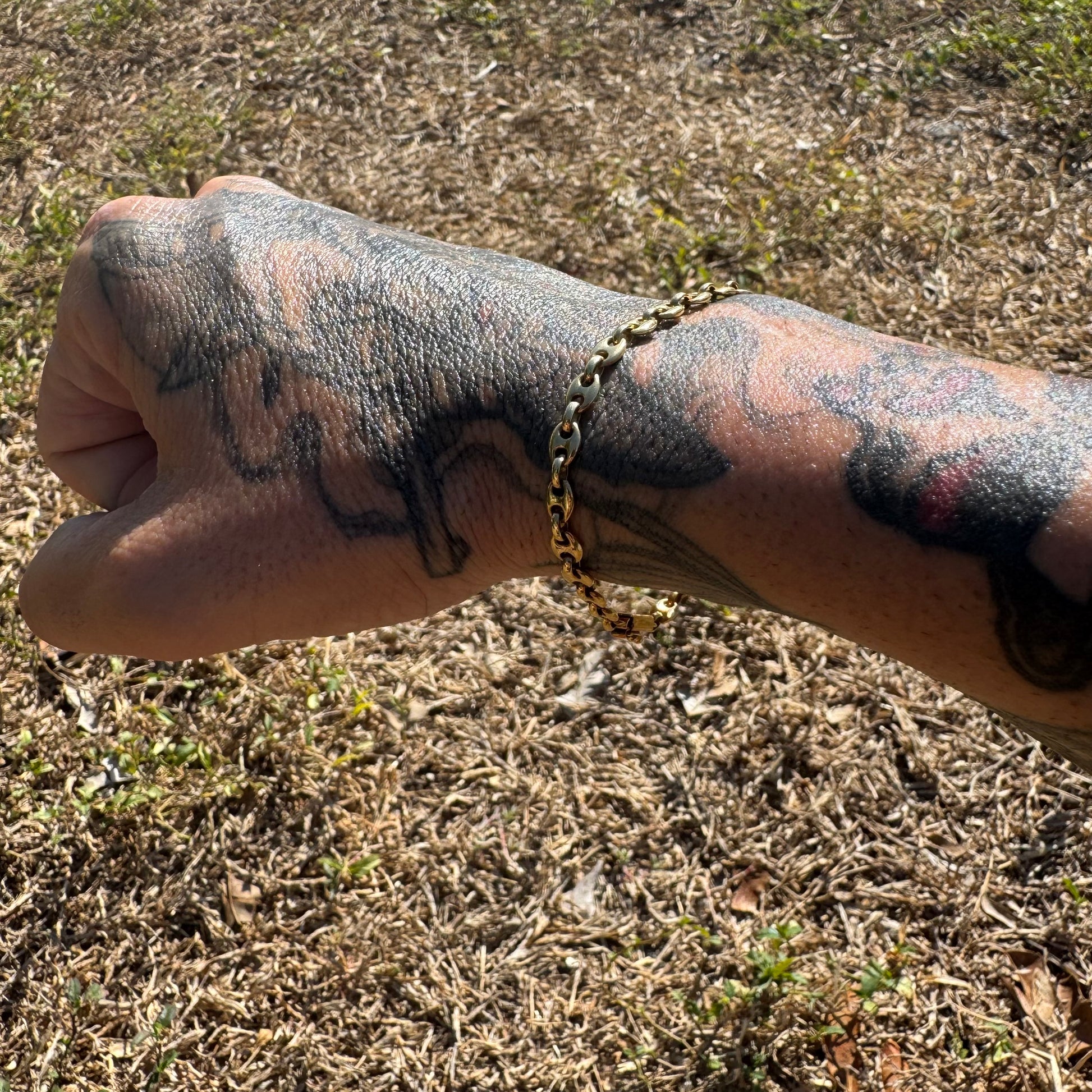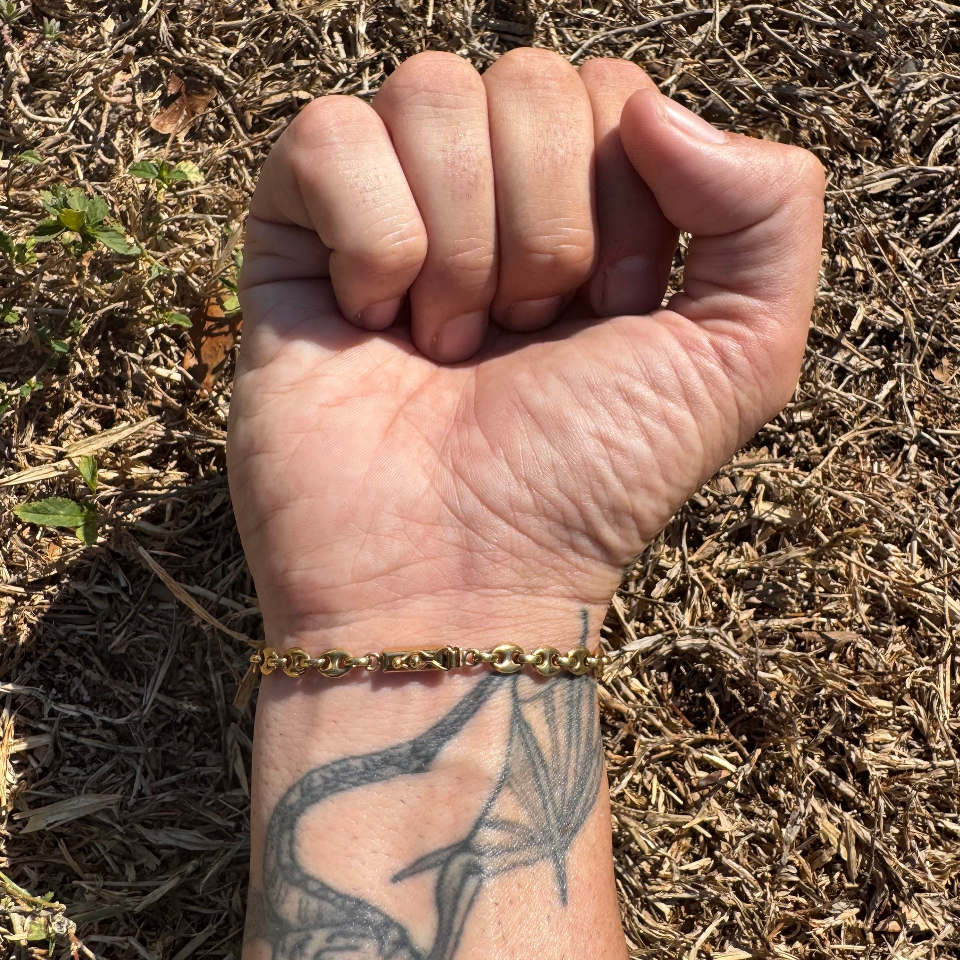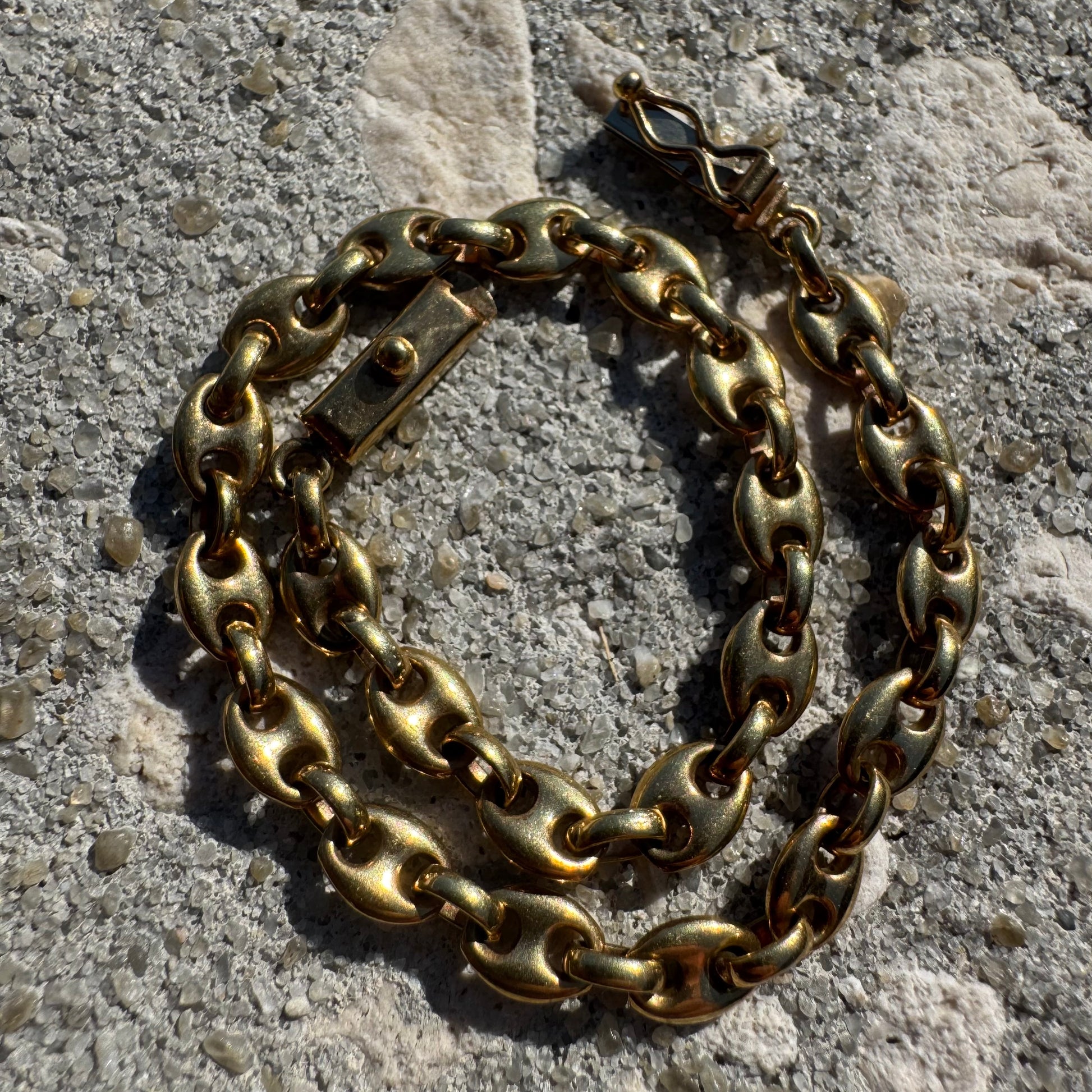 Crafted by UnoAerre, one of Arezzo Italy’s finest goldsmiths, around the 1970’s is a dream piece for the Mariner lovers out there. Crafted out of a deep vibrant toned 14k yellow gold each link is fully solid throughout. Equipped with a heavy duty yet sleek over the top style latched rectangular box lock the bracelet fits a wearable 7.5” at 5mm wide and 3.25mm thick center connecting links while weighing in at a heavyweight of 10.2g. Get the looks of an 18k bracelet at 14k price for one of the most sought after links and makers on the market.