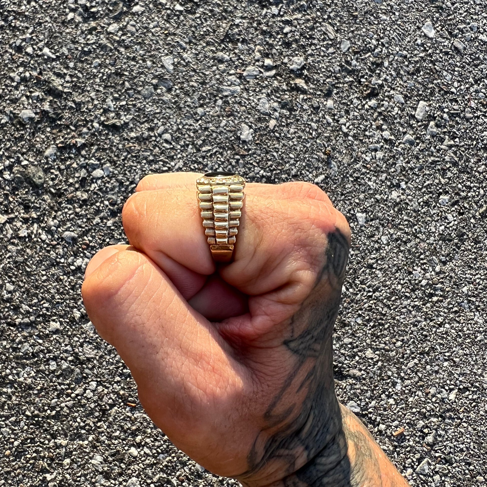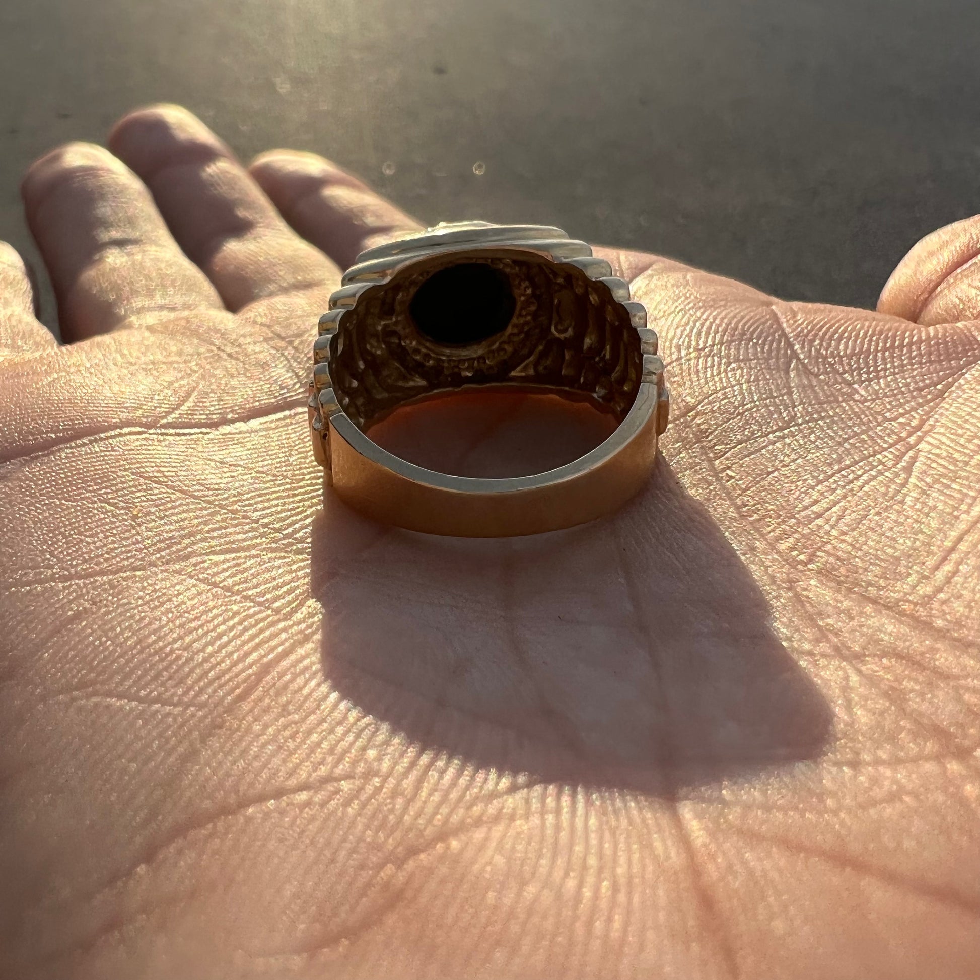 1980’s 14k Black Onyx Natural Diamond Halo Rolex Style Ring (9)