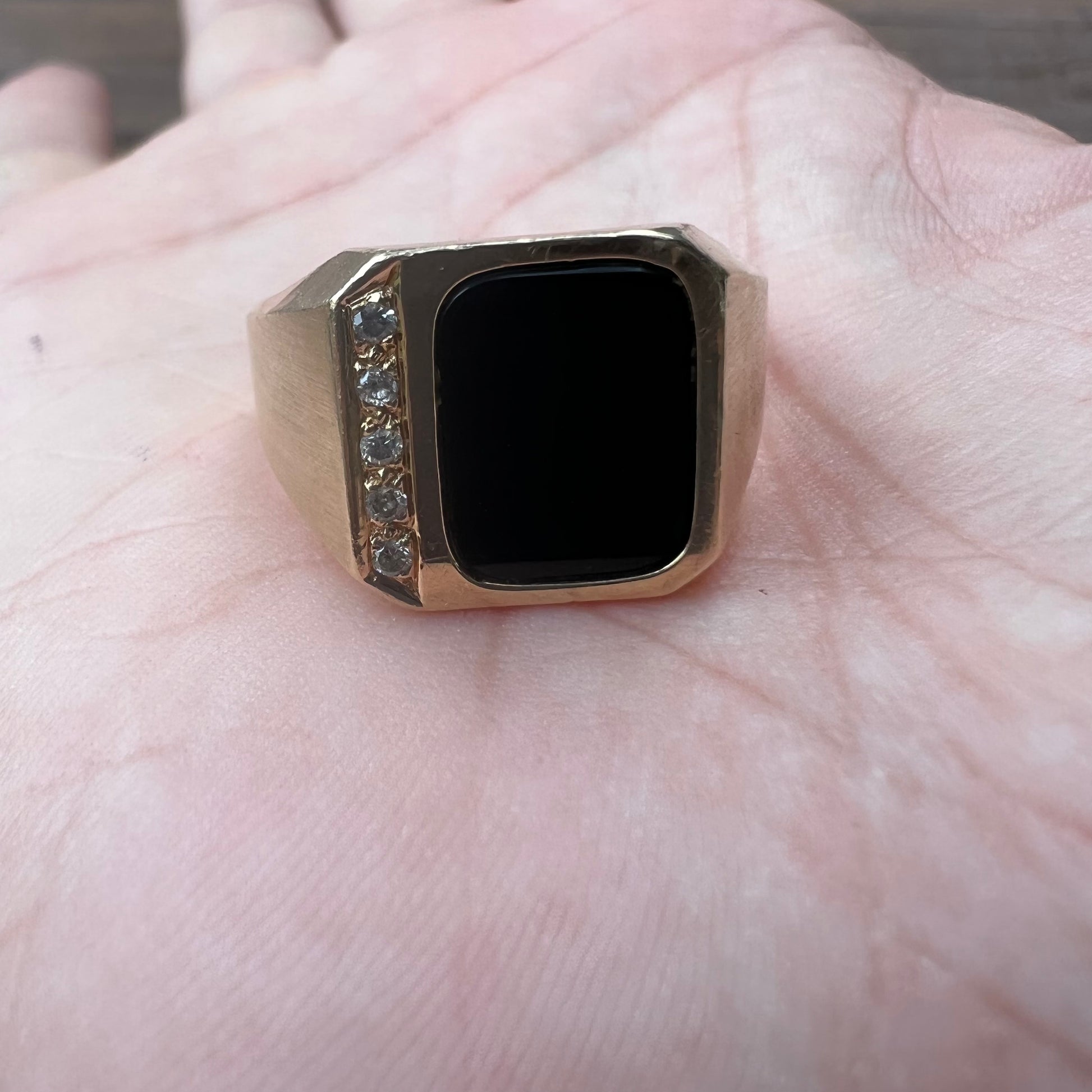1980’s 14k Black Onyx/Natural Diamond Signet Ring (11.5)