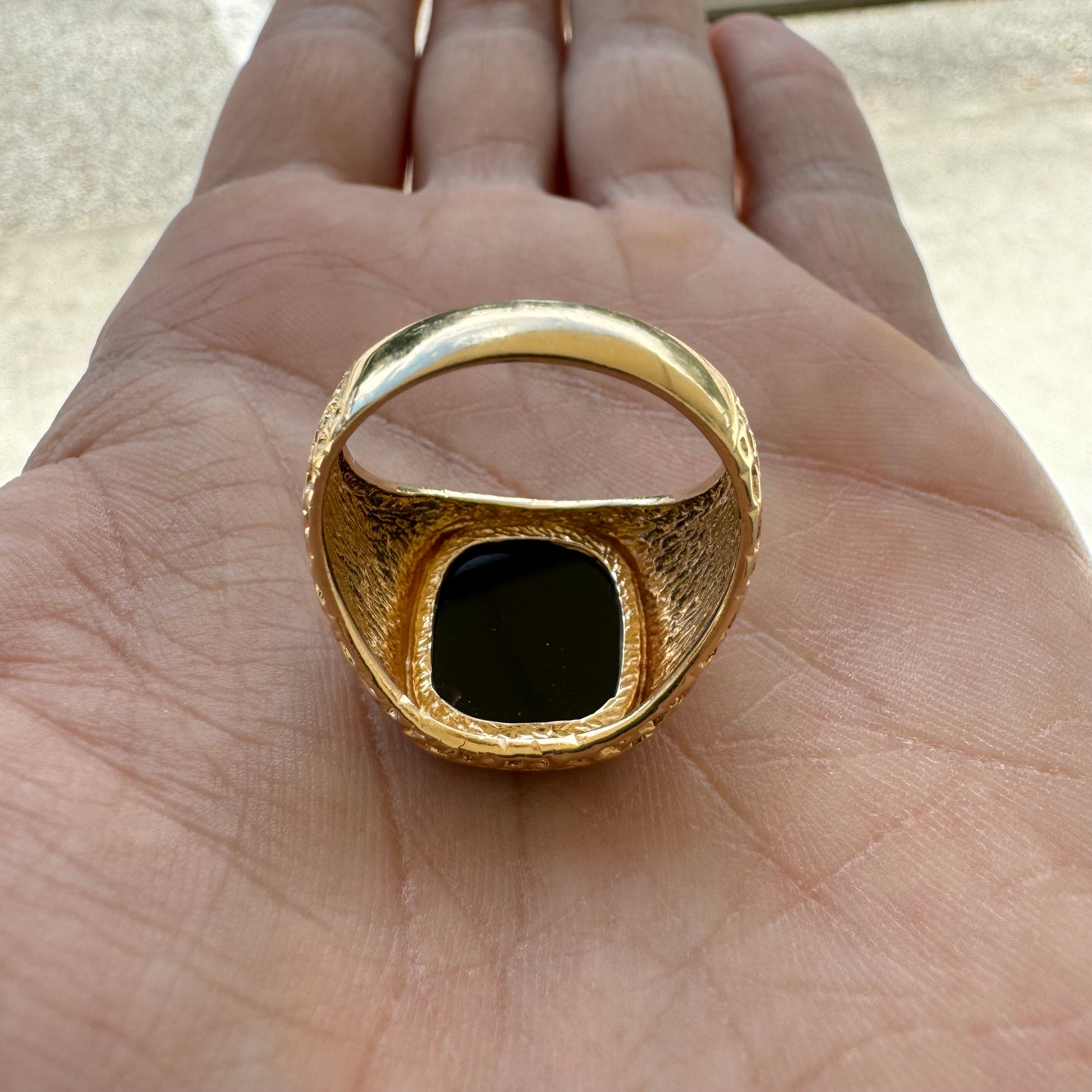 1980’s 14k Yellow Gold Black Onyx Nugget Signet Ring (10.5)
