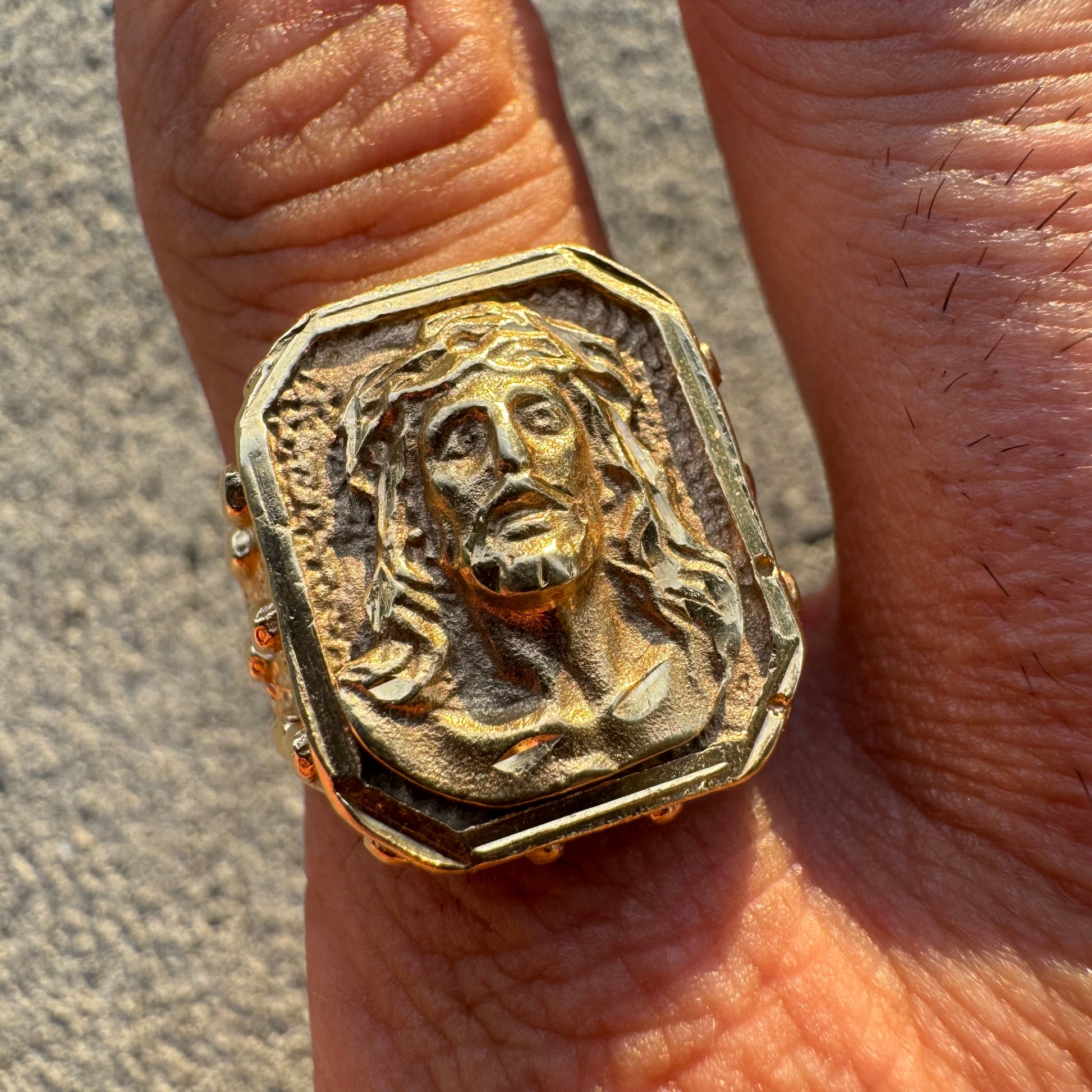 1980’s 14k Yellow Gold Jesus Piece Signet Ring (13)