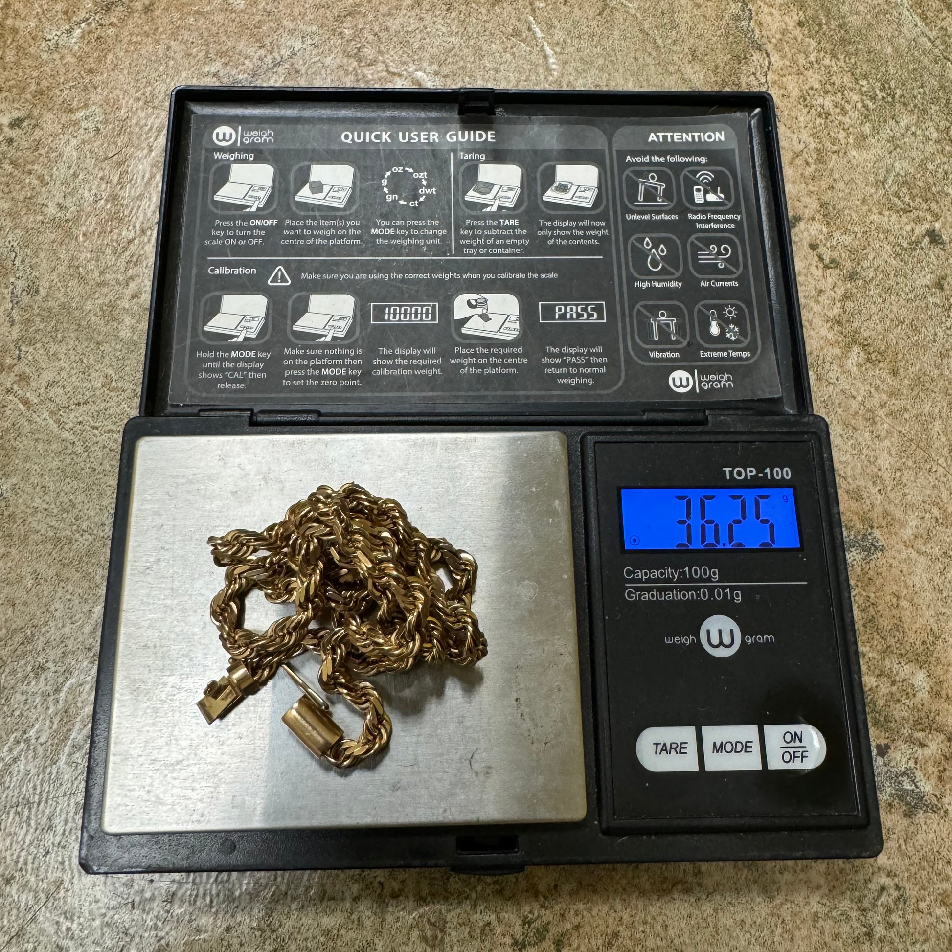 This one’s a monster weighing in at 36.25g of all solid 14k yellow gold. Thick and chunky circumference at 4mm x 4.5mm around in a fully diamondcut fashion giving off luster and shine when in motion or standing still. An oversized and secure heavy duty cylindrical barrel lock clasp with side latch for extra support. This chain ain’t going anywhere as it weighs you right down to the ground and will take any type of pulling if you ever get into any type of scuffles you won’t have to worry about this one getting tugged off. A perfect length to width and weight ratio at a wearable 20.25”.