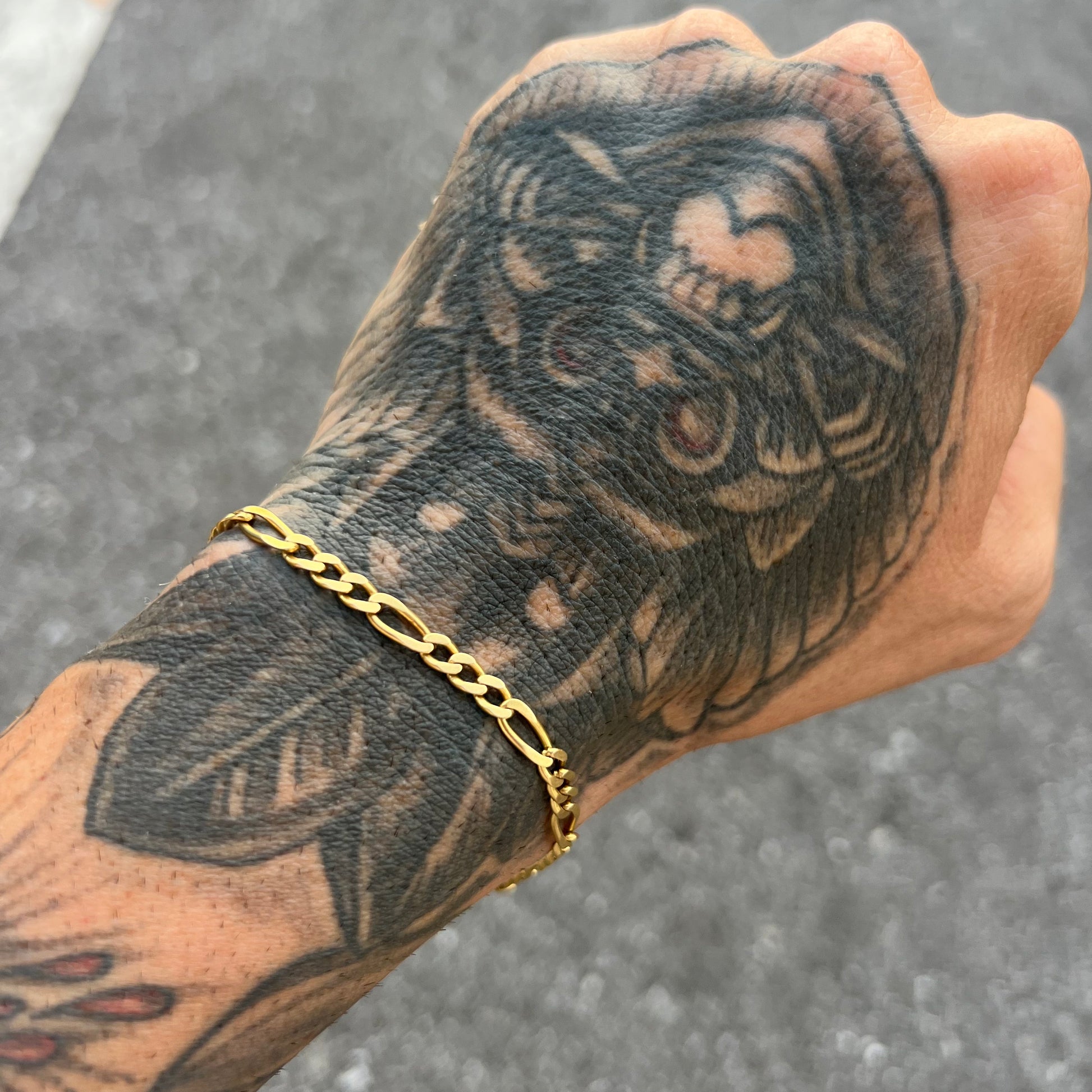 Straight from the old country of Arezzo, Italy all handmade by the finest goldsmiths working for Fratelli Chini is a beautiful golden yellow solid 18k Figaro bracelet. A heavy duty intricate lobster clasp hallmarked with exactly what you want to see from a high end bracelet. 8.25”/4mm/8.4g