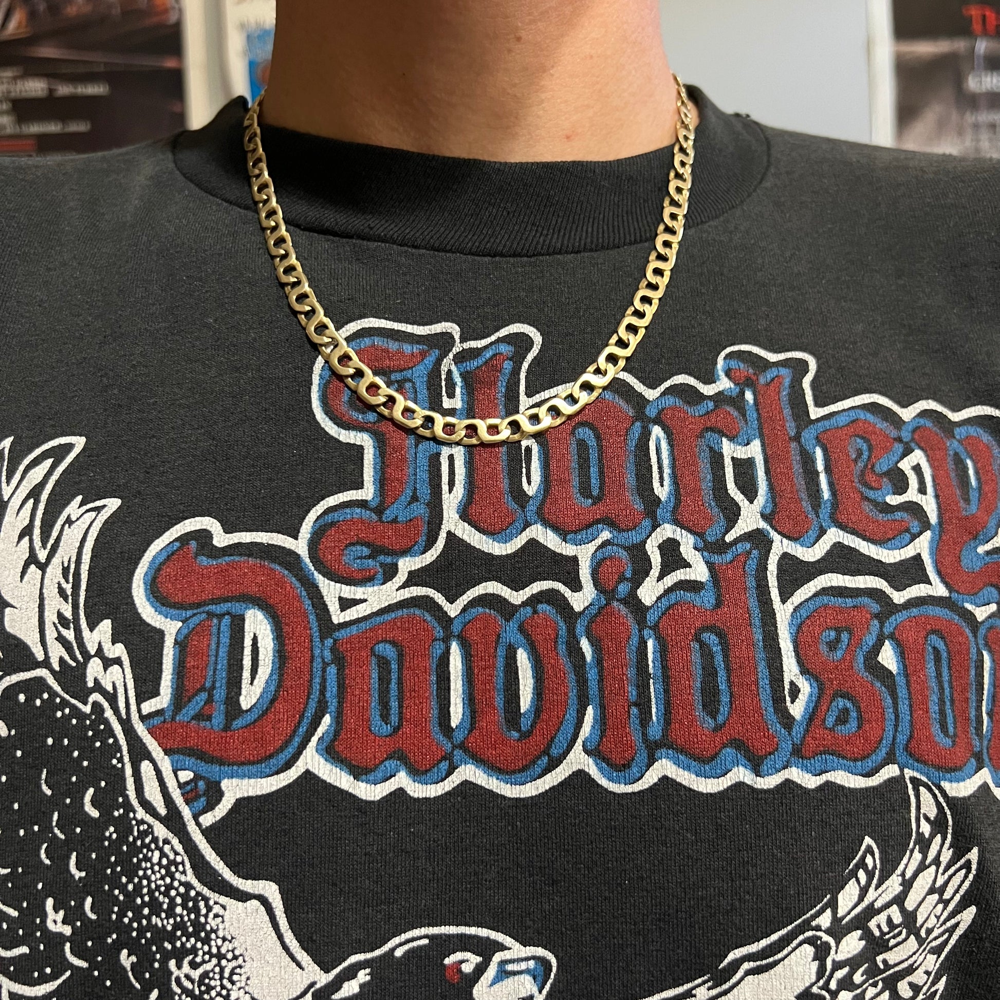 The best attribute is that interlocking Heavyduty handcuff clasp that I wish every single necklace could have built into it. It would take a big yank by a very strong person to get this one tugged off your neck. Built to last this is a timeless chain that was all handmade and gives off both tough and elegant style. Solid 14k and quite heavy at just over 30g with a length just under 20” and 6.5MM. One of my favorite chains I’ve ever had.
