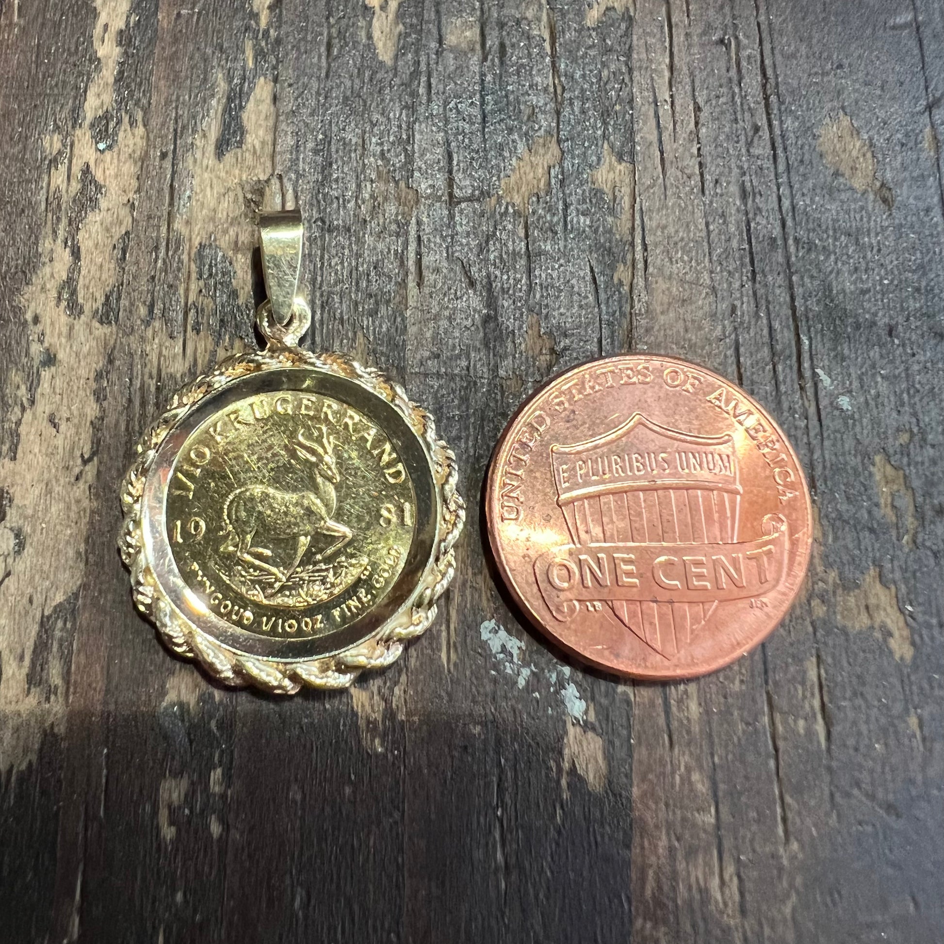 1981 South Africa 1/10 oZ Krugerrand Coin Pendant