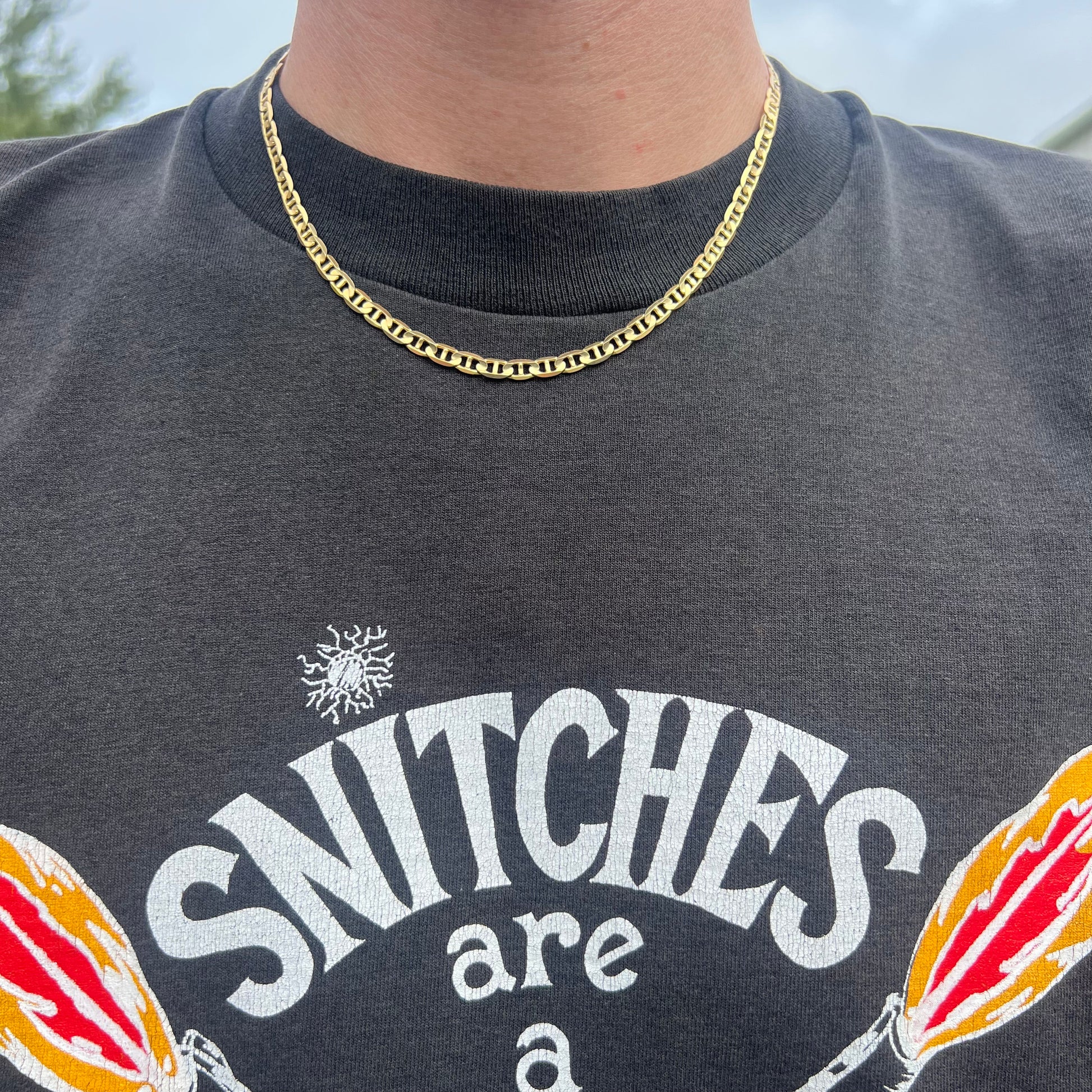 Italian made with a deep vibrant yellow hue is a solid 14k gold mariner link necklace. Beveled edges to give off that fierce sharp look to catch the light at any movement. Measures approximately 18” in length by a flat 5MM wide and weighs 15.6g