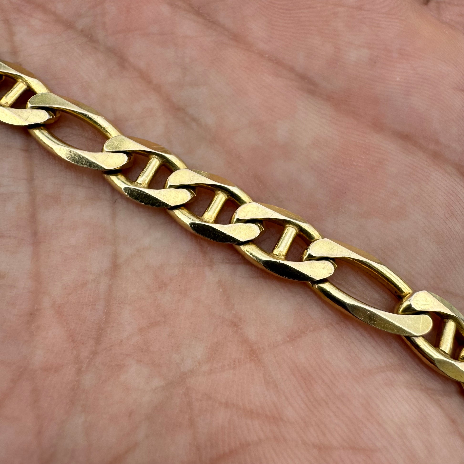 1990’s Solid 14k Yellow Italian Gold Knife Edged Mariner Figaro Link Bracelet (8.25”)