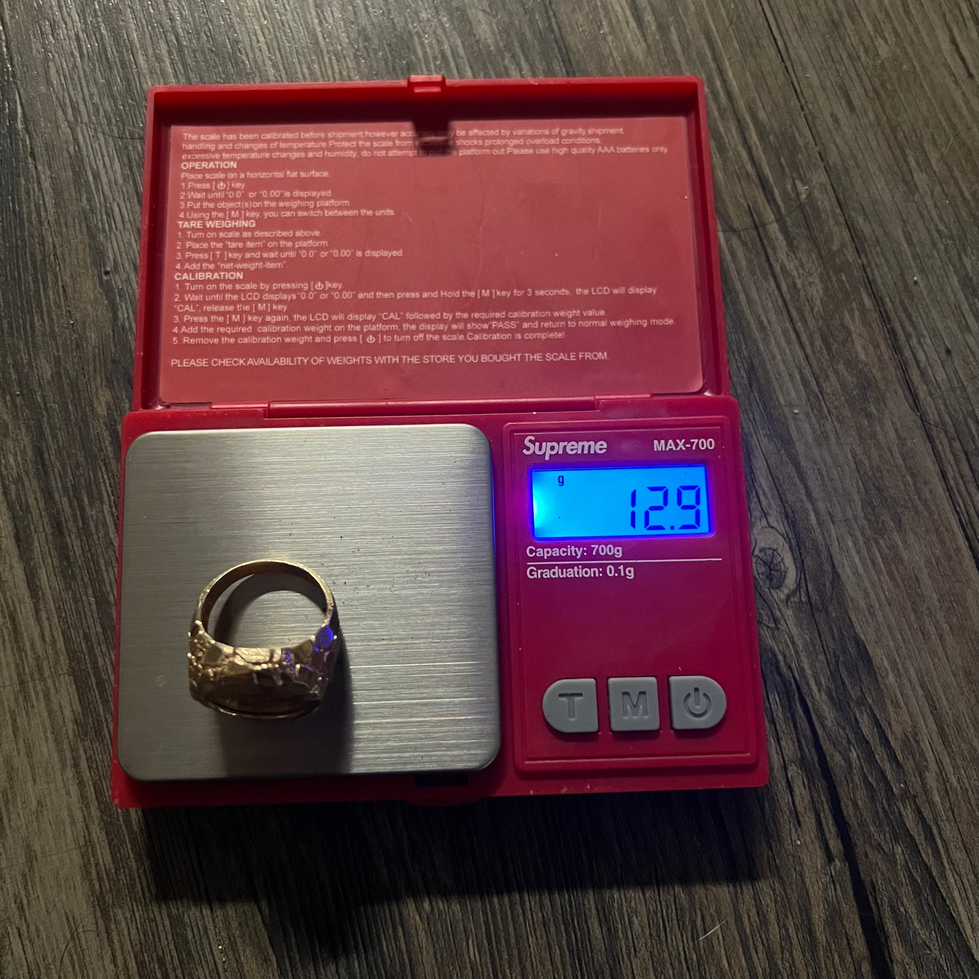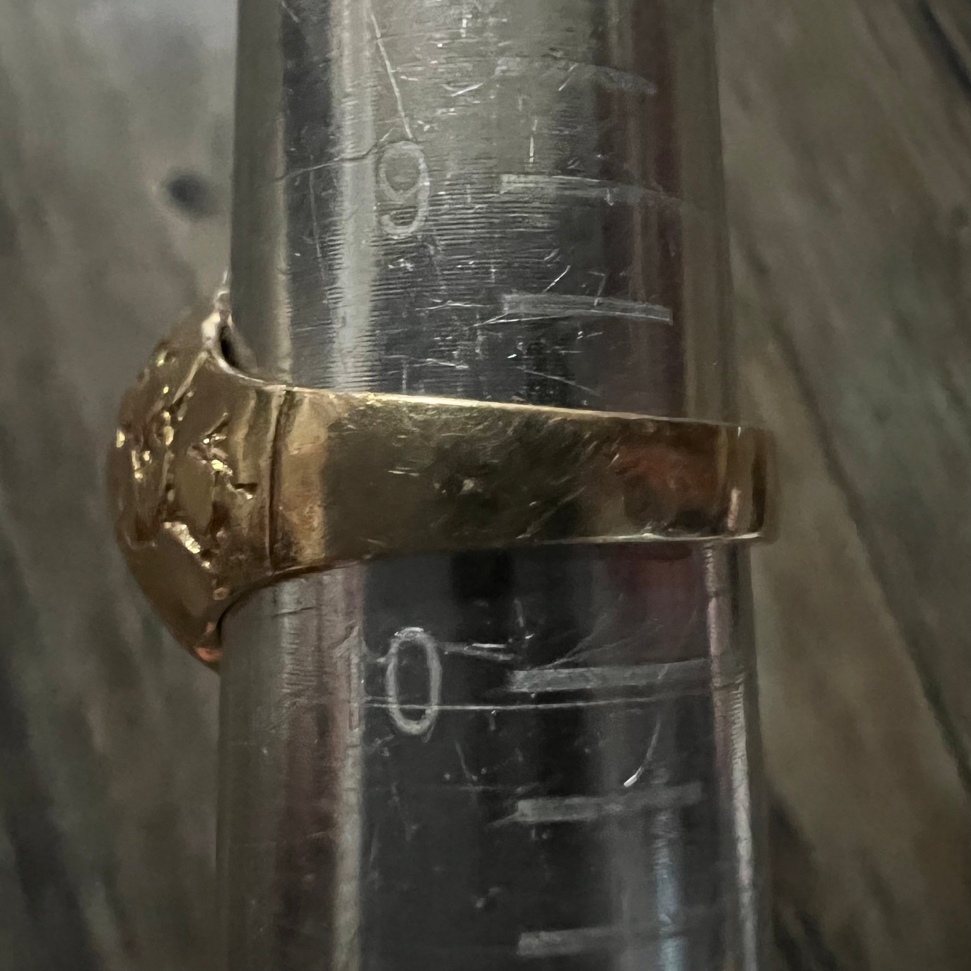 1991 (Roman numeral) walking Liberty pure .999 gold 1/10 oz ($5) coin set meticulously inside of a quality crafted heavy 14k Nugget ring. Weighs just under 13g with the coin weighing 3.9g. Size:9.75