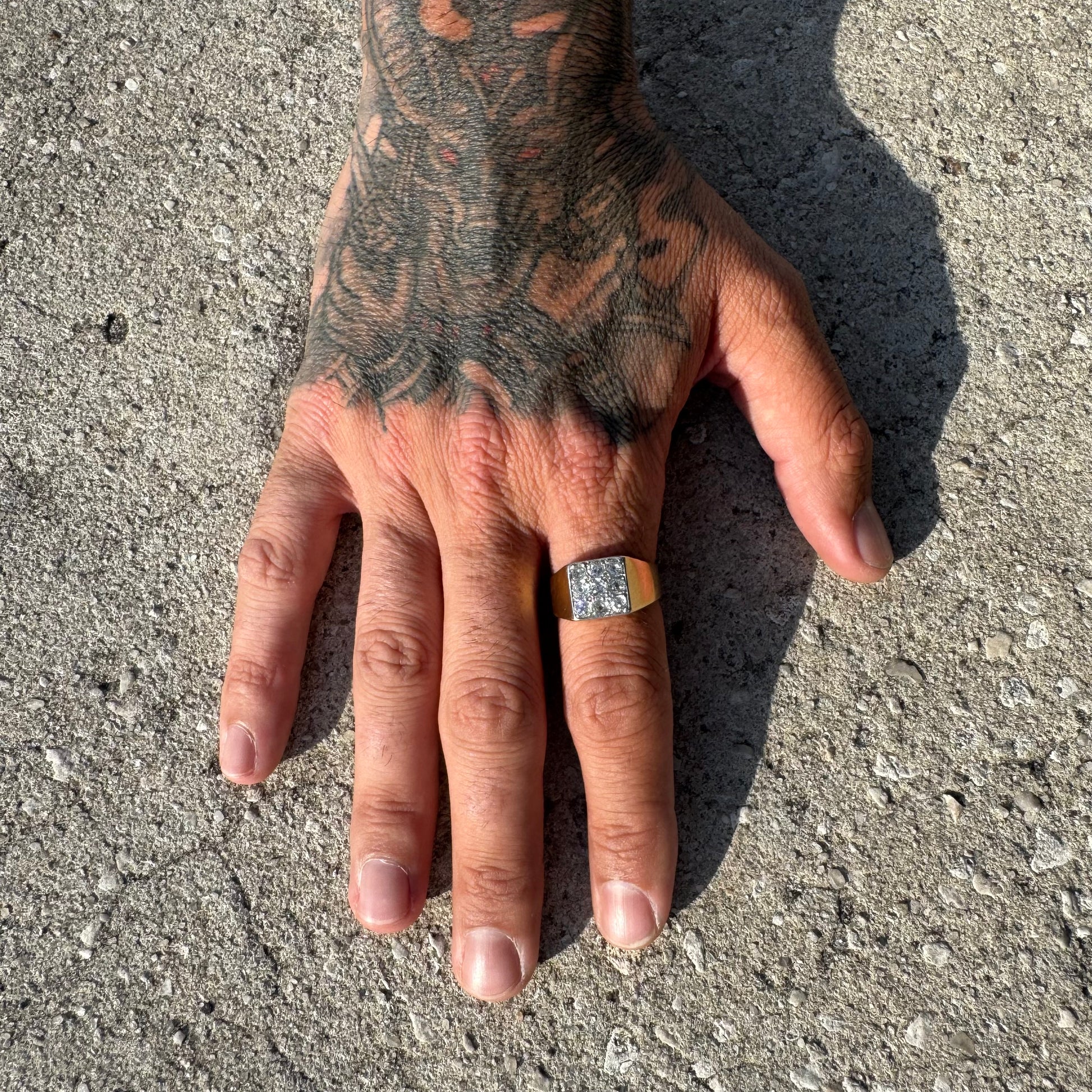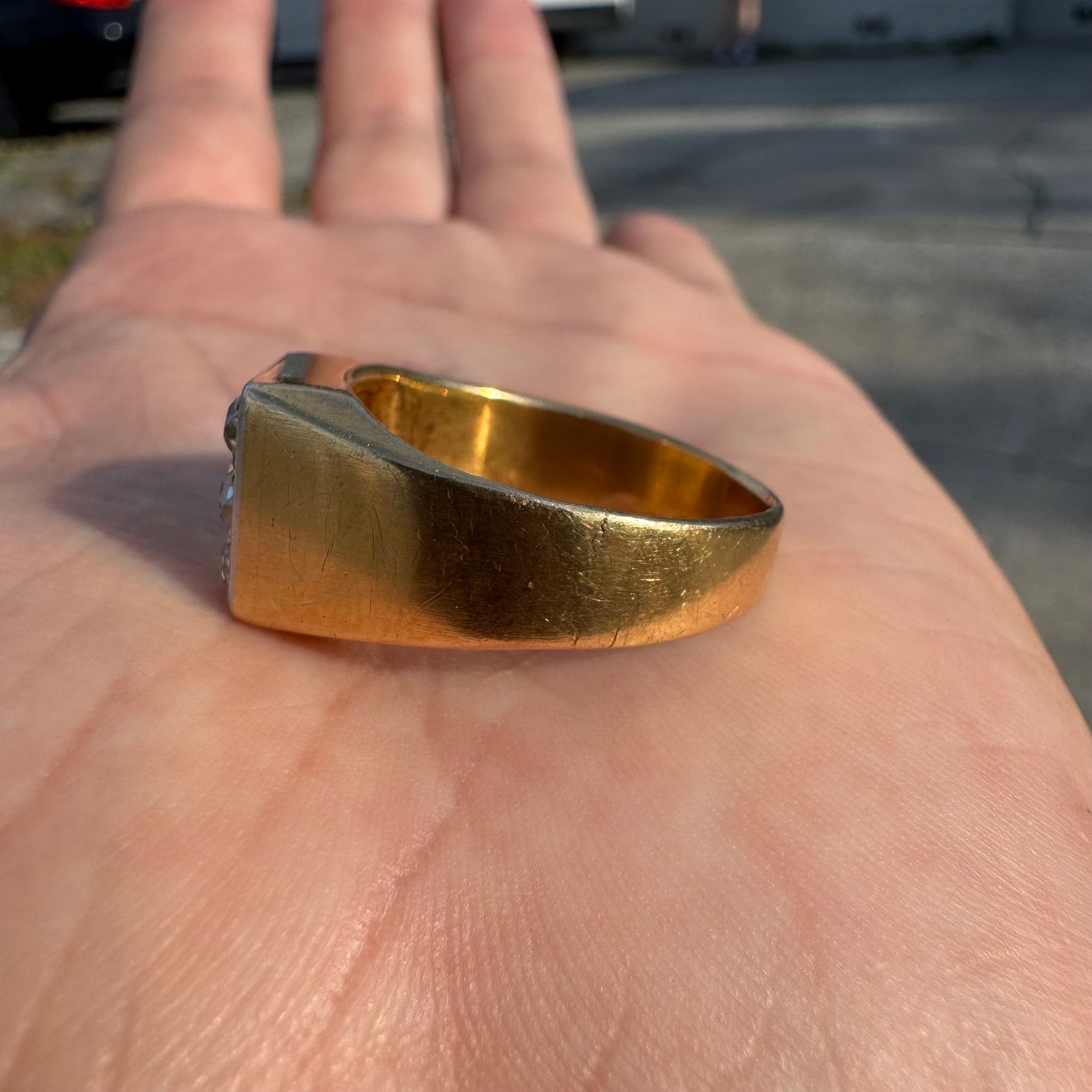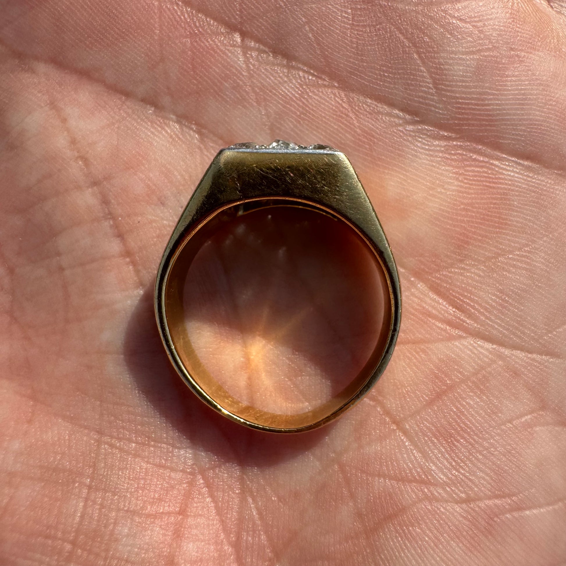 Antique 18k Yellow Gold 1.35ctw Natural Old Mine Cut Diamond Cluster Gents Ring (10.75)