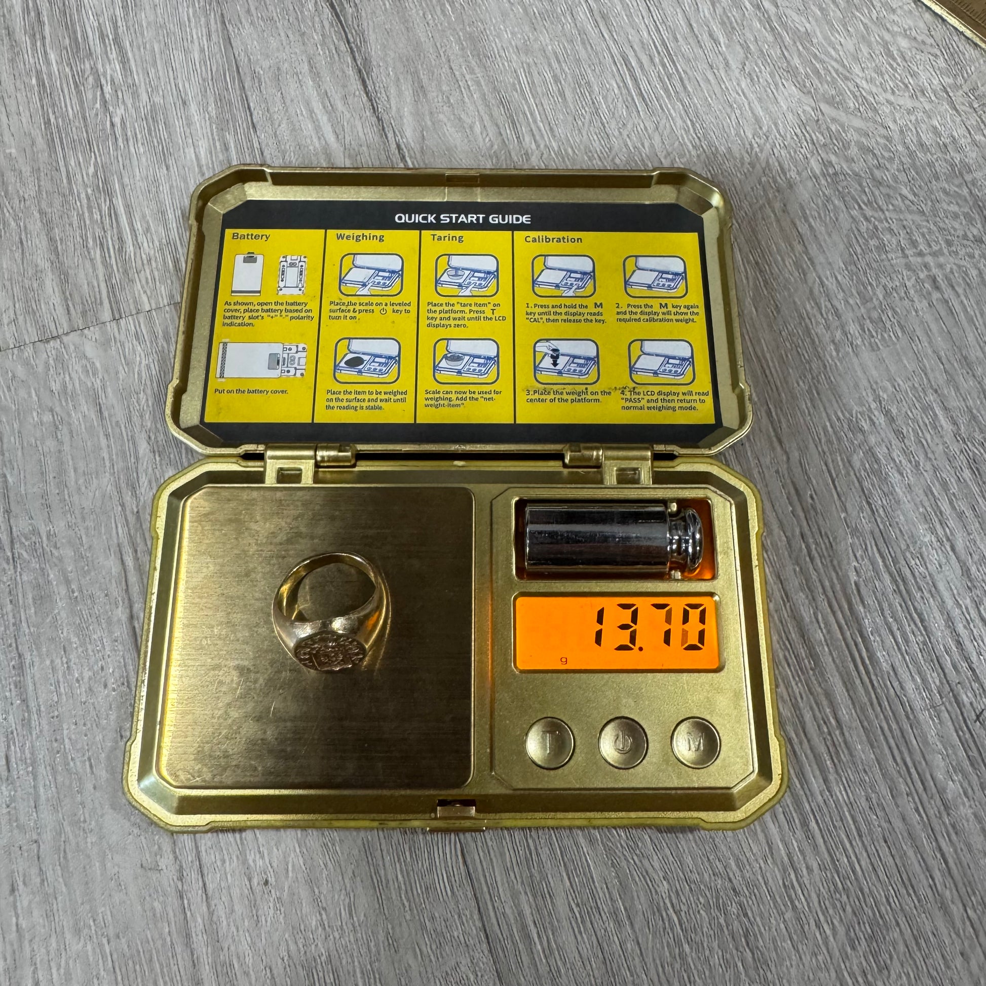 Antique Solid 14k Yellow Gold Warrior Crest Intaglio Signet Ring (7.5)