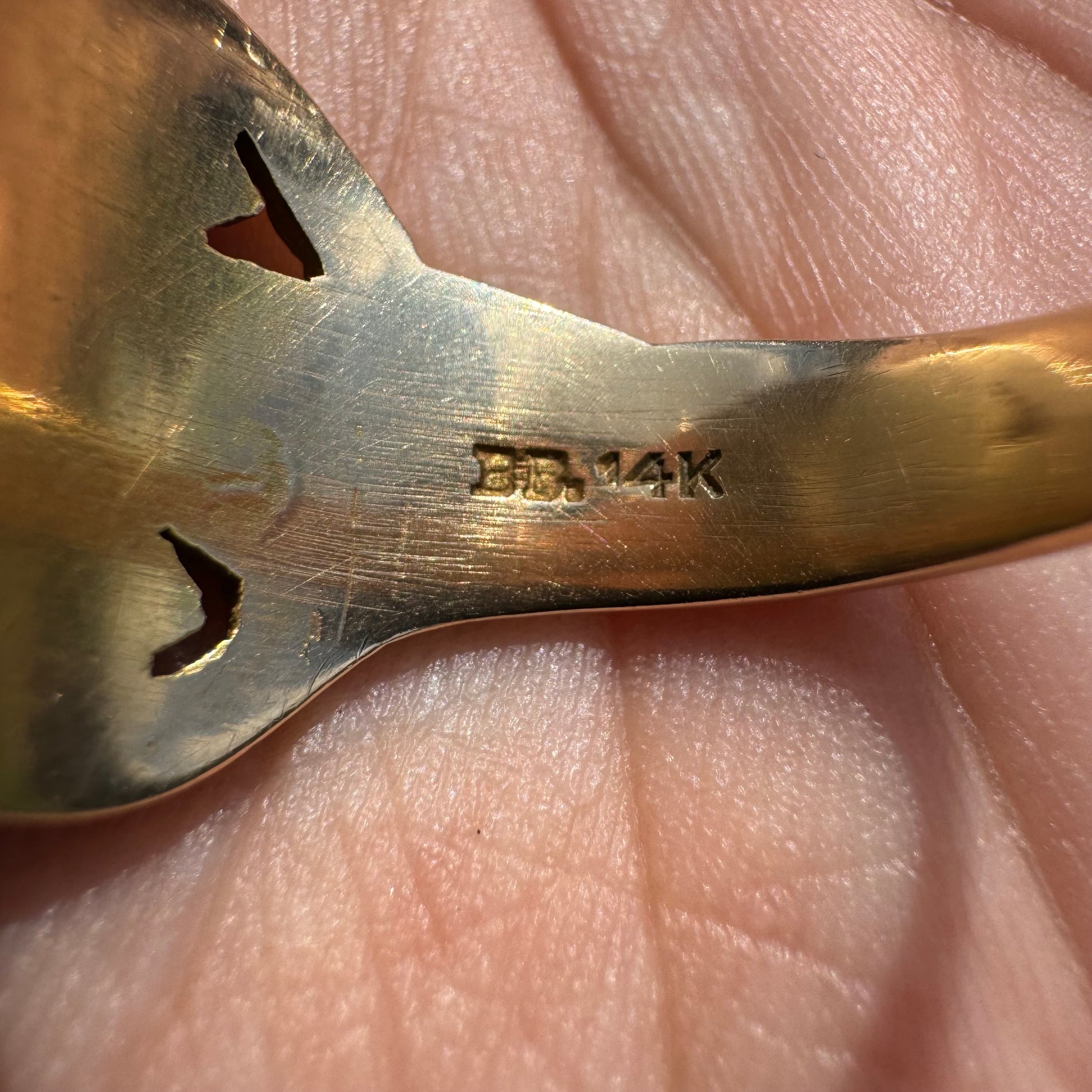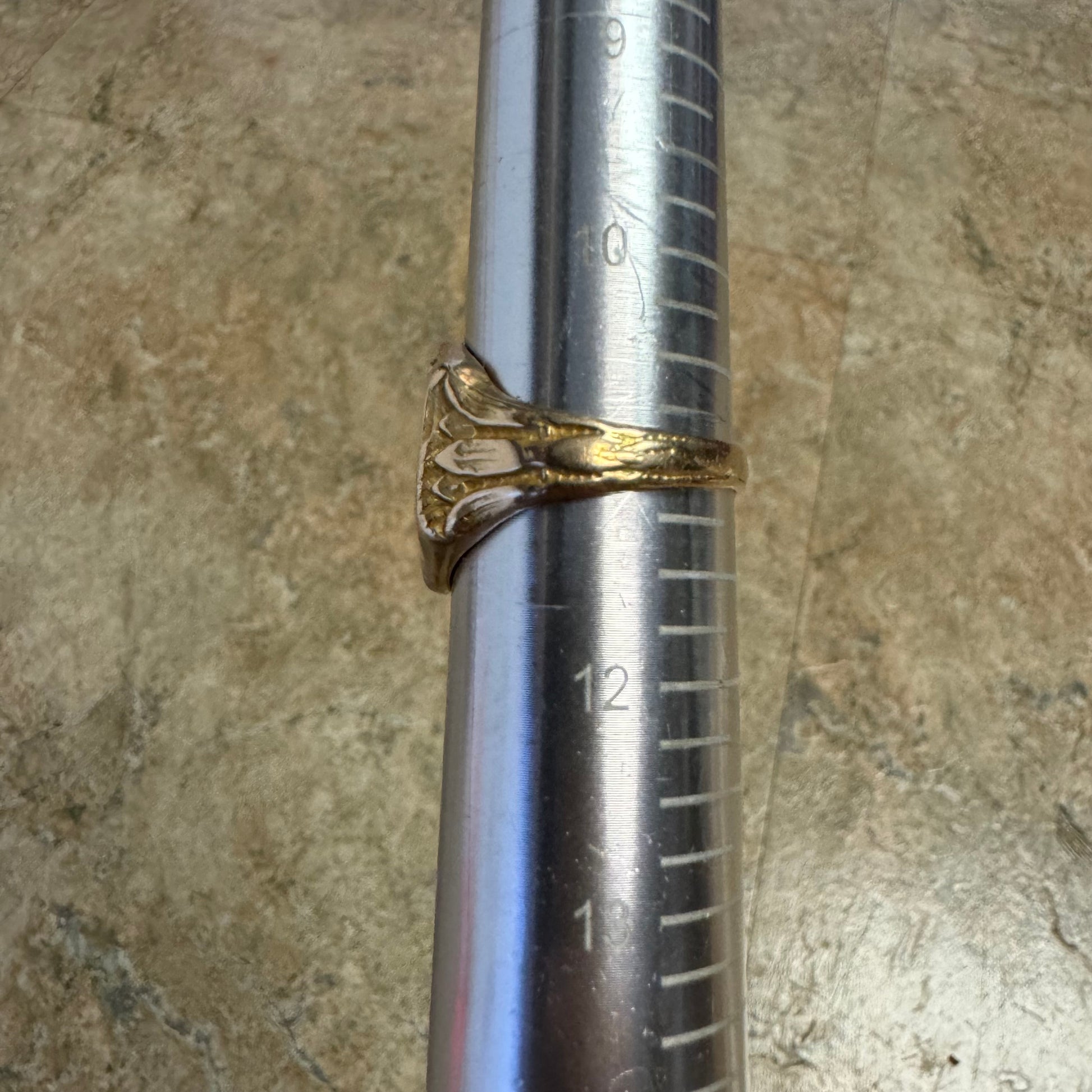 Art Nouveau Solid 14k Yellow Gold Mermaid Scroll Signet Ring (11)