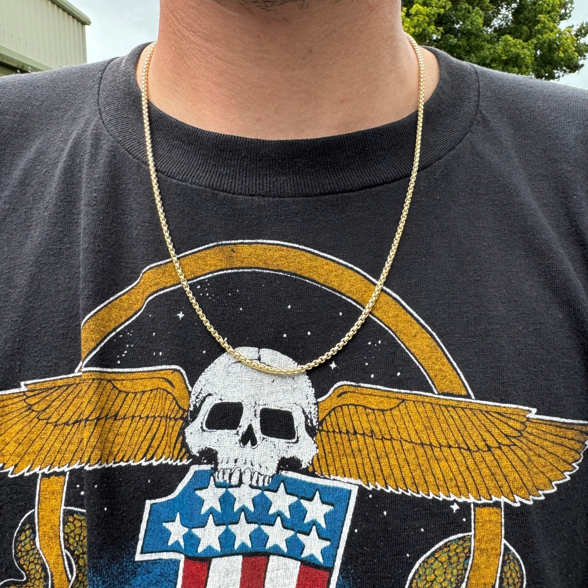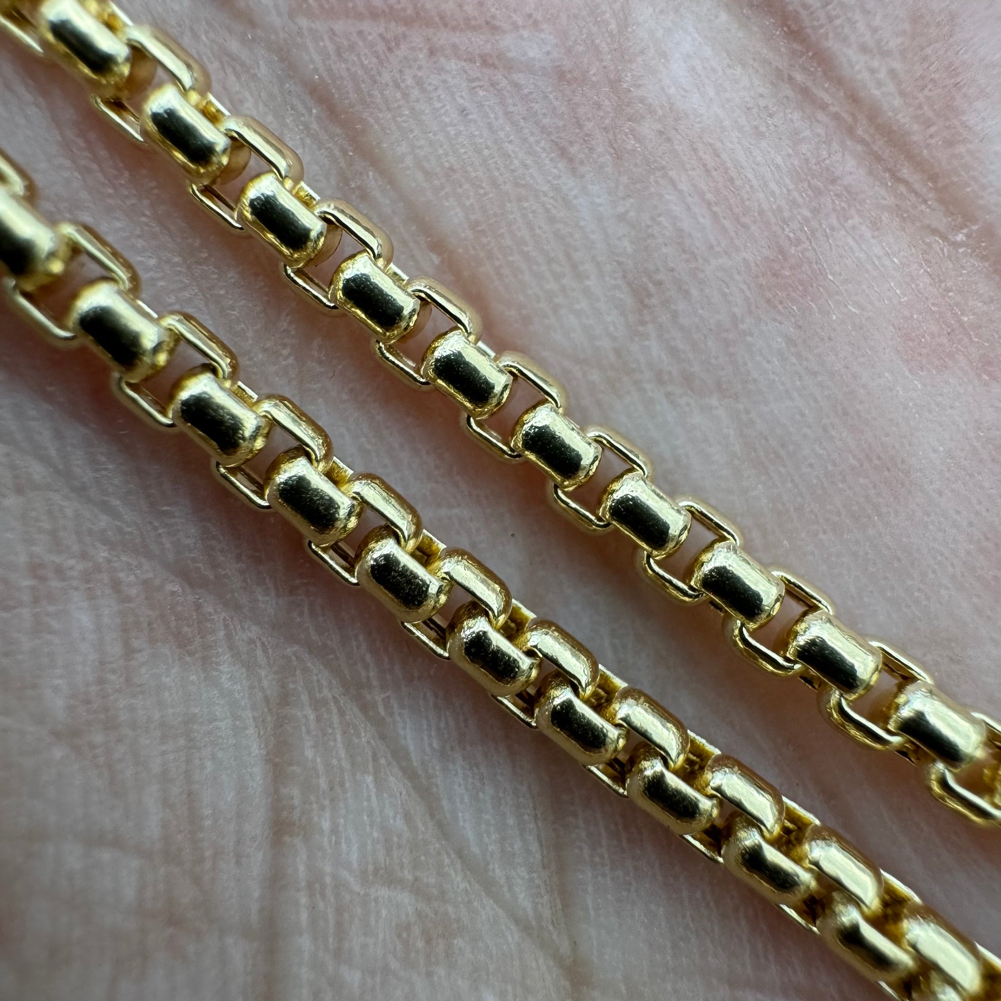 Brand New 14k Italian Yellow Gold Rounded Box Link Necklace (22”)