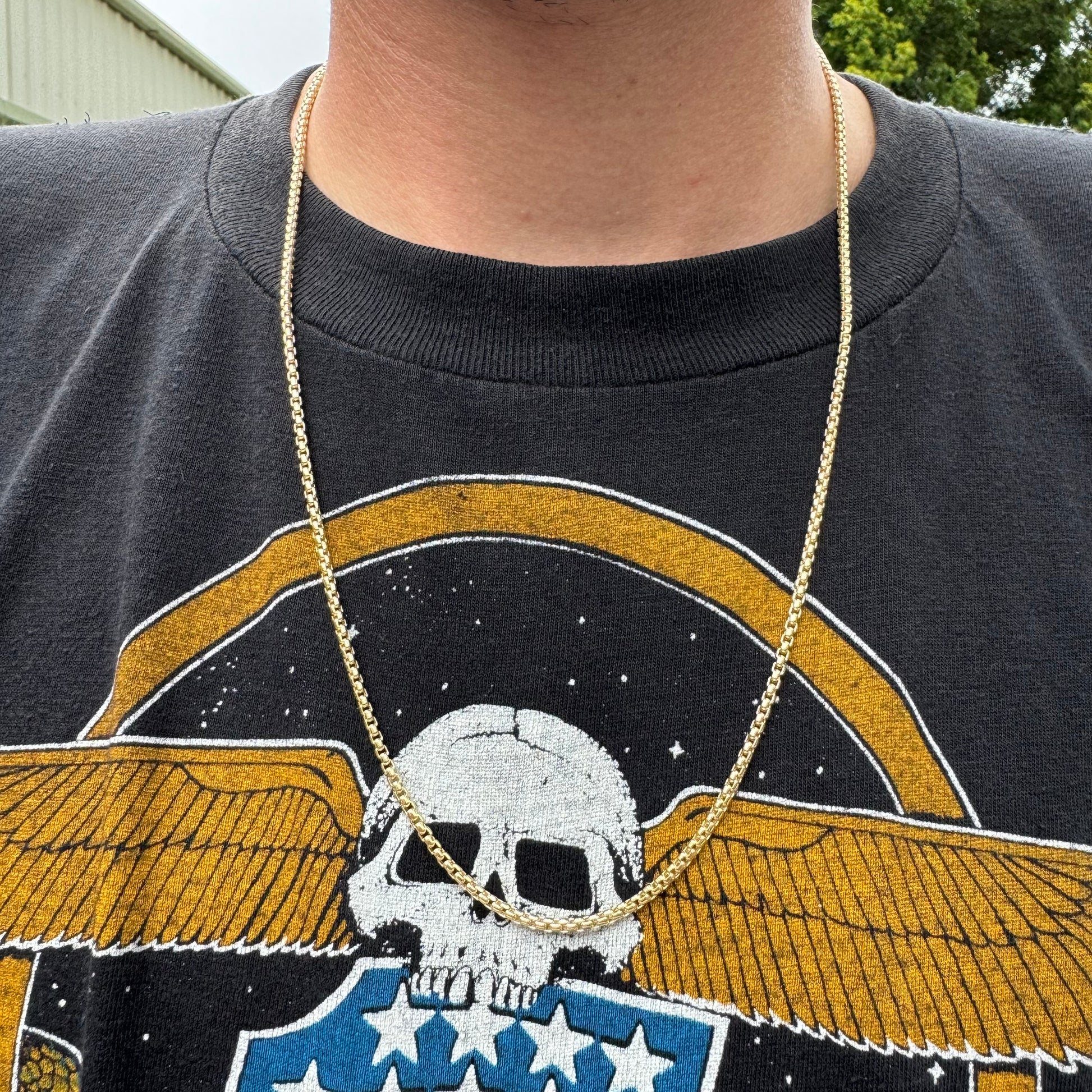 Brand New 14k Italian Yellow Gold Rounded Box Link Necklace (24”)