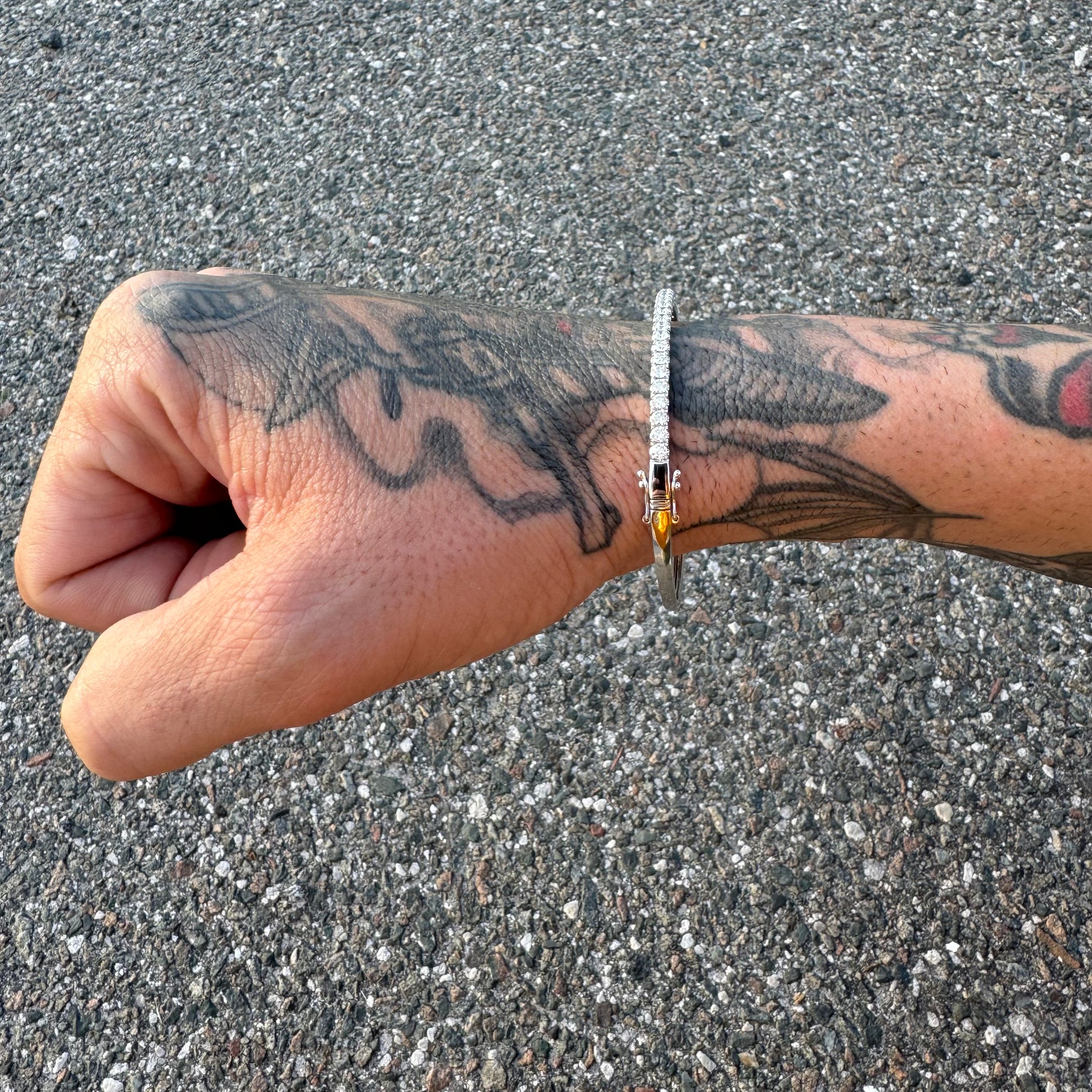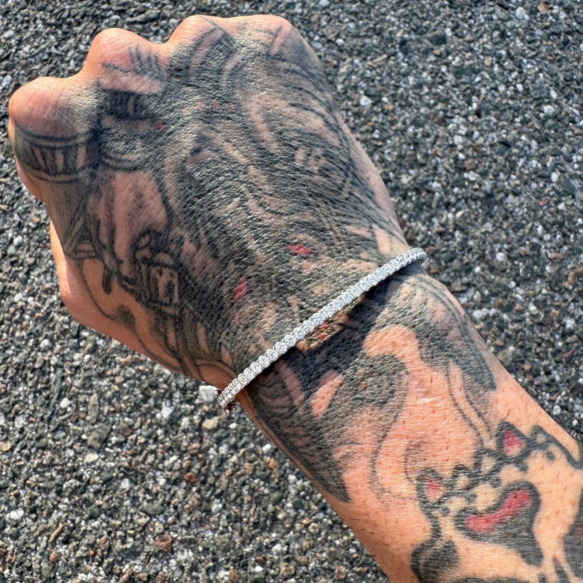 This piece and many others were bought out from a multi million dollar estate from one of the most beautiful and abundant top tier jewelry collections I have ever seen. Almost all of the pieces were never worn and bought with over indulgence in mind, if I’m being quite honest. I was told the estate had purchased them all in 2022-2023 at different time periods on what’s referred to as a “last call” from a high end jewelry retailer cleaning out their overstock for that inventory quarter. The estate was forced to liquidate everything at not only far below what they had actually paid for these pieces but far below what it would actually cost to make any of this. I can guarantee you without a shadow of a doubt you couldn’t even buy the goods and materials to make this item at this price let alone what it would cost in labor to make this. I was able to get these all natural and highest grade pieces at incredible prices and I’m returning that favor to you. This single diamond bangle alone had cost $3199 with an original price tag of $5999 the specific information on this piece consists of the following specs;
