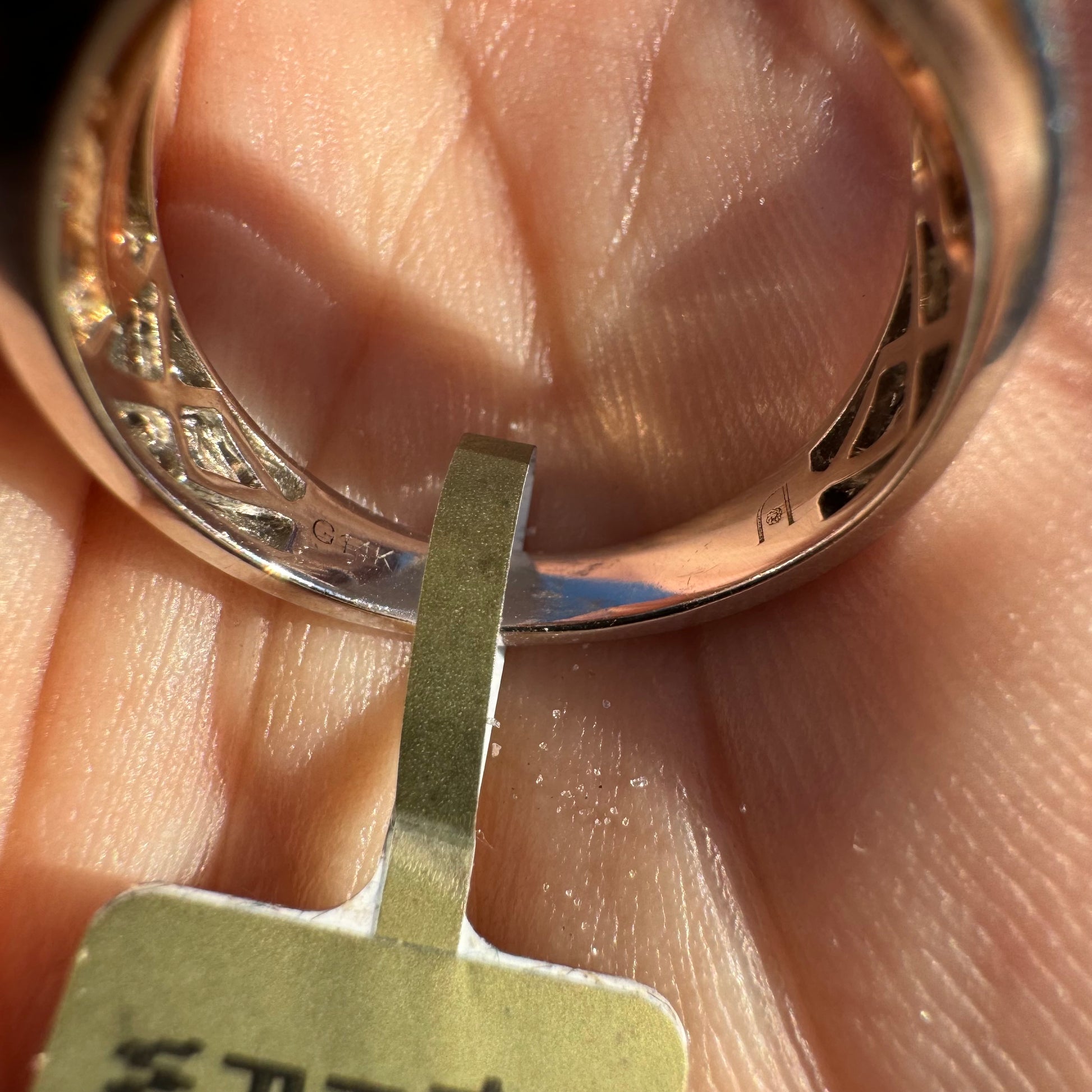 •.36ctw natural VS clarity pink diamonds set in rosey pink gold in 2 rows surrounding the main stone as well as the inner center band
