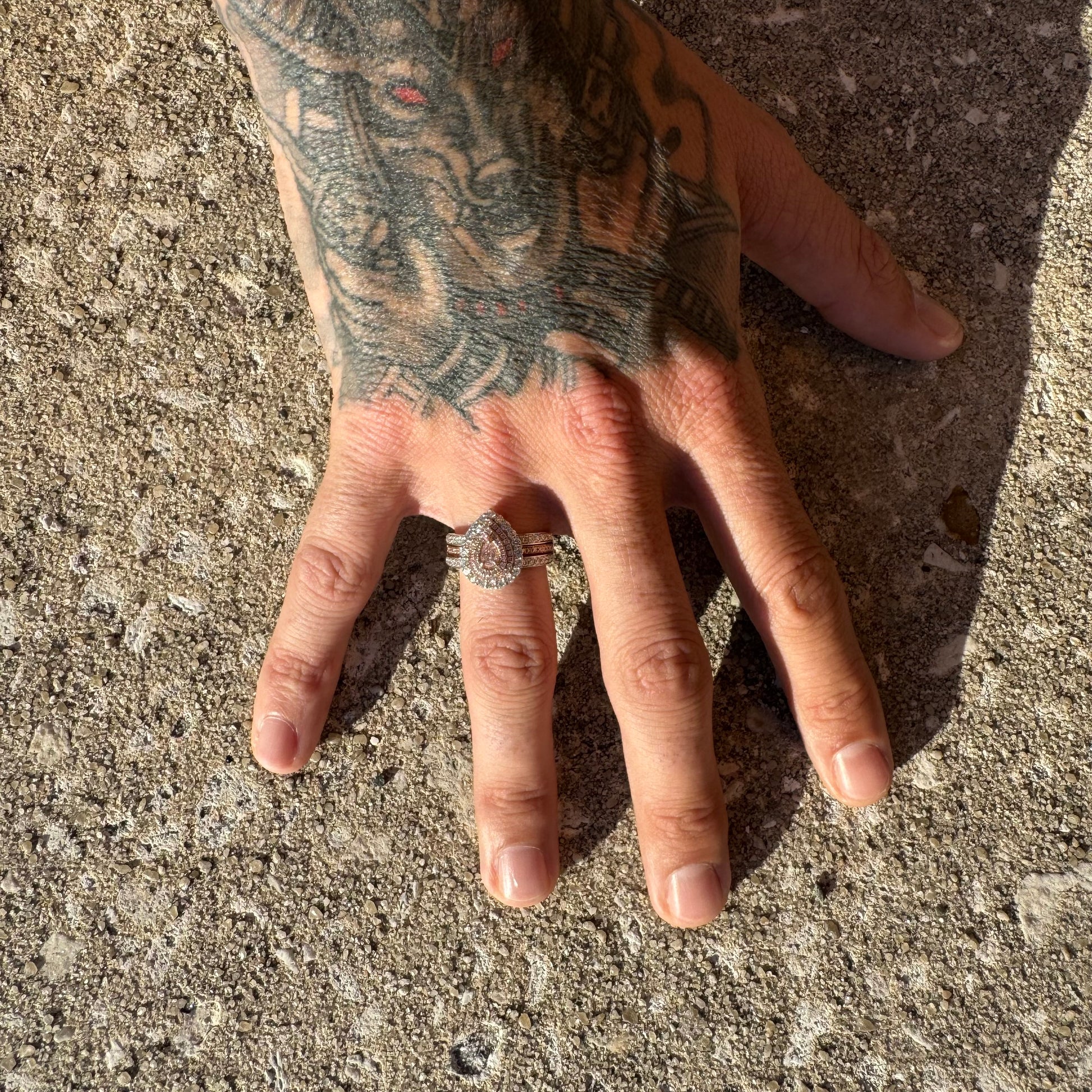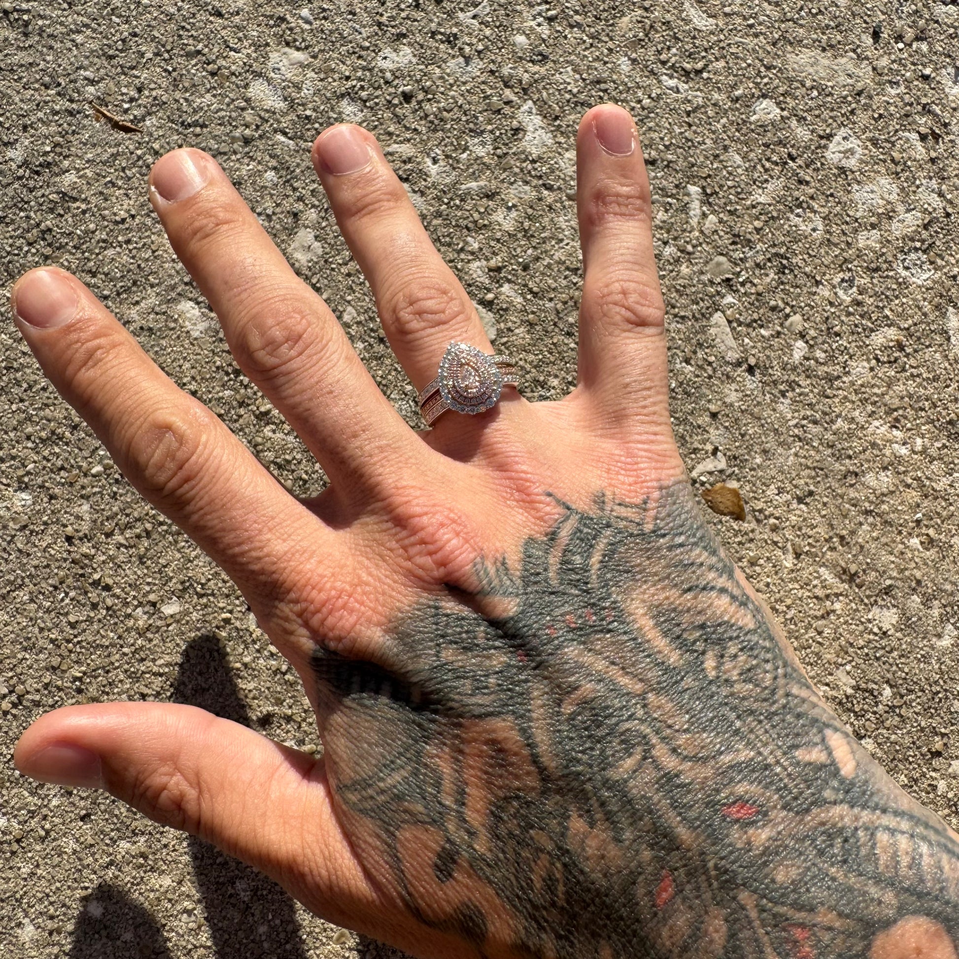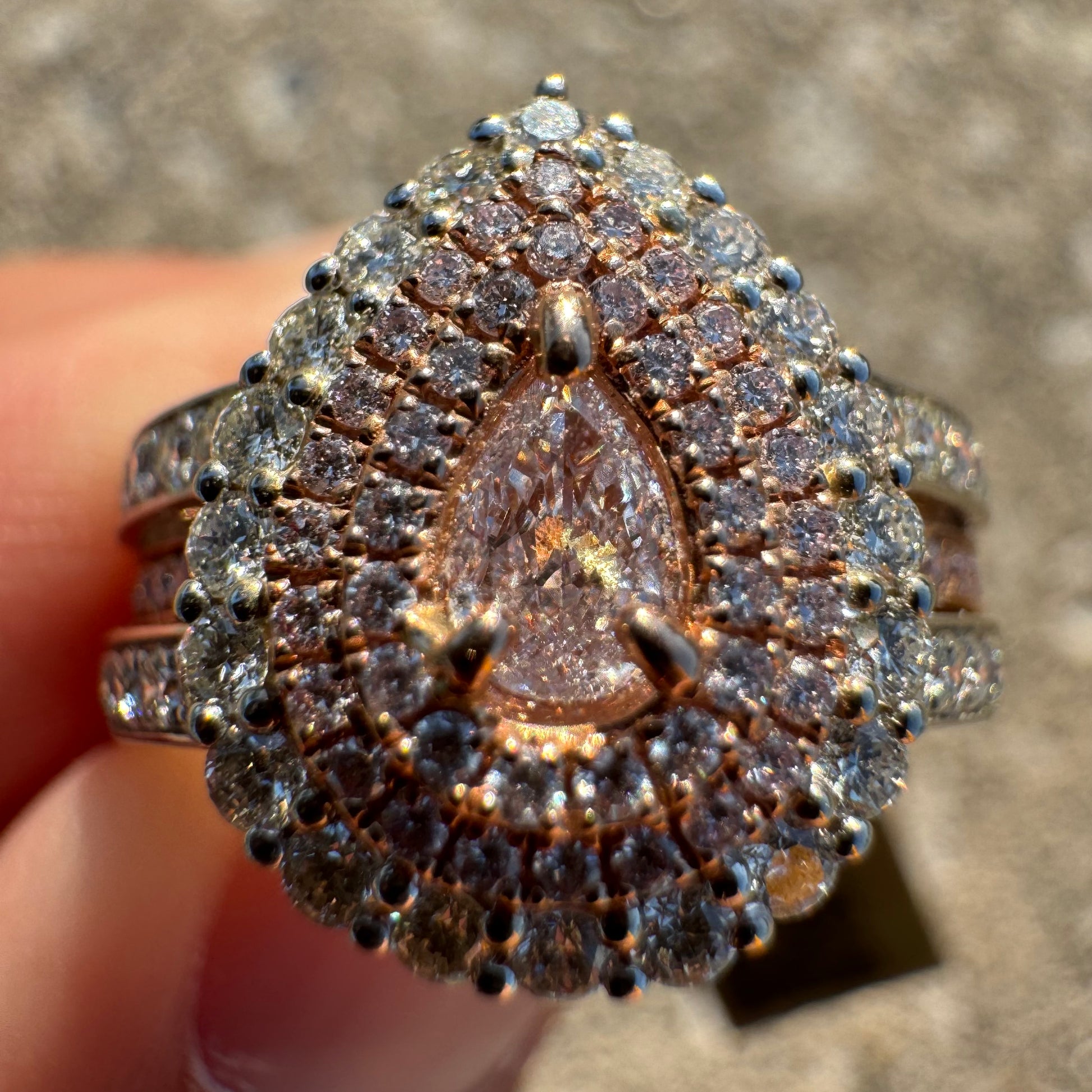 Brand New 14k White/Rose Gold 1.38CTW Natural VS Pink Pear And White Diamond Halo Ring (8)