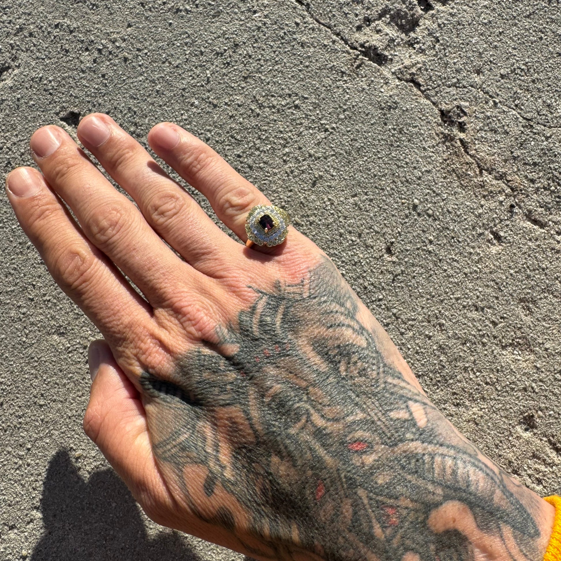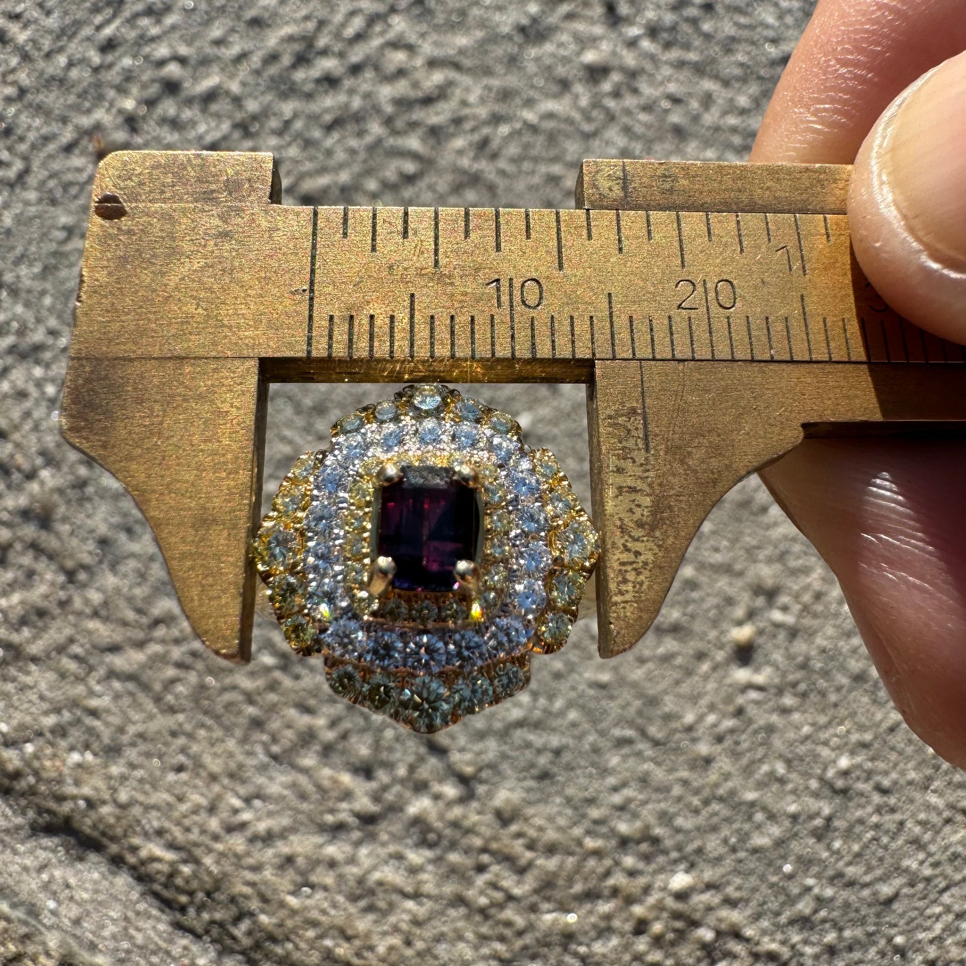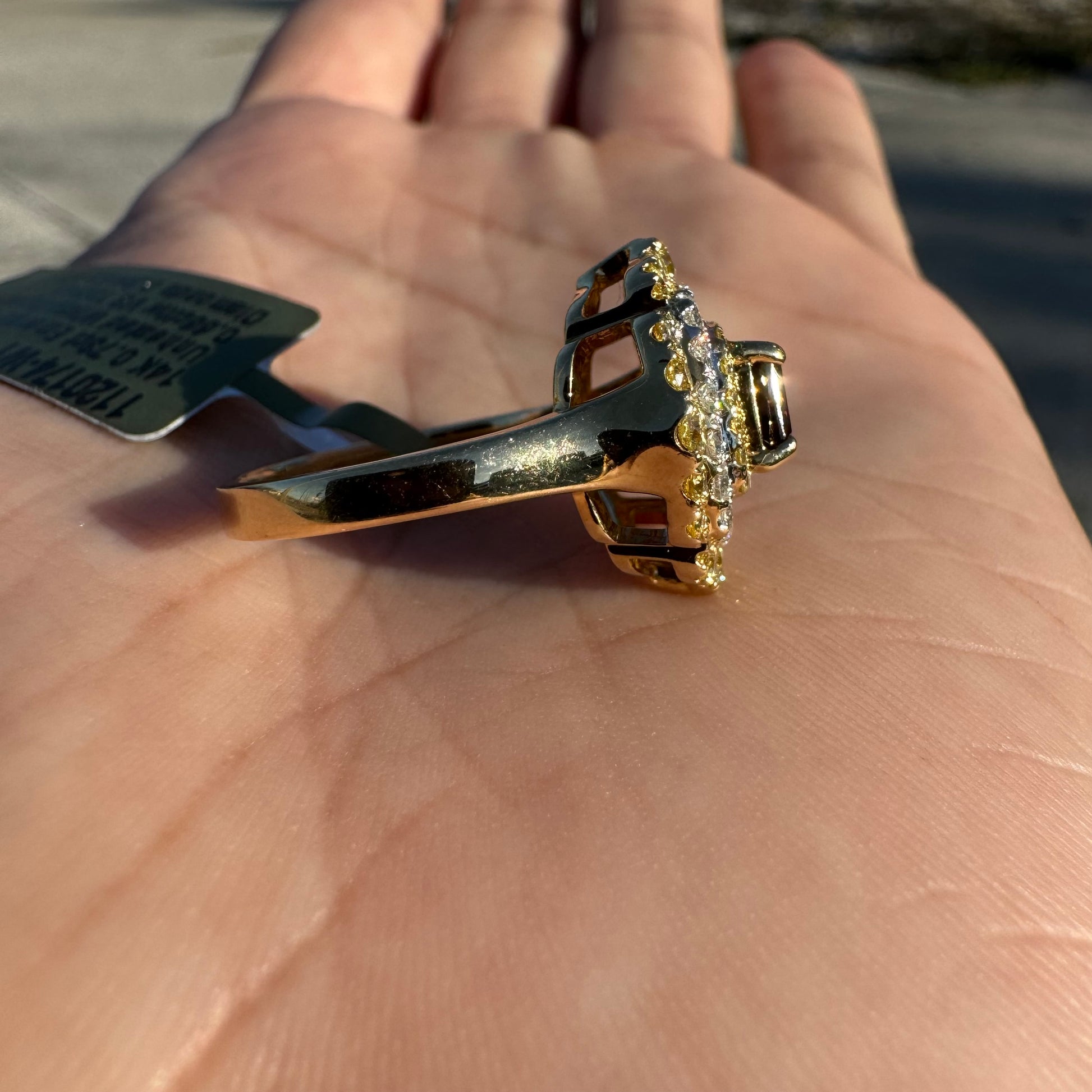 •.66ctw all natural Vs clarity round yellow diamonds surrounding the main stone as well as the outer sheild