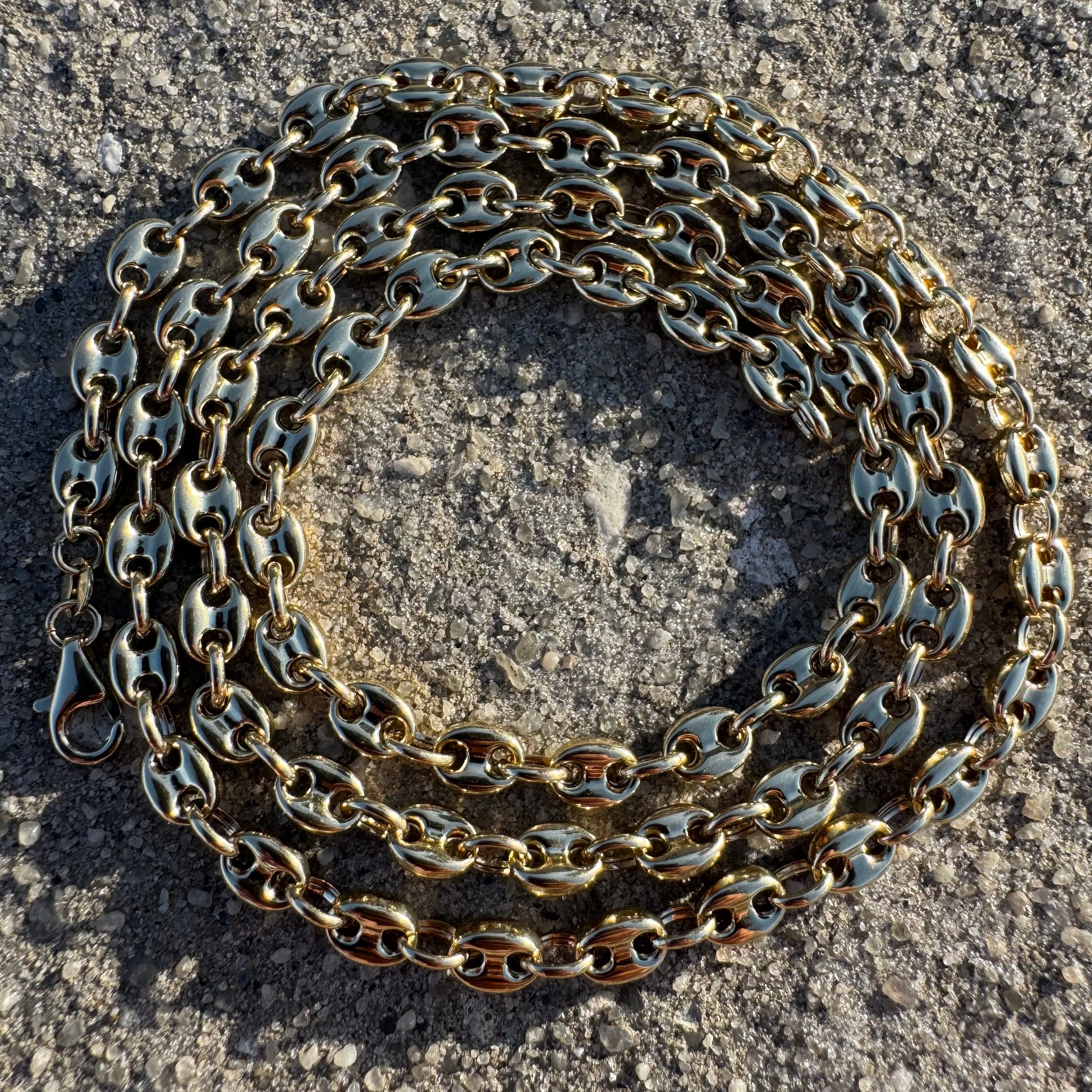 Hot off the press this necklace is brand spanking new. Buttery 14k yellow Italian gold, just what you would want and expect from one of the most classic links, the puffed gucci mariner. This one has awesome features to it and deep cuts giving off a sleek yet chunky look to it. Measuring approximately 22” by 5mm wide and 2.5mm thick weighing in at around 14.9g.