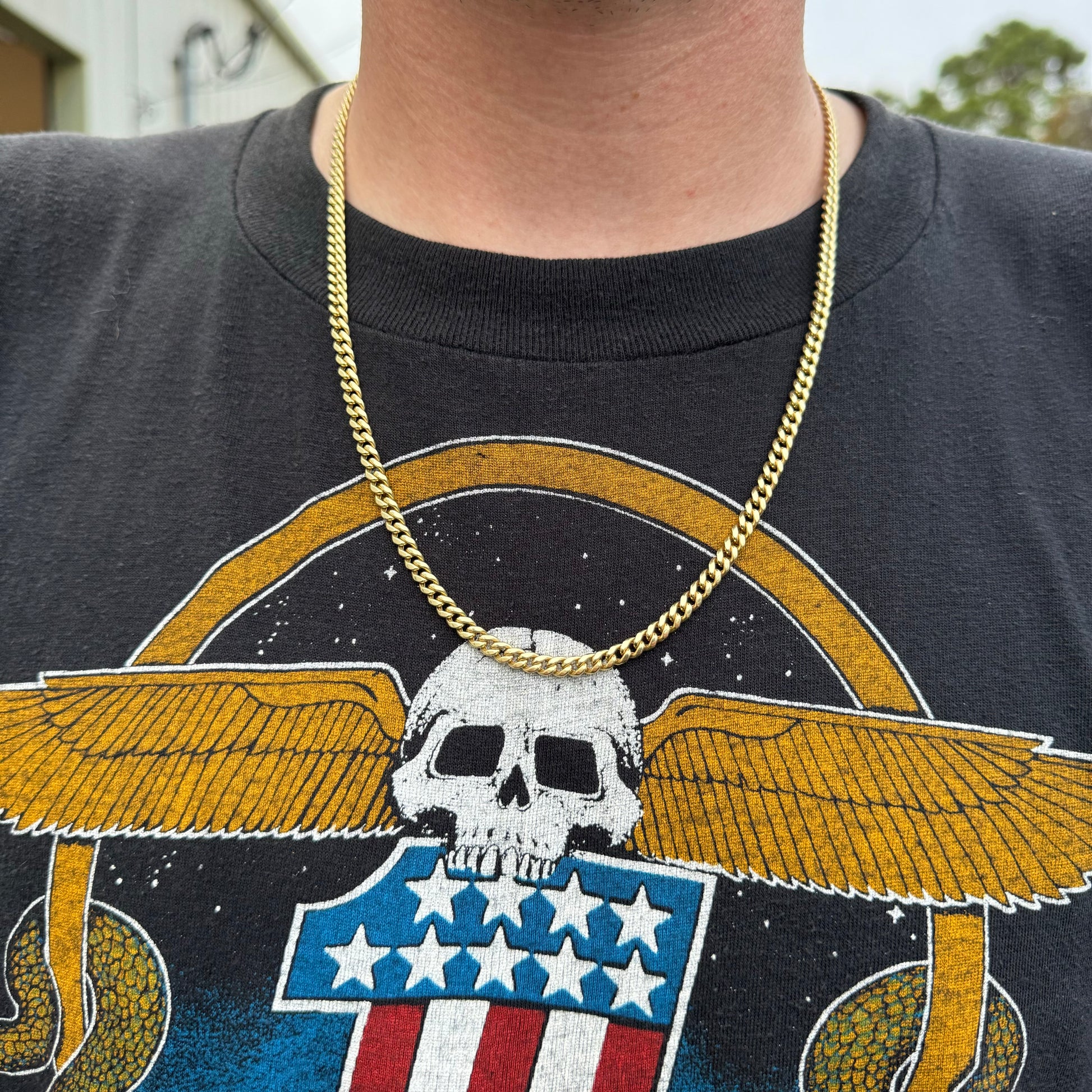 Brand new hott off the press and never worn crafted out of 14k yellow gold made in the good ol USA. Approximately 22” in length by 4.5mm wide and weighing 13.2g