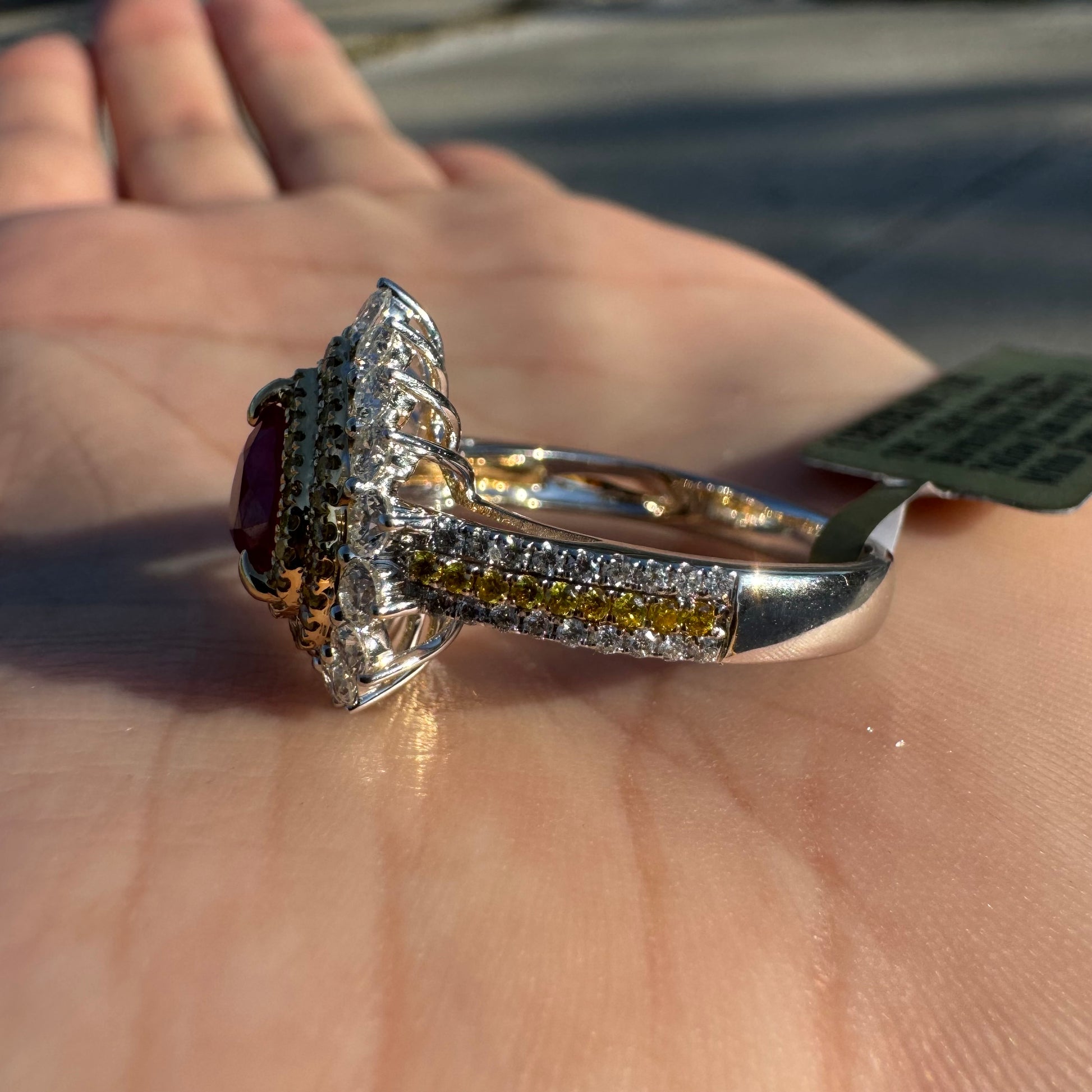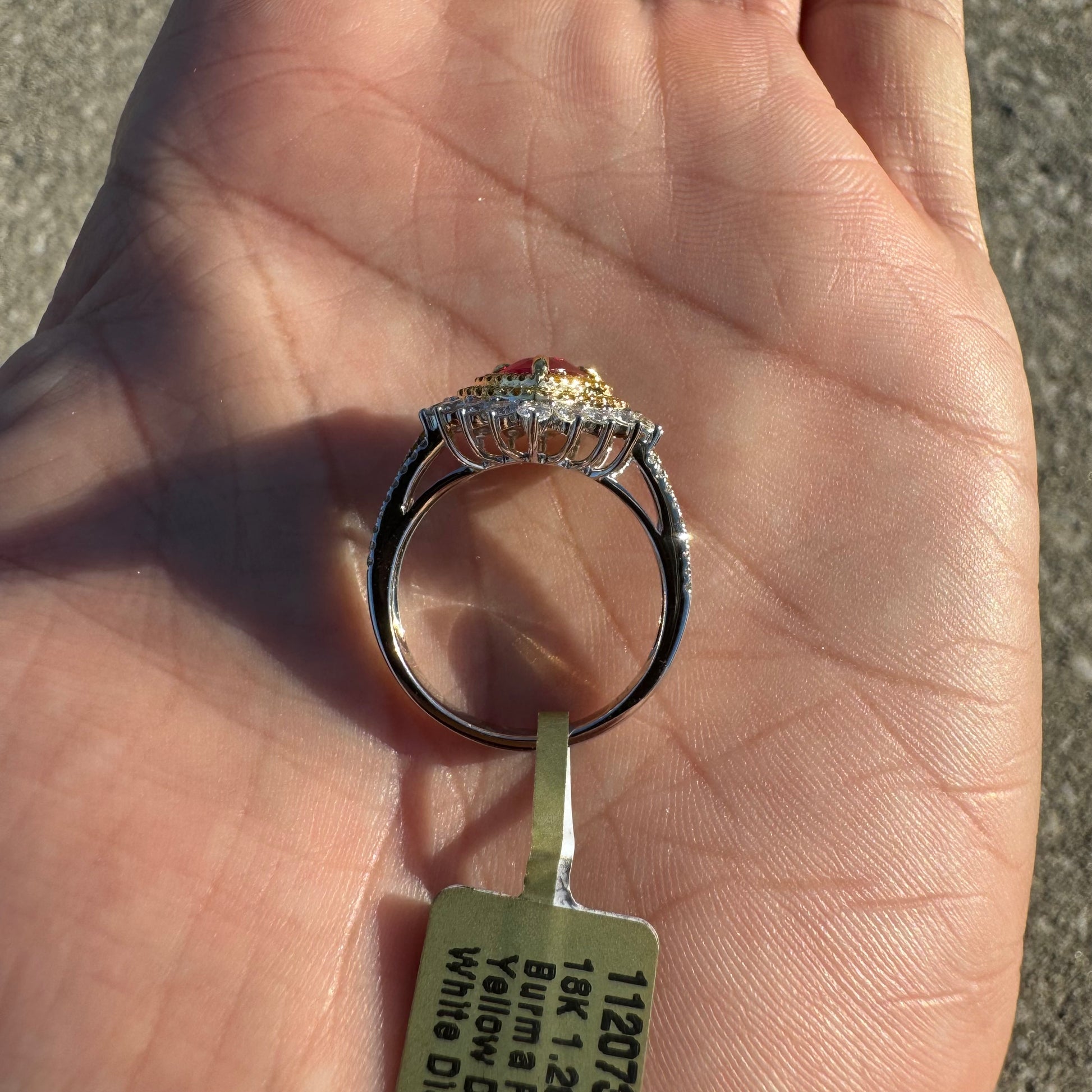 Brand New 18k White Gold 1.2ct Natural Burmese Ruby 1.32ctw Natural VS Yellow And White Diamond Heart Ring (8)