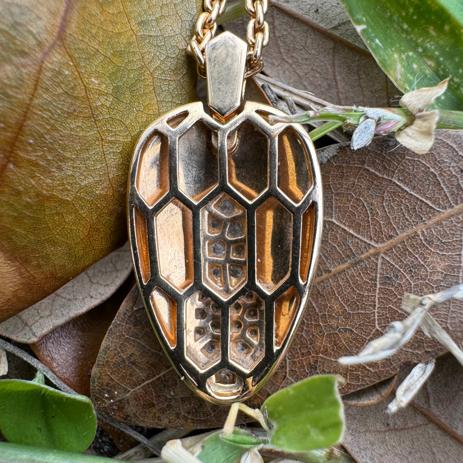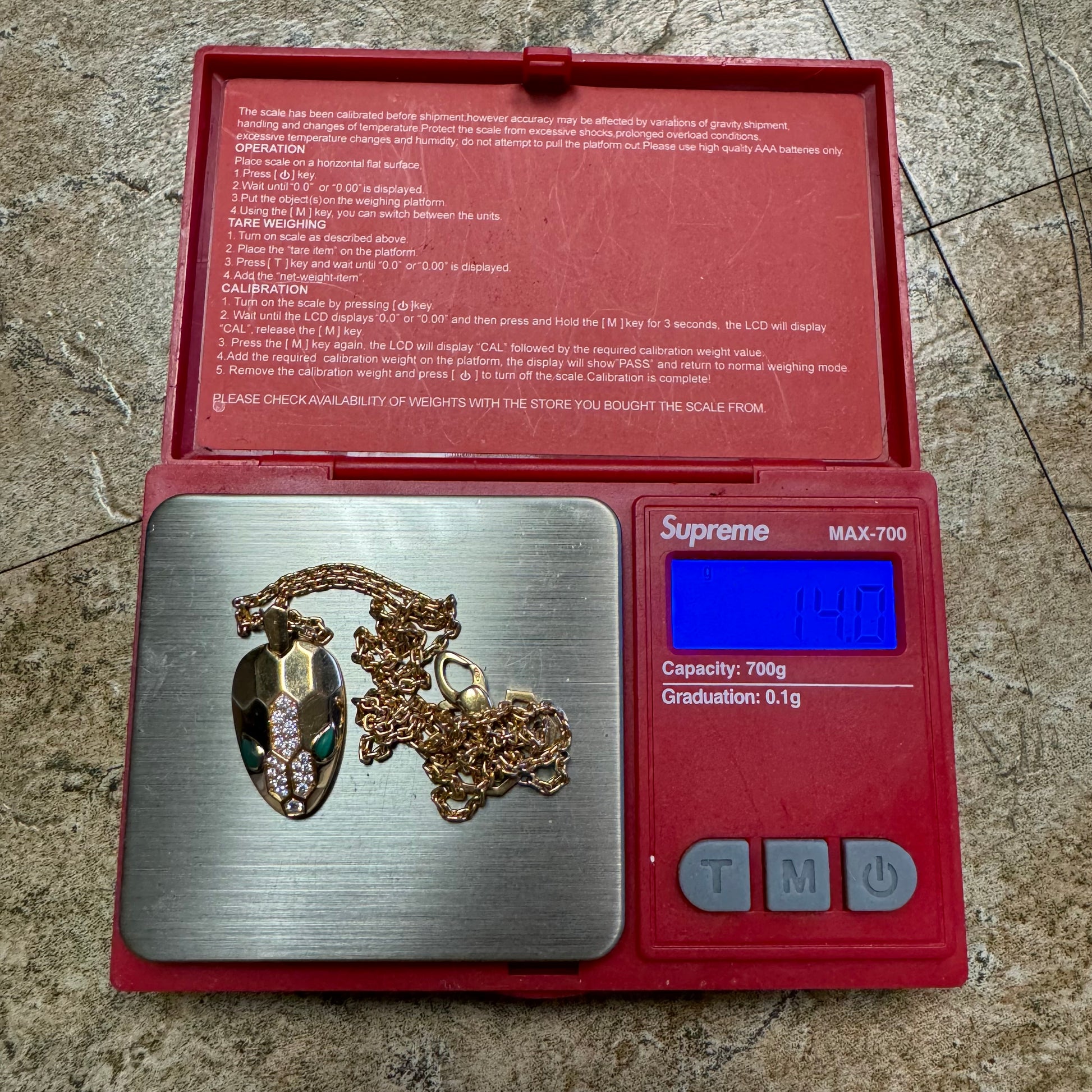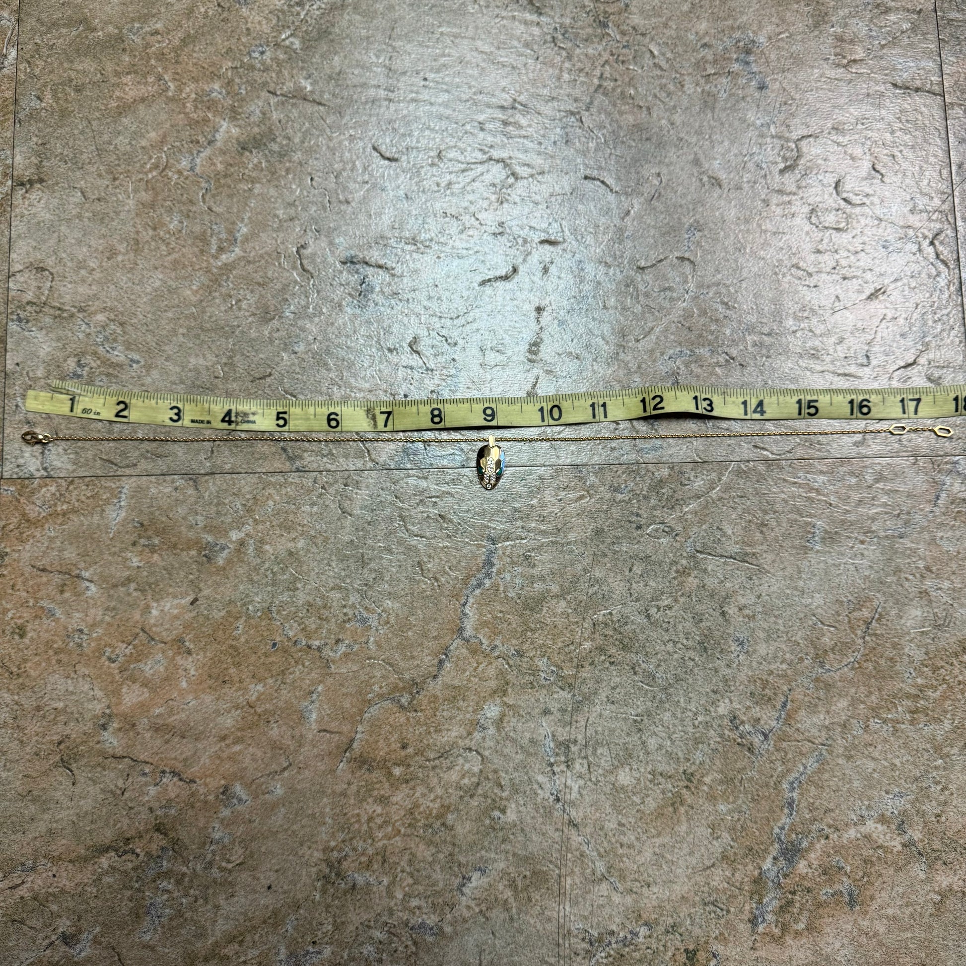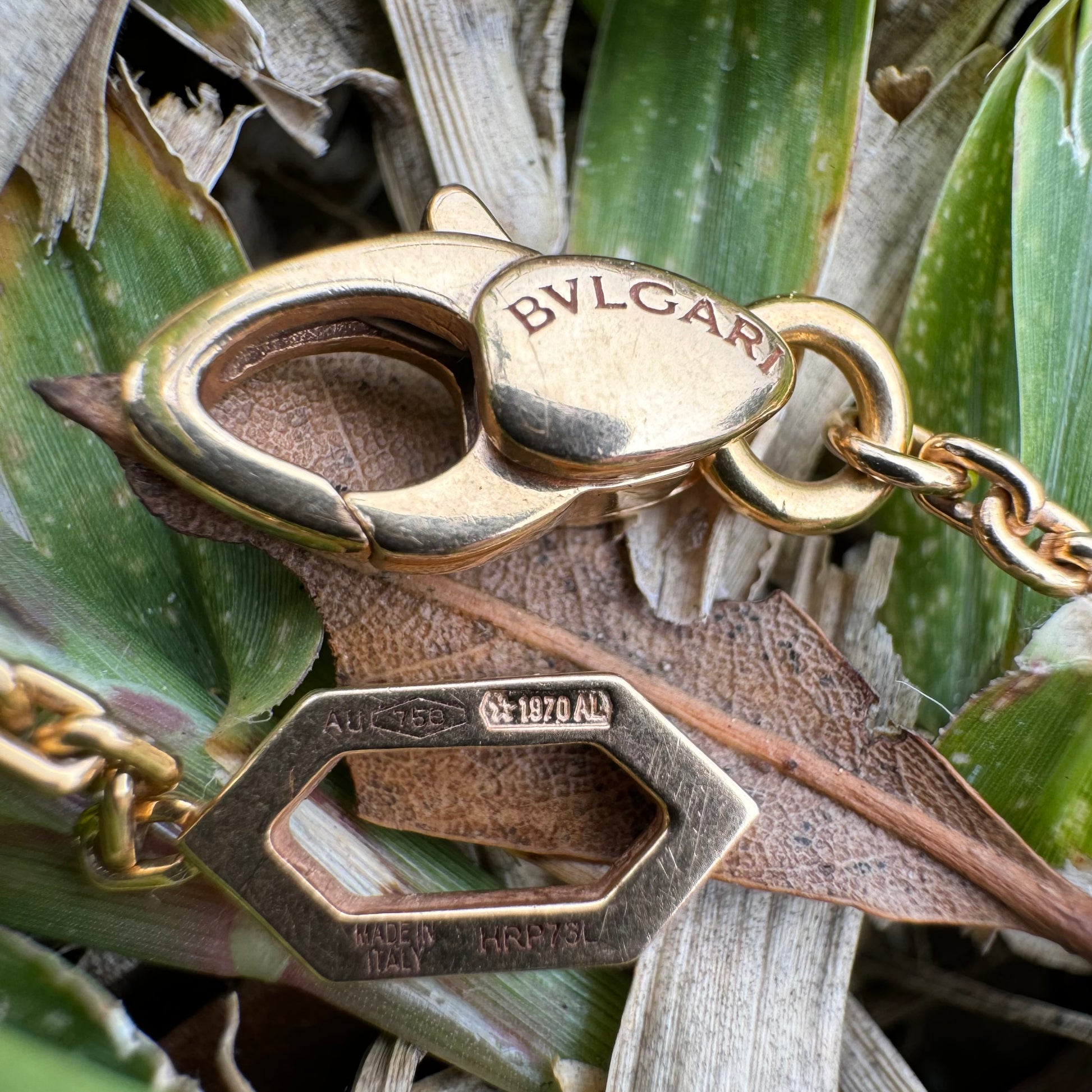 Encrusted with approximately .21ctw of VVS-1 (F color) natural diamonds representing the scales and 2 smooth and sinister looking pear shaped malachite stones for the eyes of the snake is this solid 18k gold Bvlgari “Serpenti” necklace. As stated in the original description from Bvlgari “Reborn time and time again, for over 70 years Serpenti has proven its ability to take infinite forms. In its latest incarnations, ultra-modern geometric scales are set with dazzling diamonds, blending contemporary contours with the snakes emblematic sinuosity.” The “biker chain” style anchor link necklace itself has 2 different end clasps to lock in at whether you want to wear it at a 16” length or at 17.5” while approximately 2mm thick and the whole piece of solid 18k gold weighing in generously at 14g. This amazing designer piece is not readily available and when they are you will be paying a lot more than this, as this one is the cheapest one you can find and by a long shot. The sales comps of reputable jewelers sold listings are from $5500 to $6350 while I see two available at the time of making this post that are being sold for $4450 and $7000. Don’t regret it and miss out on a classy yet fierce piece of grade A designer jewelry at painstakingly cheap price.