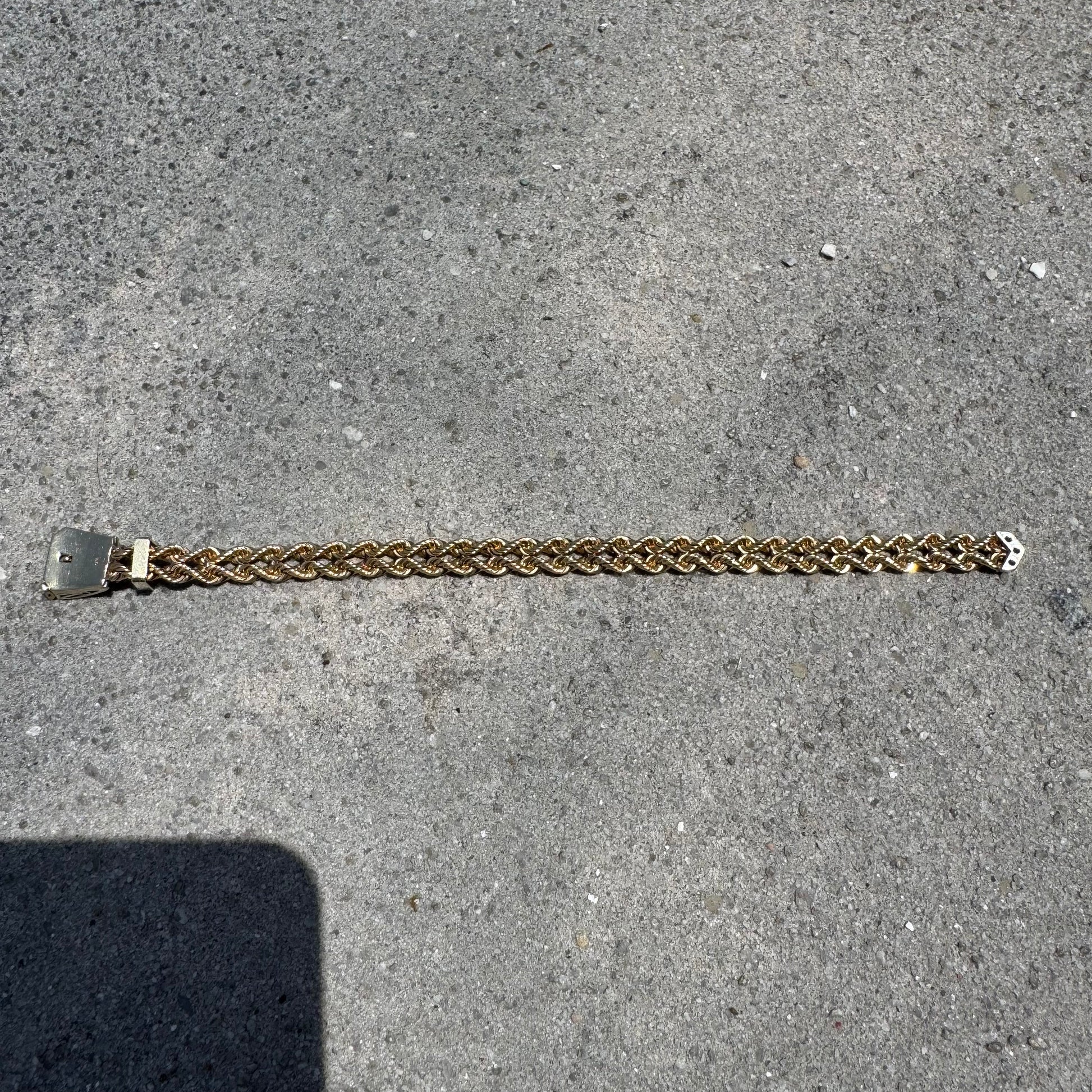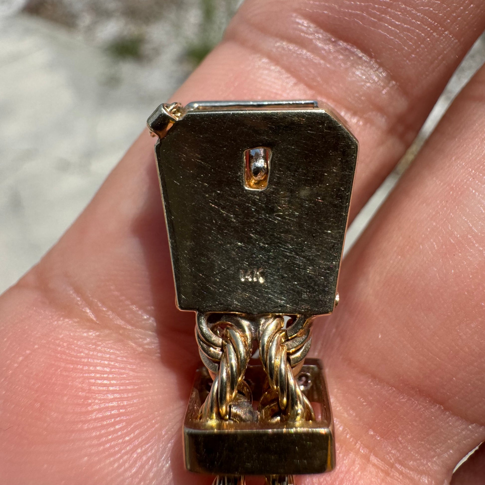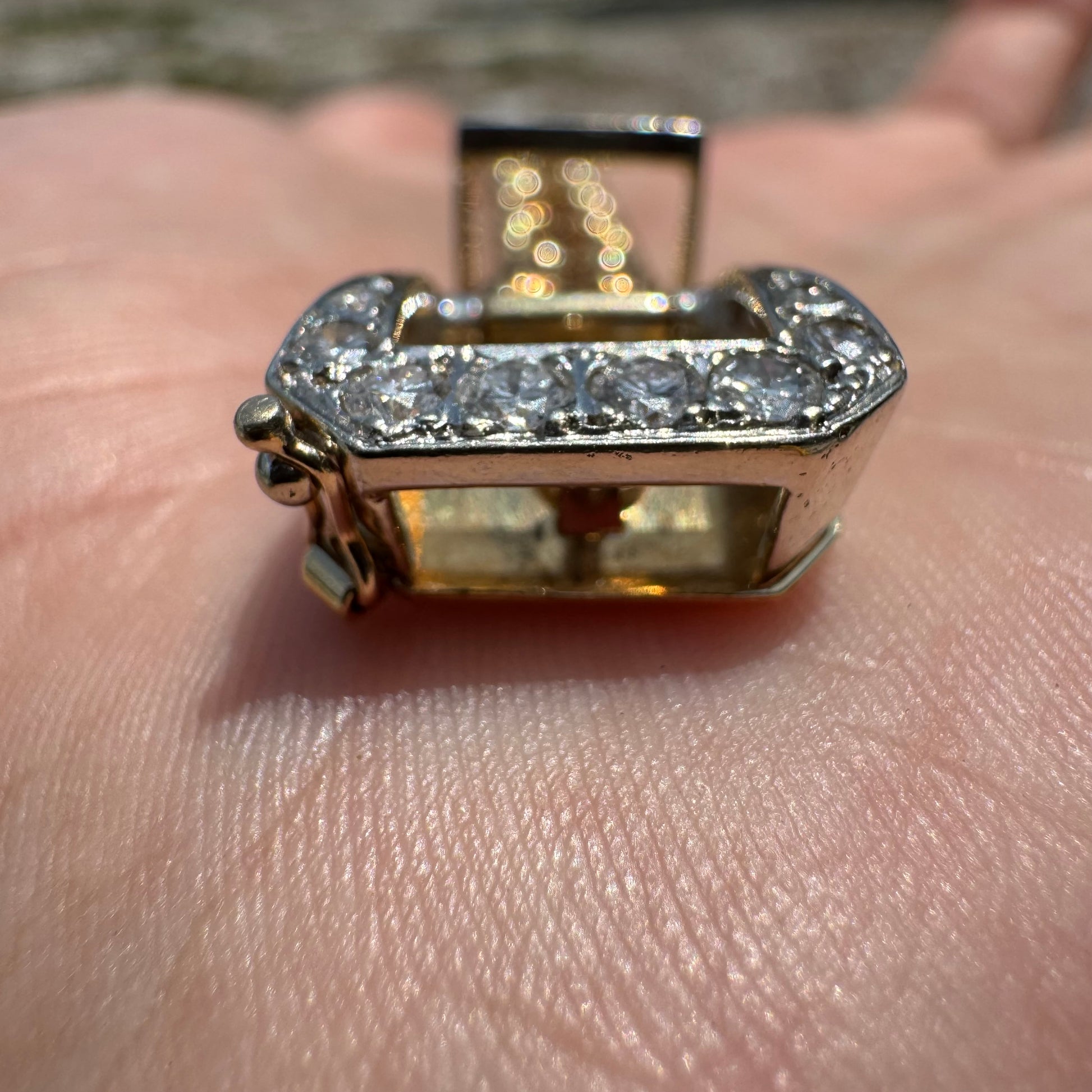 Meticulously crafted by hand sometime around the 1970’s this piece was made by a master jeweler with the utmost attention to detail. Crafted out of a fully solid 14k yellow gold each piece works and articulates just like that of a belt. Encrusted with beautifully clean near VS quality .75ctw of natural diamonds the hardware buckle, belt end, and belt loop has most parts crafted out of white gold giving that added extra pop to the diamonds. This bracelet will fit any size wrist up to 7” but I would recommend it for size:5” through 7” to fit comfortably and look the best. With a chunky build and sturdy weight at 24.1g and 8mm this is really a piece you need to see and wear in person to truly grasp how perfect it is.