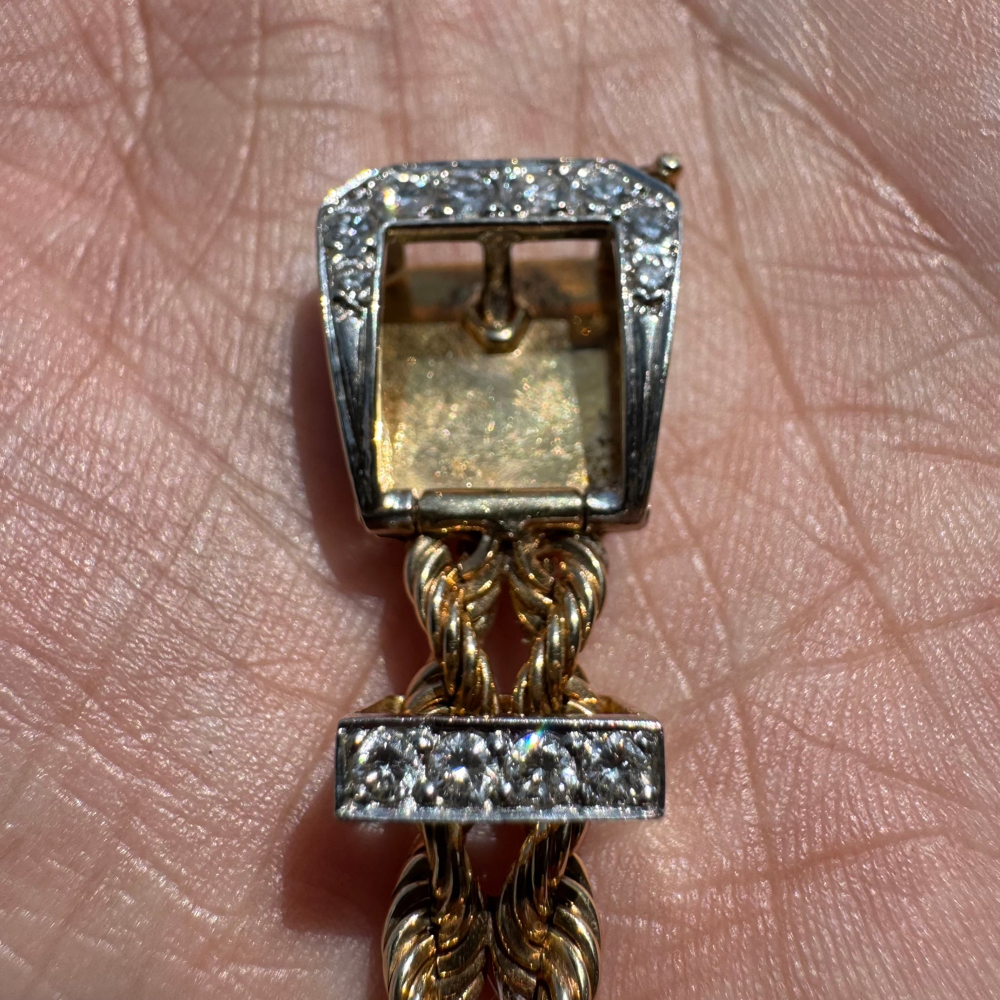 Circa 1970’s Solid 14k Yellow Gold .75ctw Natural Diamond Double Rope Belt Bracelet (Fits 5”-7”)