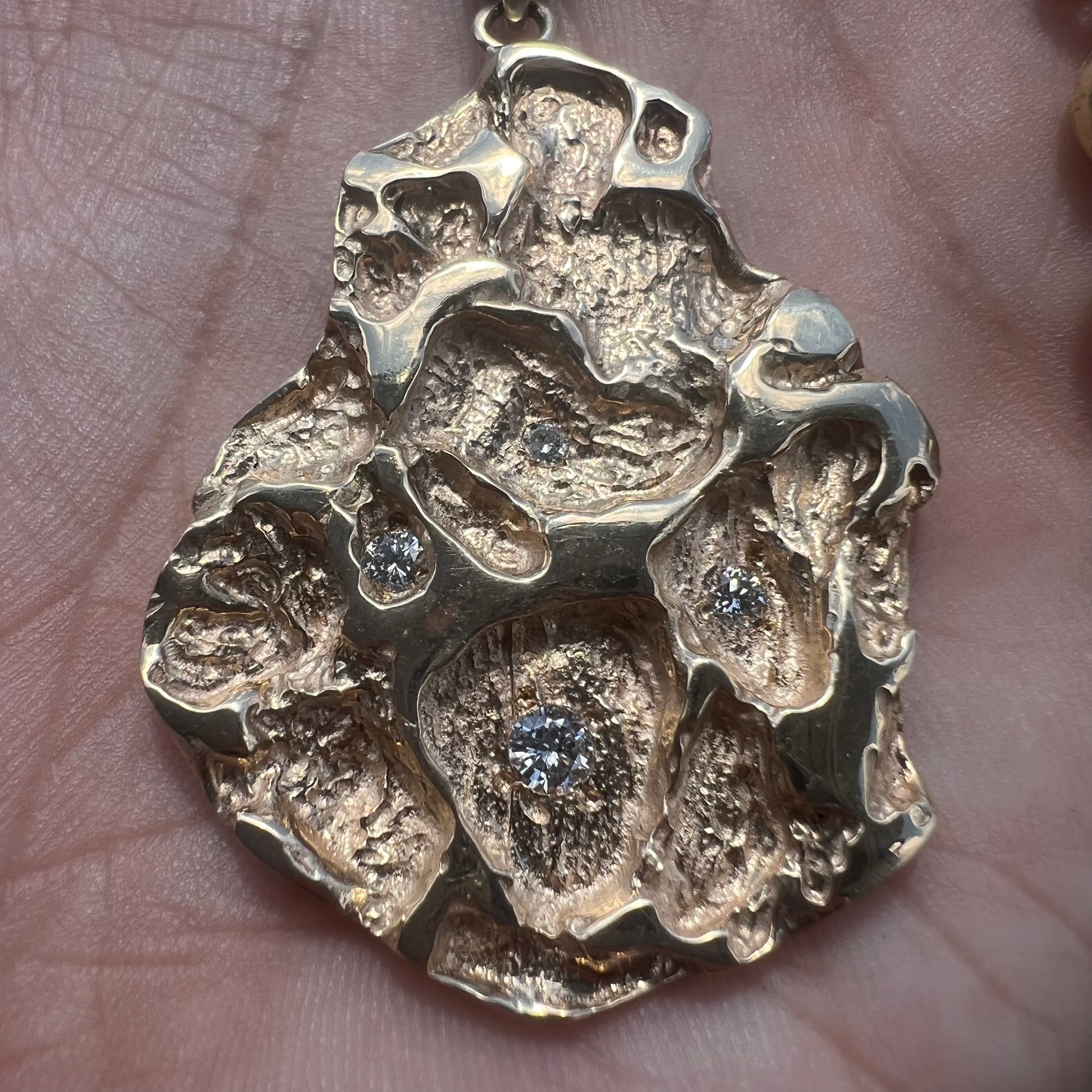 Custom 14k Natural VVS Diamond Encrusted Heavyweight Nugget Pendant