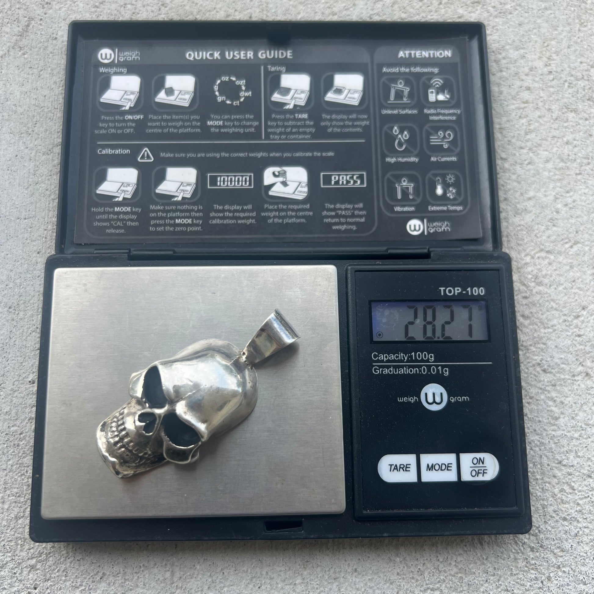 Custom Heavyweight Solid Sterling Silver Skull Pendant