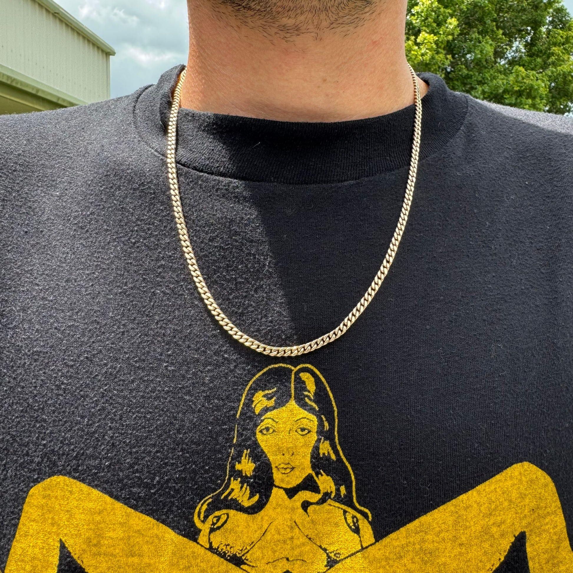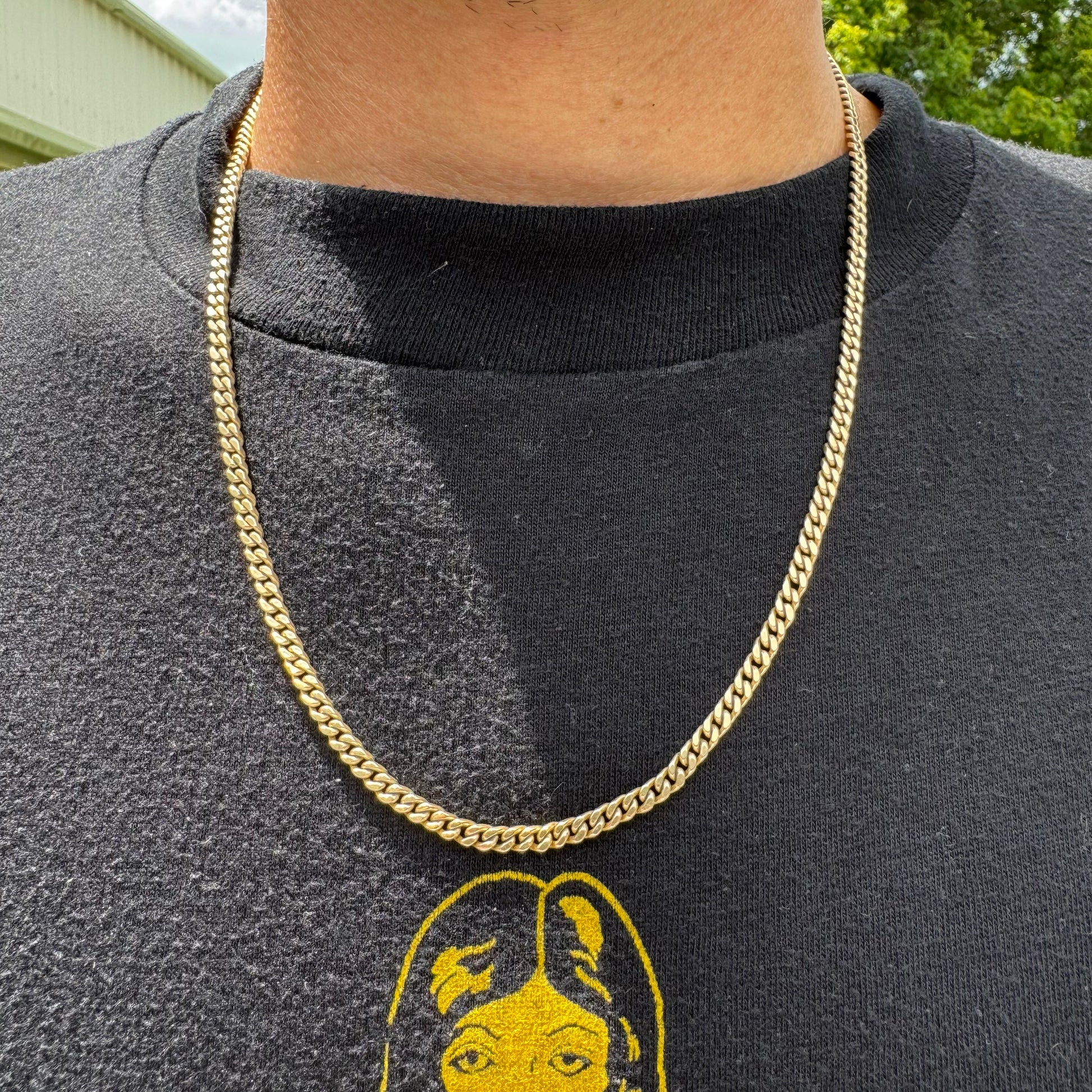 Dated 1924 Solid 14k Yellow Gold Cuban Curb Link Watch Chain Necklace (21.5”)