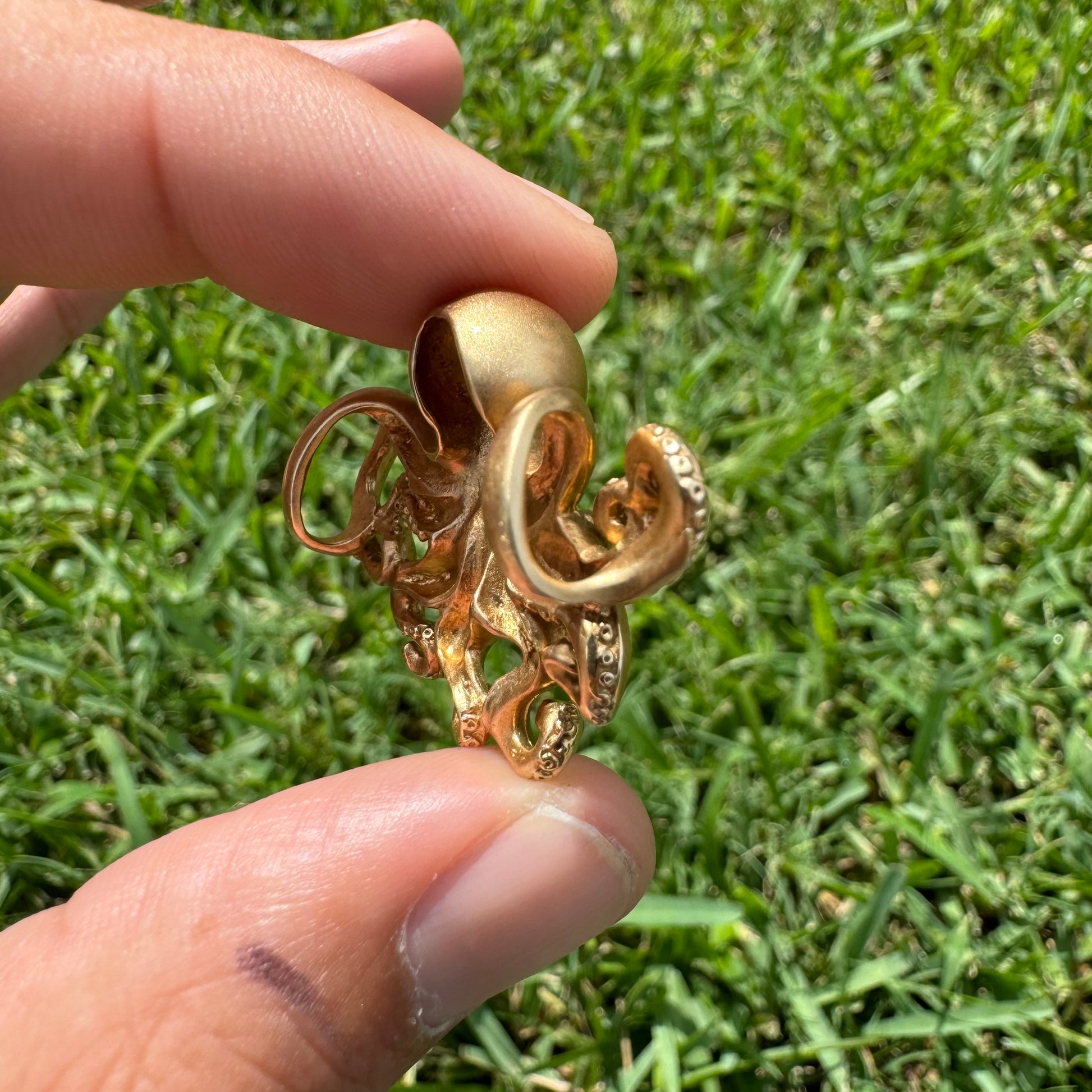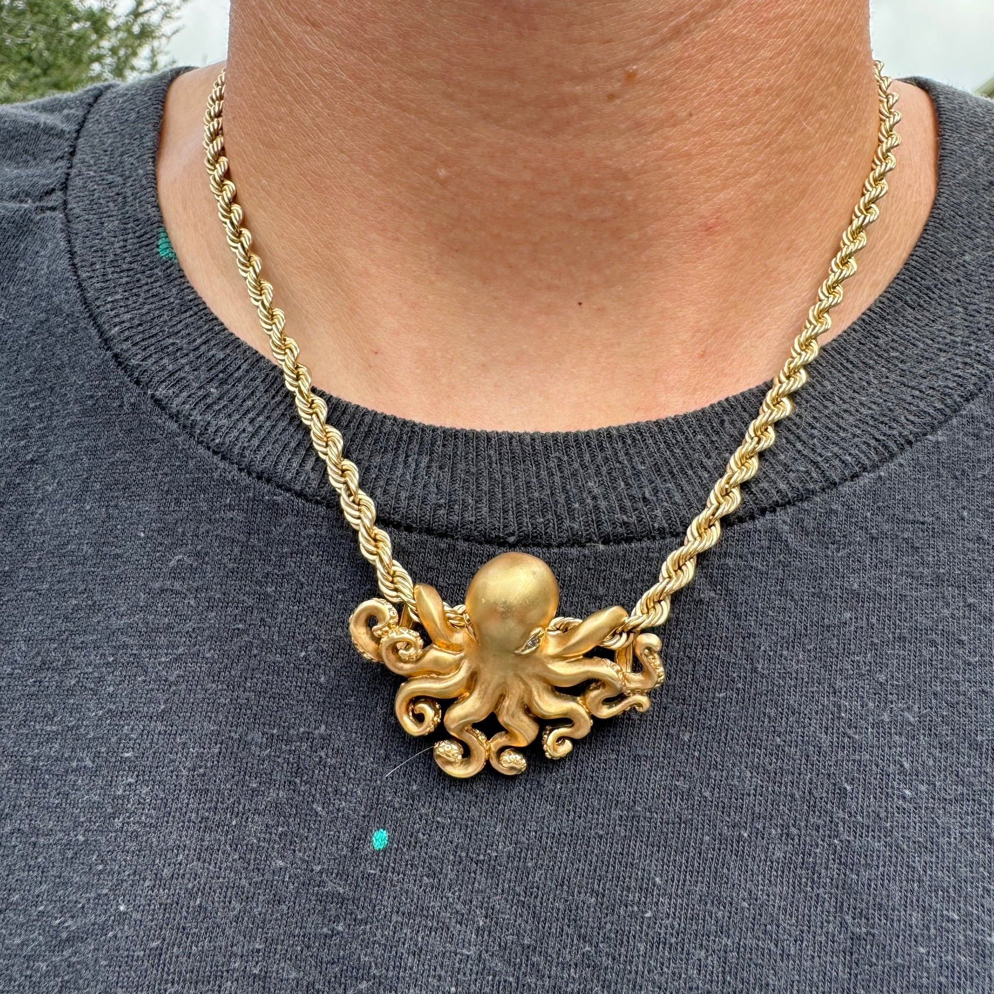 Designer Made Solid 14k Matte Yellow Gold Heavy Lifelike Octopus Pendant
