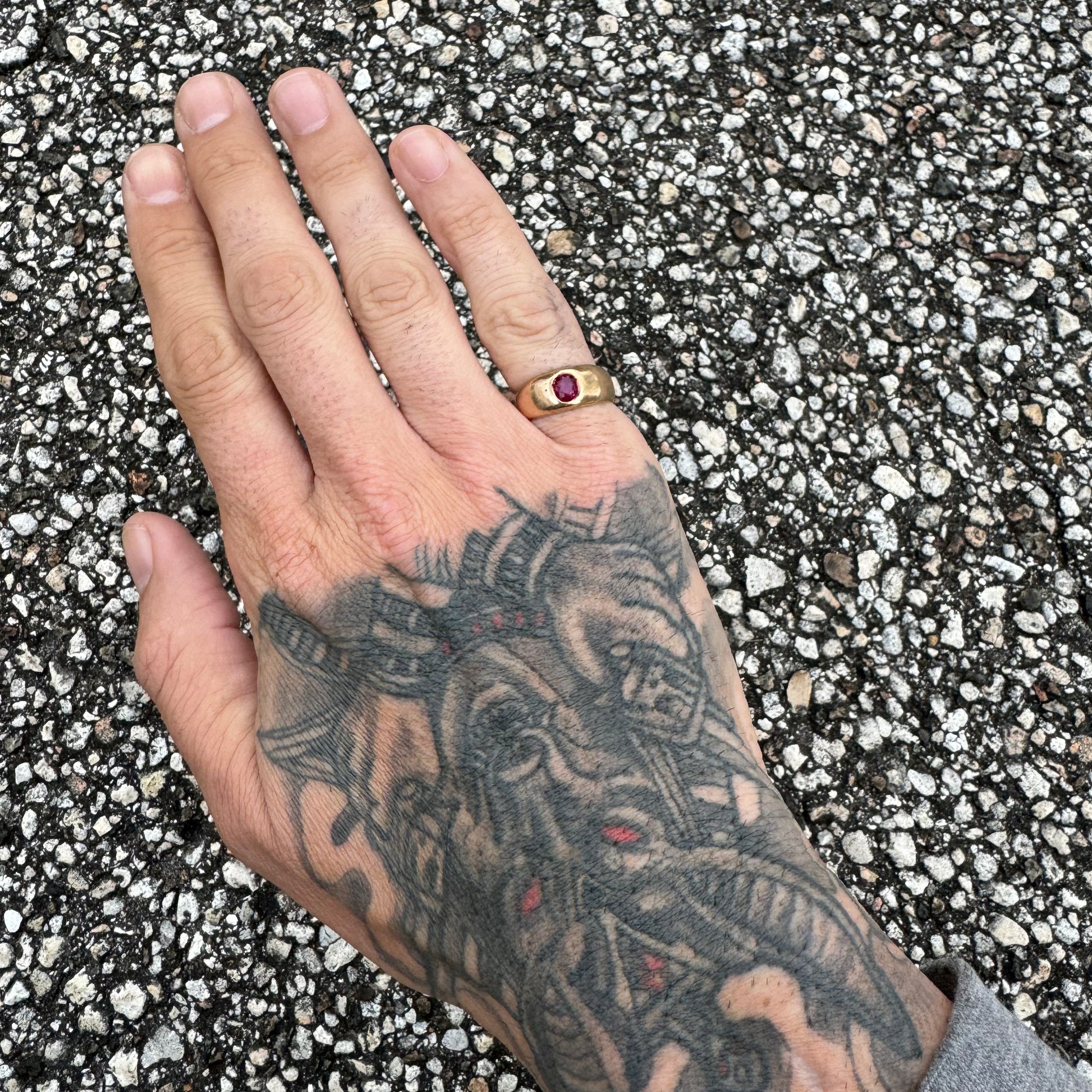 Extremely rare and exquisite 15k gold beautifully hallmarked (with the maker CS)old cut ruby chunky donut banded ring. Size:5.5 (resizable) 5g