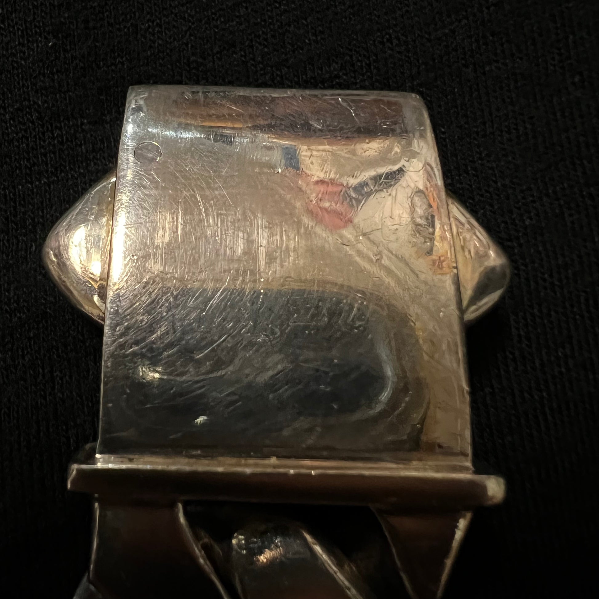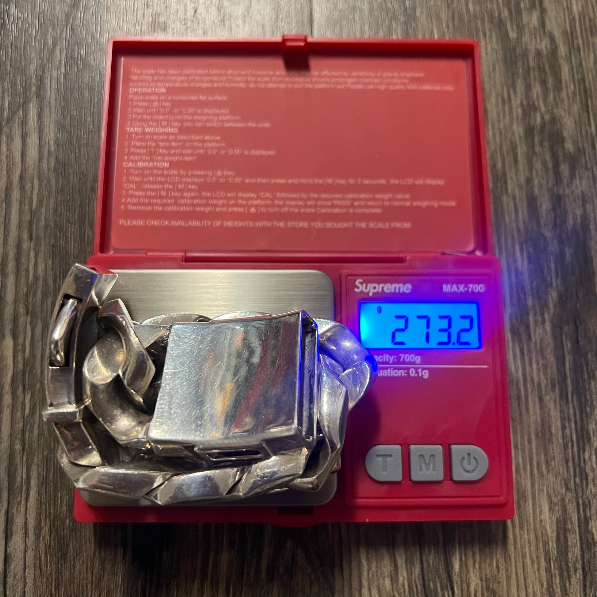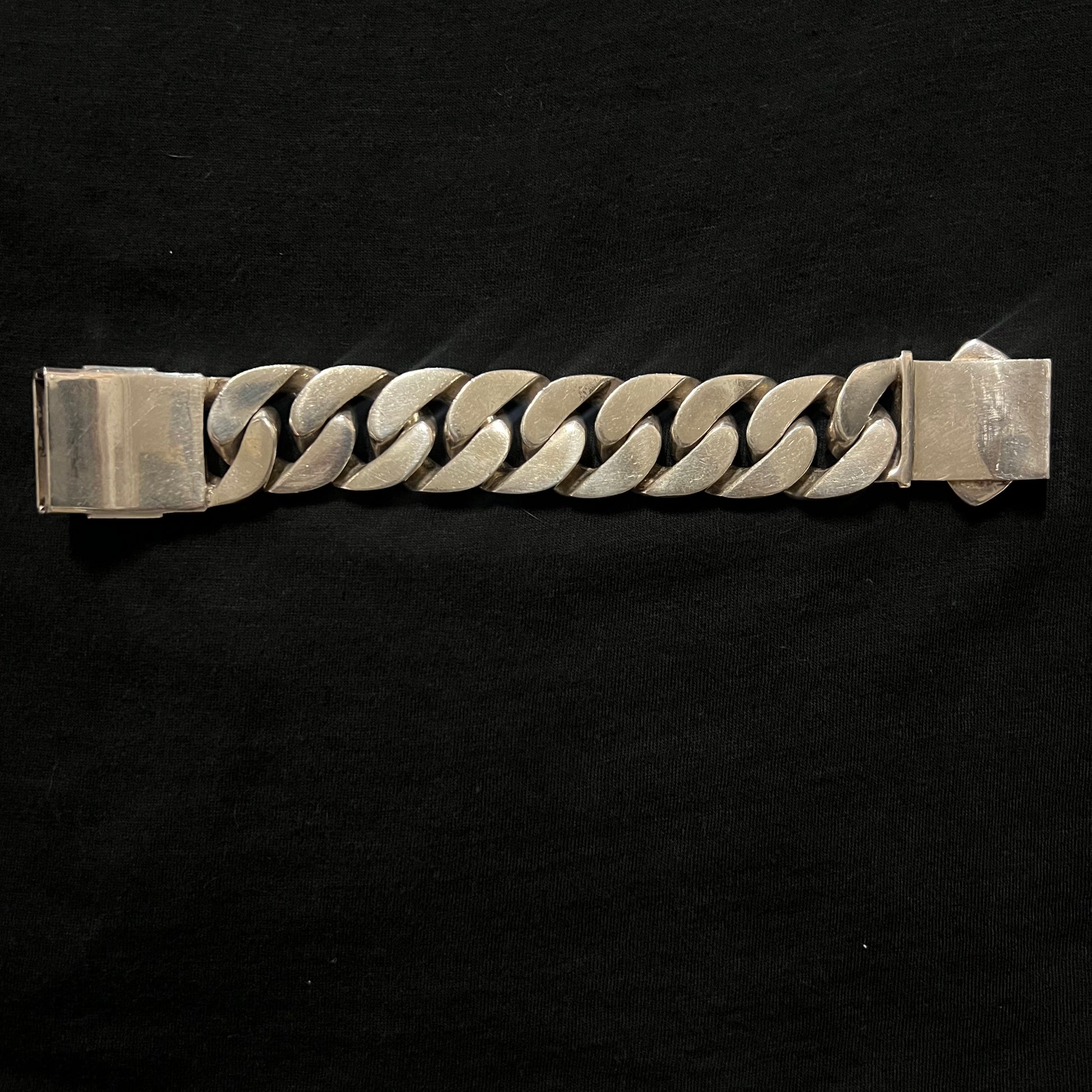 It will be extremely hard to find another person walking around with a bracelet this big. Weighing in at a whopping 275g this sterling silver Cuban link is masterfully crafted by hand with the attention detail evident. Though it’s 8.5” from end to end the clasp brings the size down to about 7.5” but with the thickness of this piece raising up a bit off your wrist id say it fits a bit under 7.5” around 7.25” give or take with a thickness and width of 7mm x 28mm. You won’t find one like this ever for the price being offered.