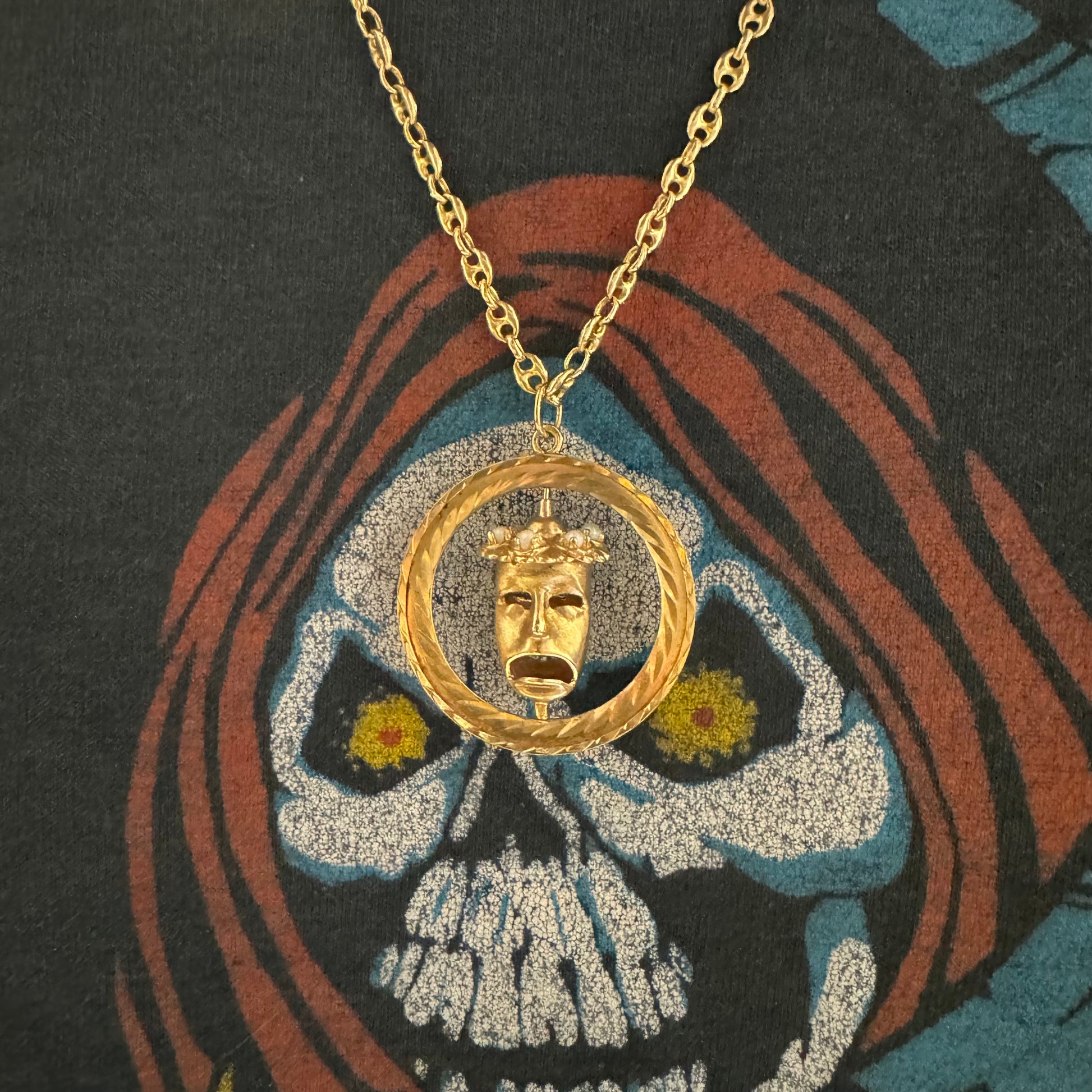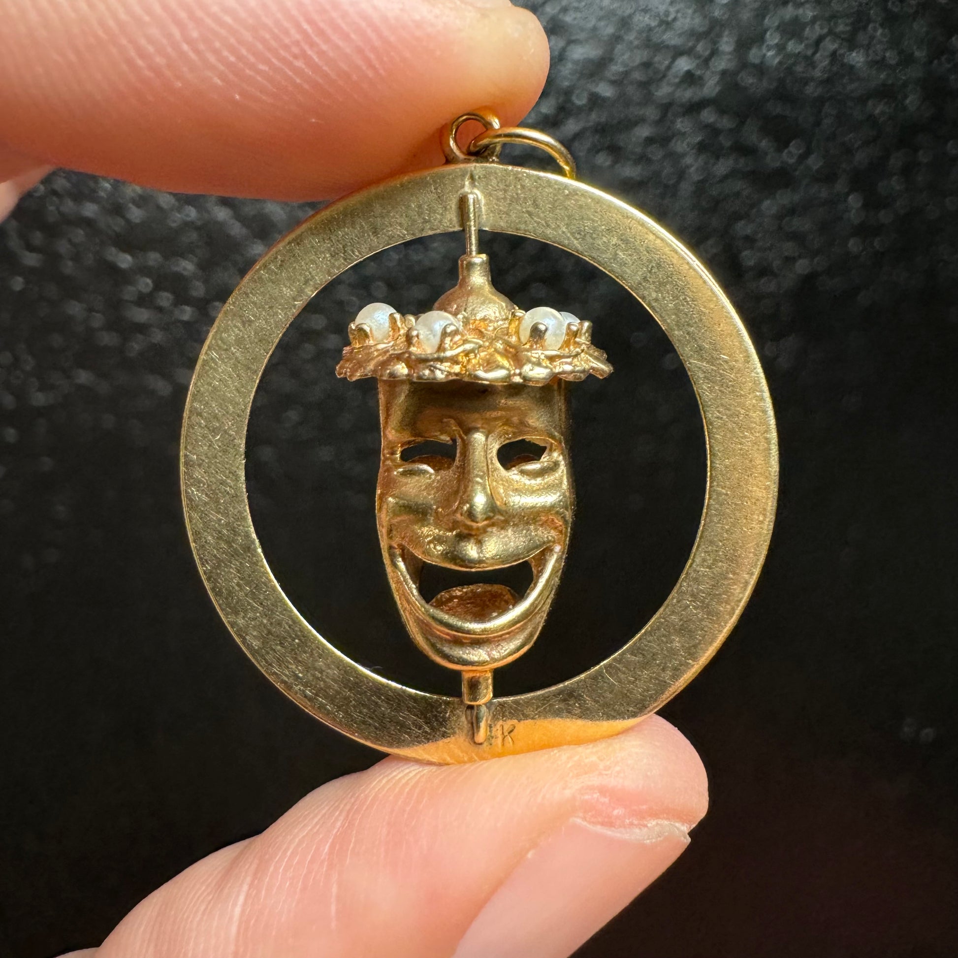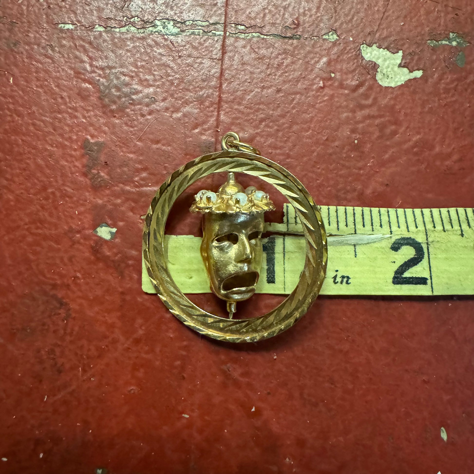 Mid Century 14k Yellow Gold Laugh Now Cry Later Spinner Pendant