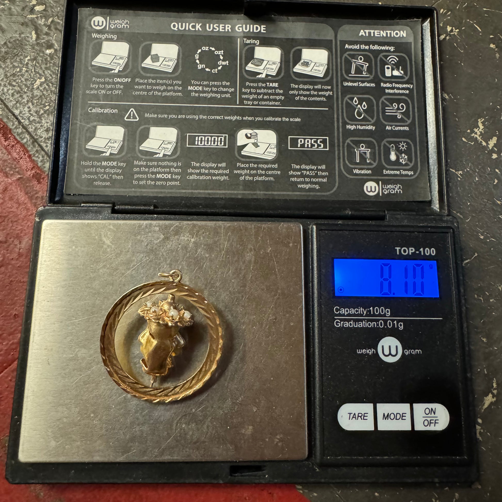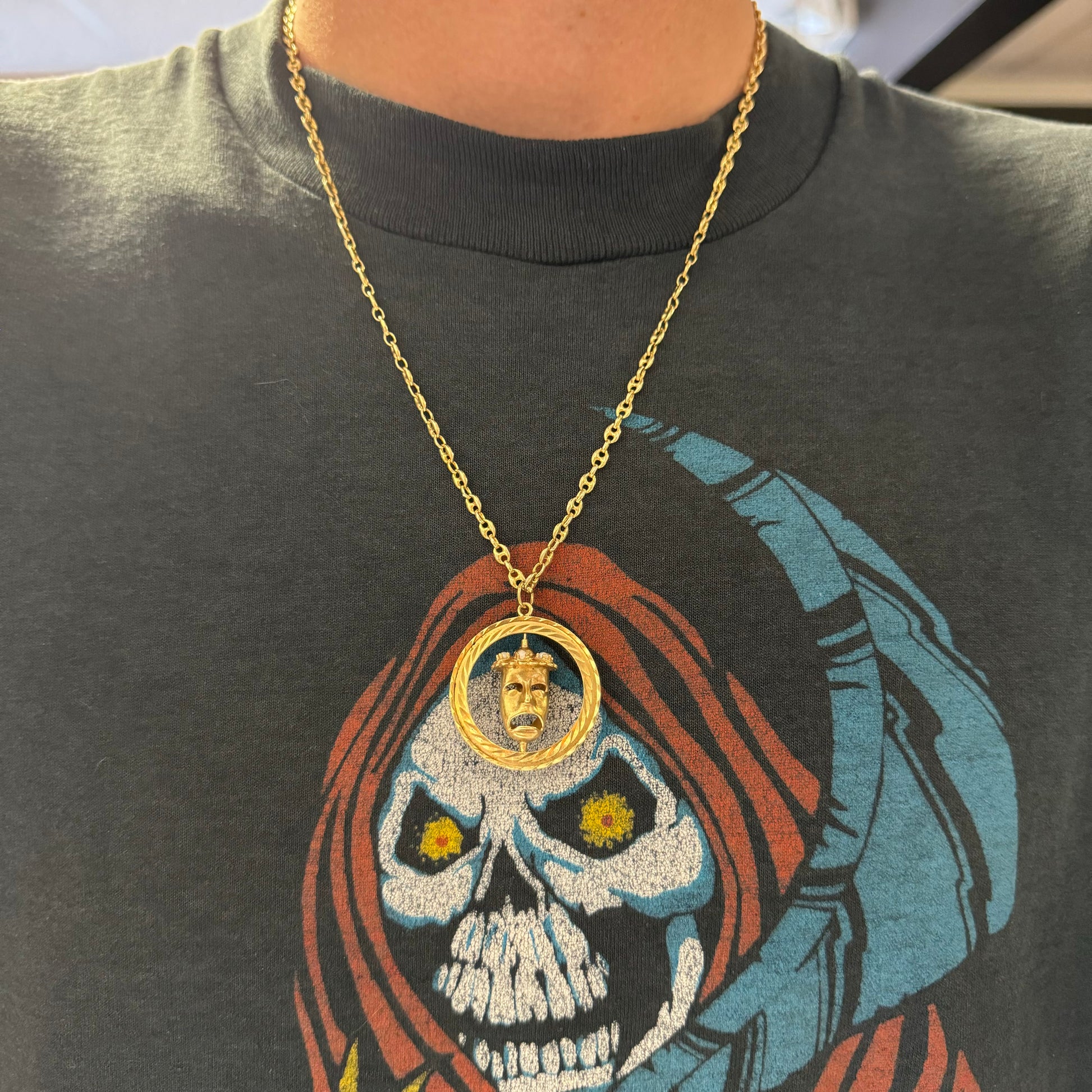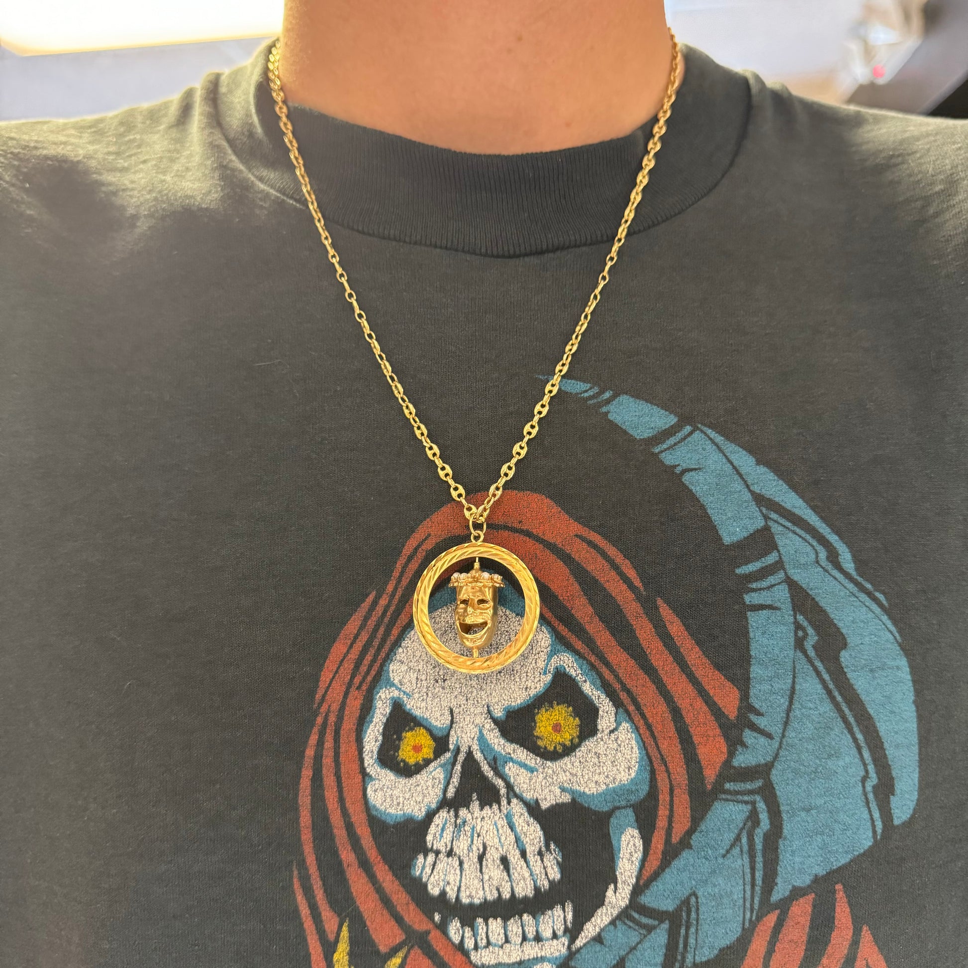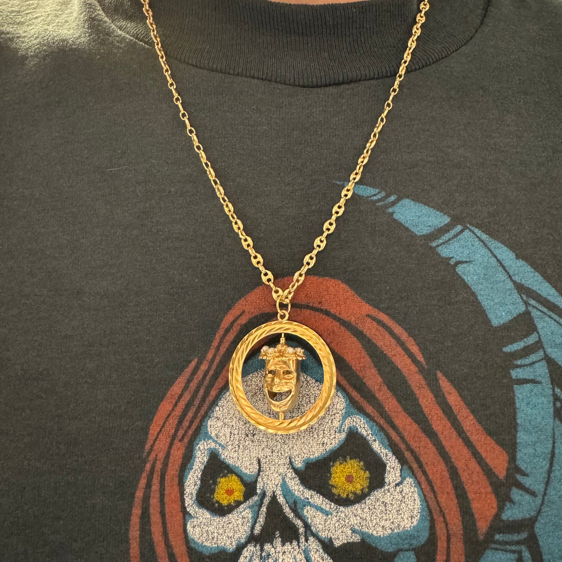 Mid Century 14k Yellow Gold Laugh Now Cry Later Spinner Pendant